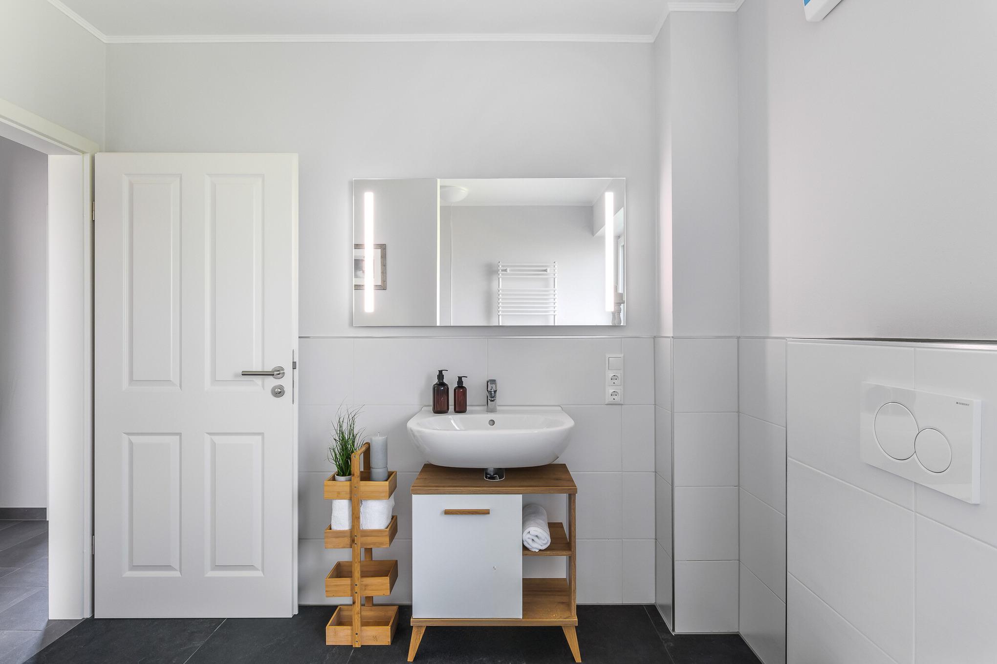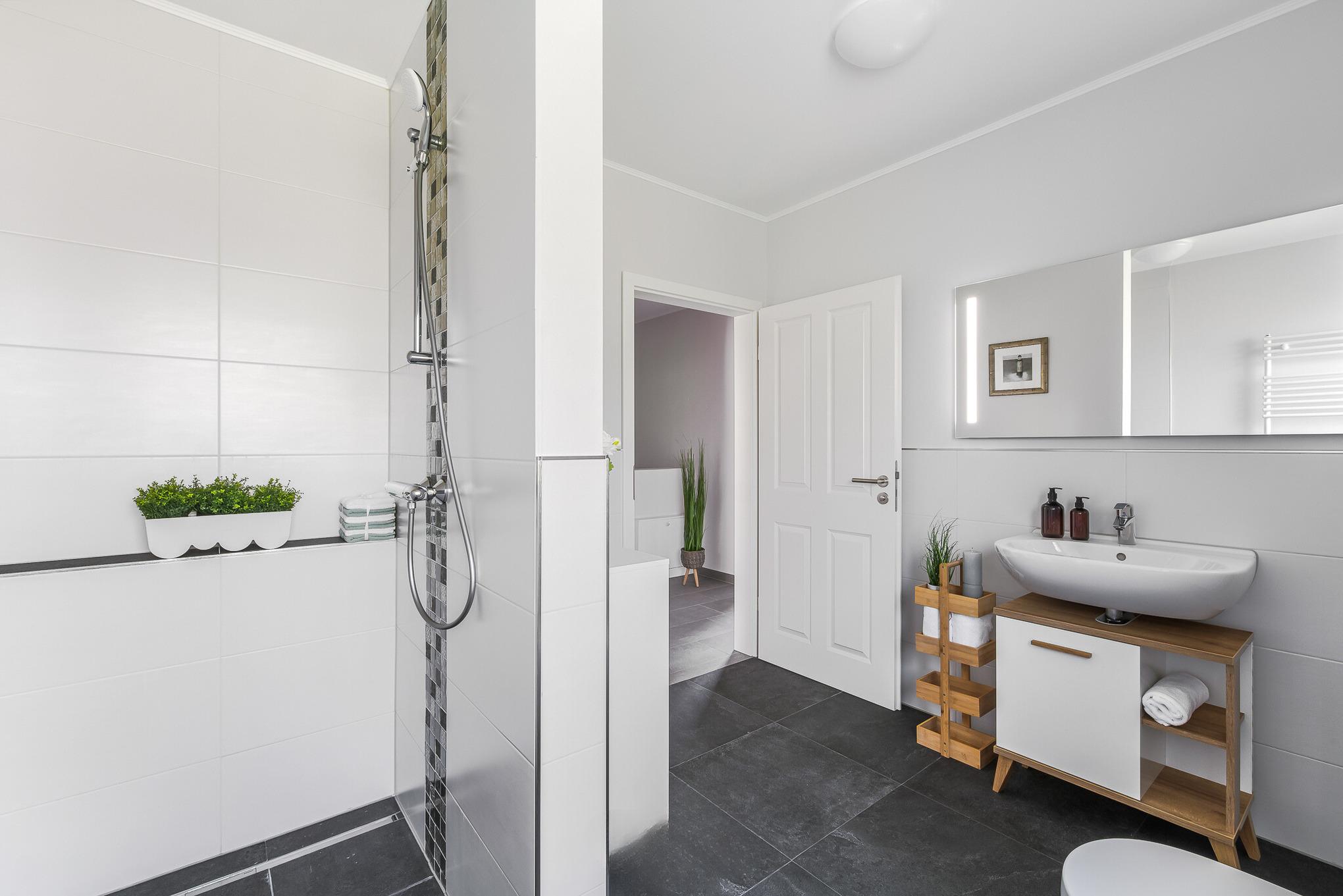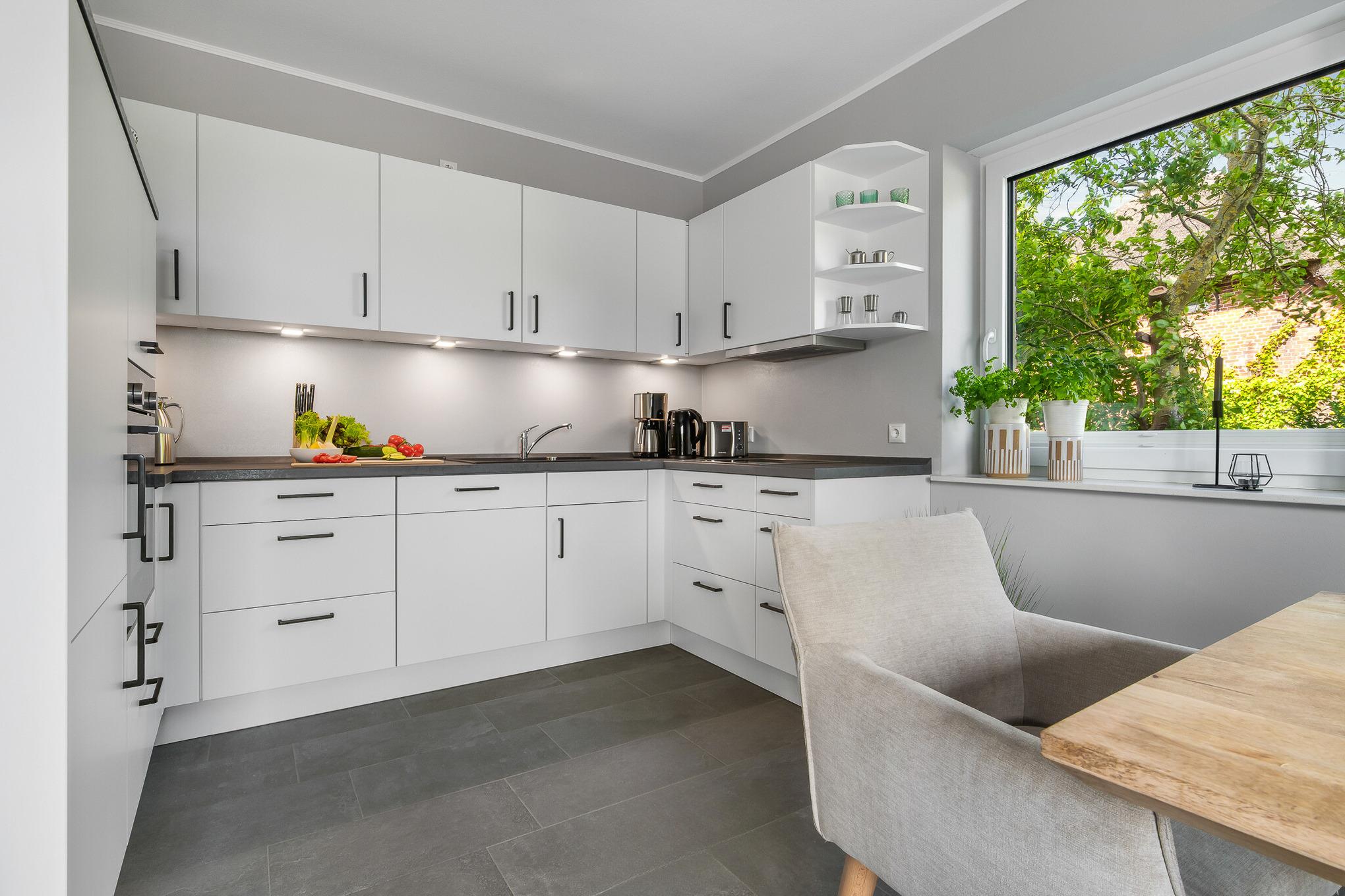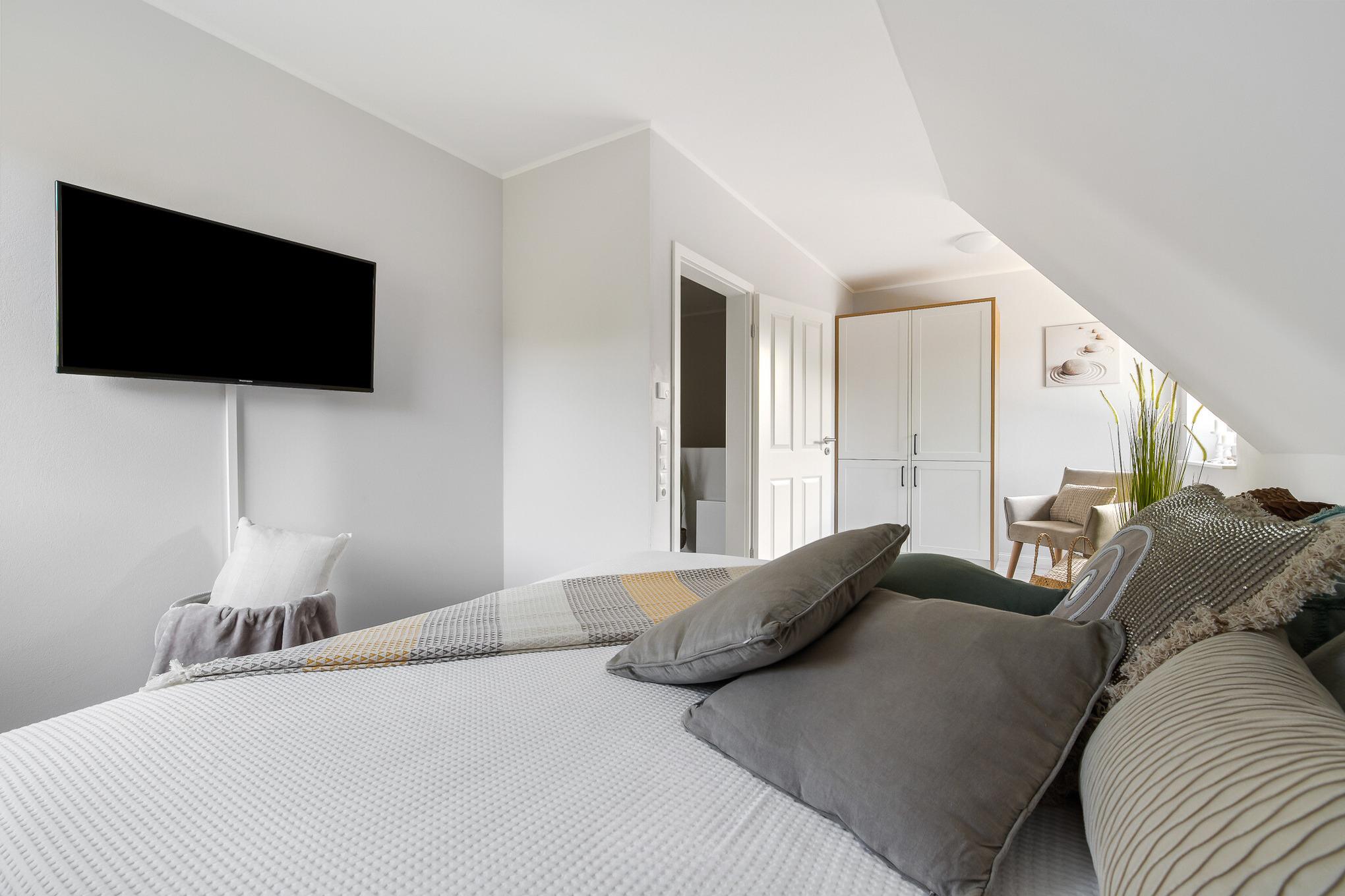 Die elegante Doppelhaushälfte "Deichlöpper" bietet ein hochwertiges und modernes Ambiente, das Ihren Aufenthalt an der Nordsee zu einem unvergesslichen Erlebnis machen wird! Besonders hervorzuheben ist die nachhaltige Bauweise des Hauses. Es entspricht nicht nur dem Standard von KfW 40 plus, sondern bezieht seinen Strom vollständig aus erneuerbaren Energiequellen. Zusätzlich wurde eine Erdwärmepumpe installiert. Der großzügige Wohnbereich ist stilvoll eingerichtet und mit einem Flatscreen-TV ausgestattet. Die separate, moderne Küche bietet alles, was Sie für einen gelungenen Kochabend benötigen. In den beiden Schlafzimmern befinden sich jeweils ein großes Doppelbett sowie ein Flatscreen-TV. Die beiden modernen Bäder verfügen jeweils über eine ebenerdige Dusche. Alle Fenster sind mit elektrischen Aussenrollläden ausgestattet. Zum Haus gehören zudem eine Terrasse, ein großer, komplett eingezäunter Garten und ein Gemeinschaftsgeräteschuppen. Vor dem Haus steht Ihnen ein großzügiger Parkplatz zur Verfügung. Es gibt zusätzlich einen Carport.