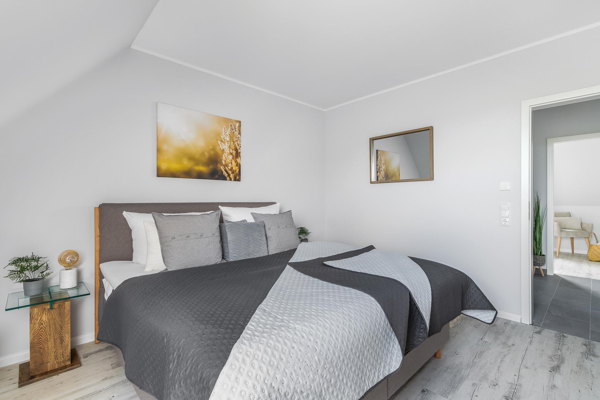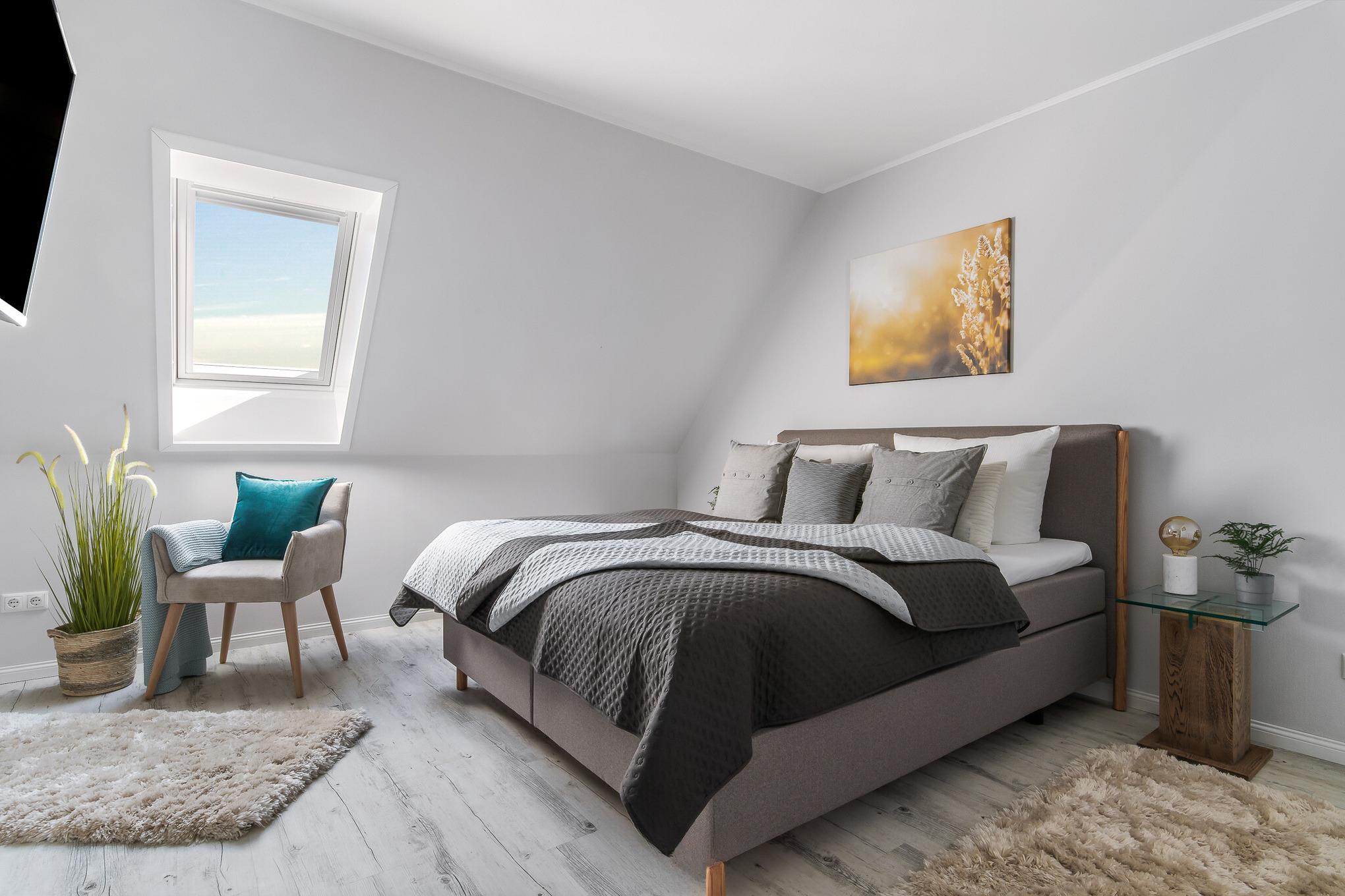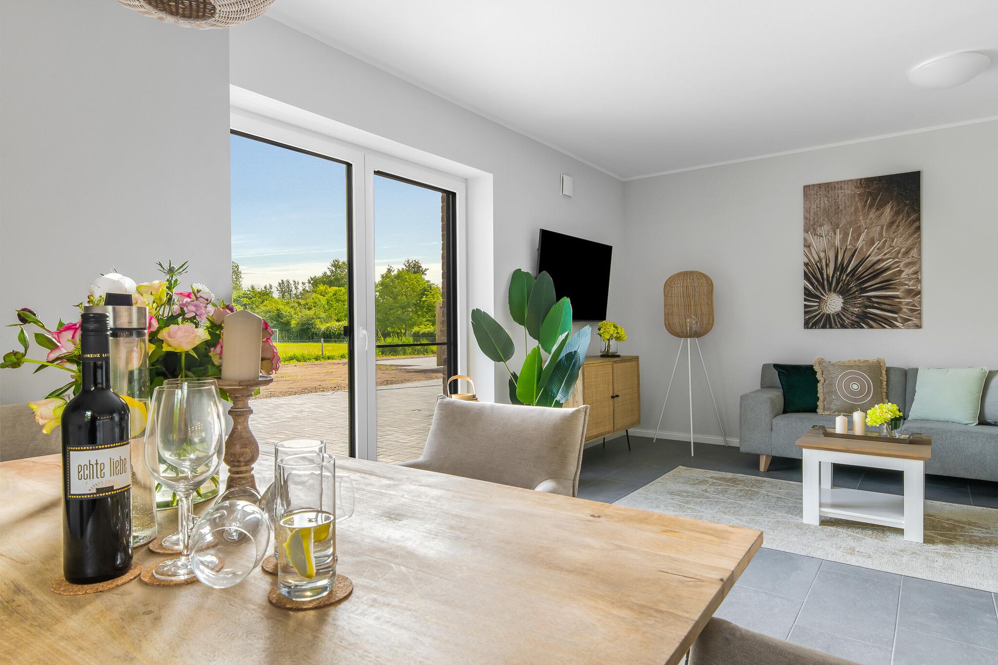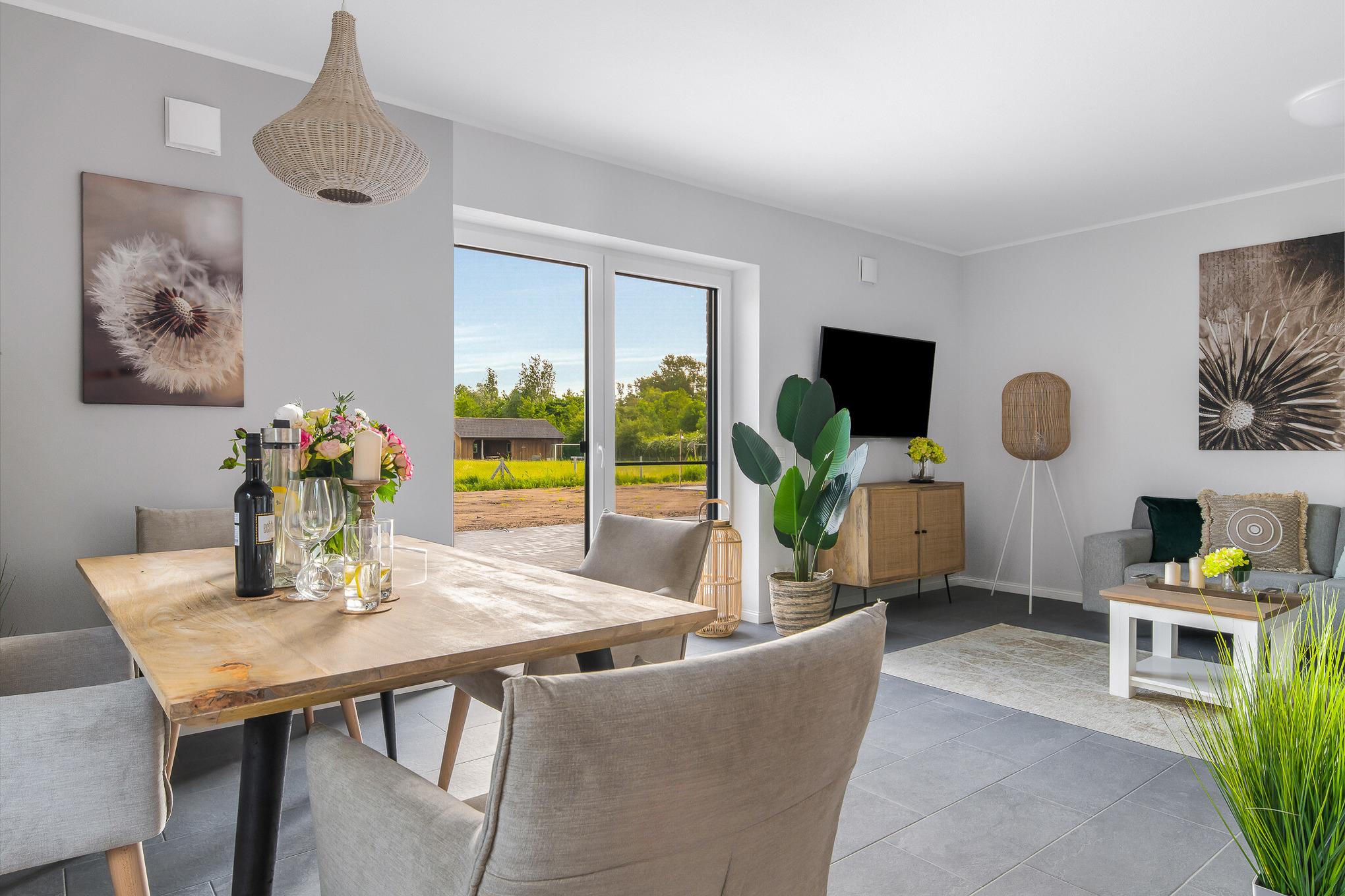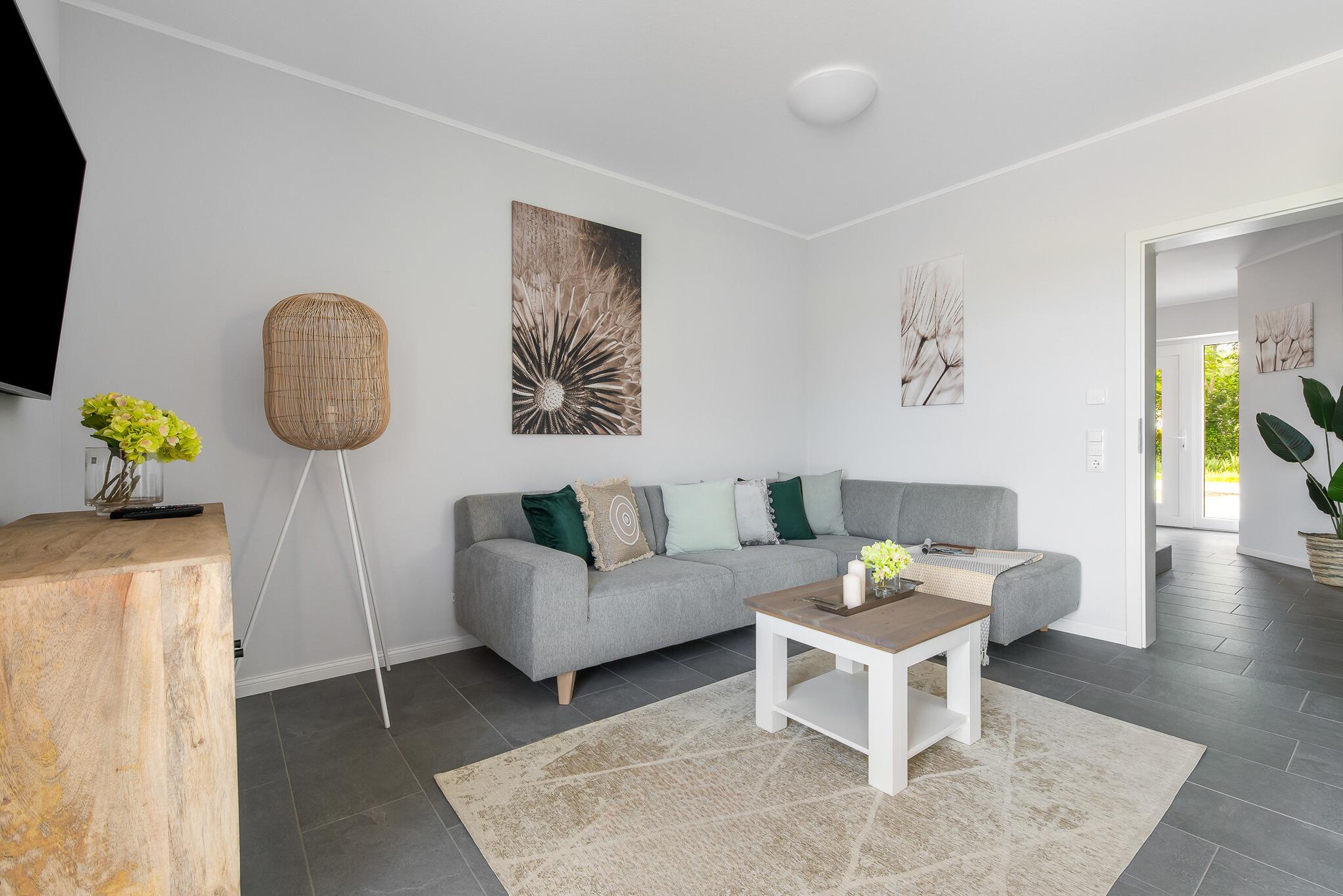 Die elegante Doppelhaushälfte "Deichlöpper" bietet ein hochwertiges und modernes Ambiente, das Ihren Aufenthalt an der Nordsee zu einem unvergesslichen Erlebnis machen wird! Besonders hervorzuheben ist die nachhaltige Bauweise des Hauses. Es entspricht nicht nur dem Standard von KfW 40 plus, sondern bezieht seinen Strom vollständig aus erneuerbaren Energiequellen. Zusätzlich wurde eine Erdwärmepumpe installiert. Der großzügige Wohnbereich ist stilvoll eingerichtet und mit einem Flatscreen-TV ausgestattet. Die separate, moderne Küche bietet alles, was Sie für einen gelungenen Kochabend benötigen. In den beiden Schlafzimmern befinden sich jeweils ein großes Doppelbett sowie ein Flatscreen-TV. Die beiden modernen Bäder verfügen jeweils über eine ebenerdige Dusche. Alle Fenster sind mit elektrischen Aussenrollläden ausgestattet. Zum Haus gehören zudem eine Terrasse, ein großer, komplett eingezäunter Garten und ein Gemeinschaftsgeräteschuppen. Vor dem Haus steht Ihnen ein großzügiger Parkplatz zur Verfügung. Es gibt zusätzlich einen Carport.