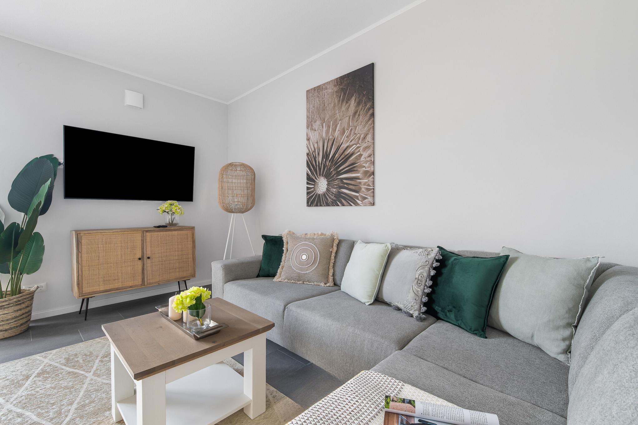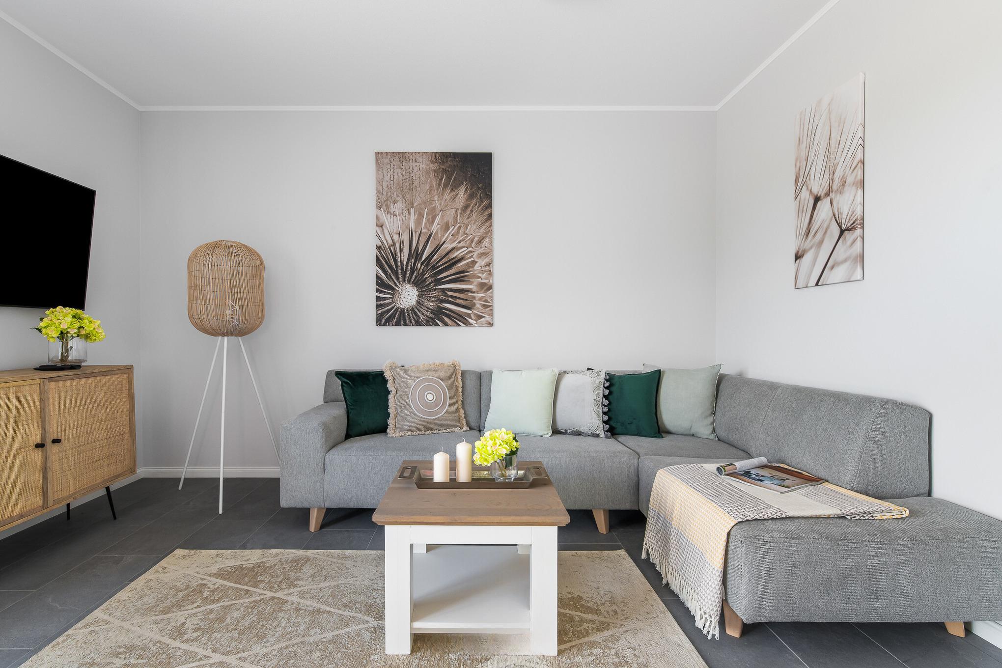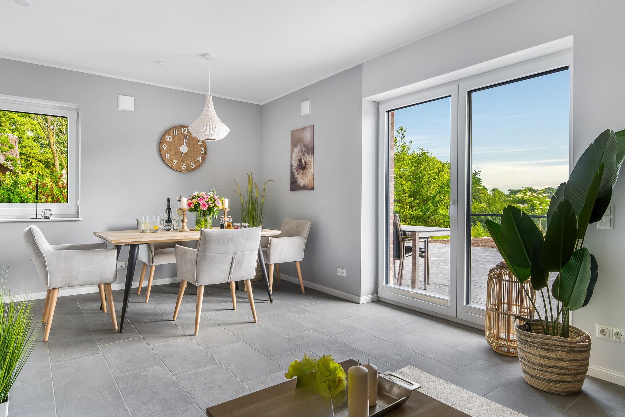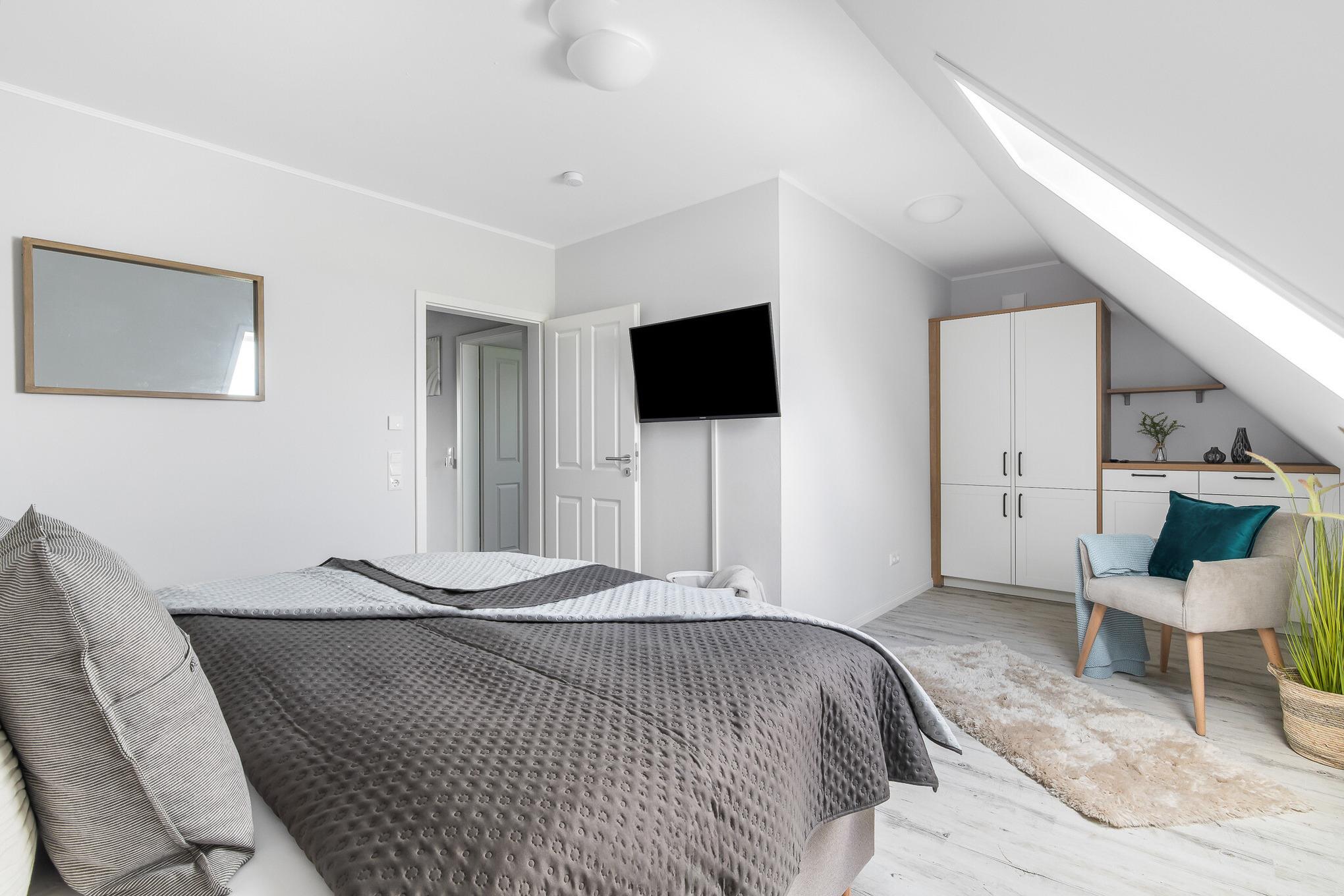 Die elegante Doppelhaushälfte "Deichlöpper" bietet ein hochwertiges und modernes Ambiente, das Ihren Aufenthalt an der Nordsee zu einem unvergesslichen Erlebnis machen wird! Besonders hervorzuheben ist die nachhaltige Bauweise des Hauses. Es entspricht nicht nur dem Standard von KfW 40 plus, sondern bezieht seinen Strom vollständig aus erneuerbaren Energiequellen. Zusätzlich wurde eine Erdwärmepumpe installiert. Der großzügige Wohnbereich ist stilvoll eingerichtet und mit einem Flatscreen-TV ausgestattet. Die separate, moderne Küche bietet alles, was Sie für einen gelungenen Kochabend benötigen. In den beiden Schlafzimmern befinden sich jeweils ein großes Doppelbett sowie ein Flatscreen-TV. Die beiden modernen Bäder verfügen jeweils über eine ebenerdige Dusche. Alle Fenster sind mit elektrischen Aussenrollläden ausgestattet. Zum Haus gehören zudem eine Terrasse, ein großer, komplett eingezäunter Garten und ein Gemeinschaftsgeräteschuppen. Vor dem Haus steht Ihnen ein großzügiger Parkplatz zur Verfügung. Es gibt zusätzlich einen Carport.