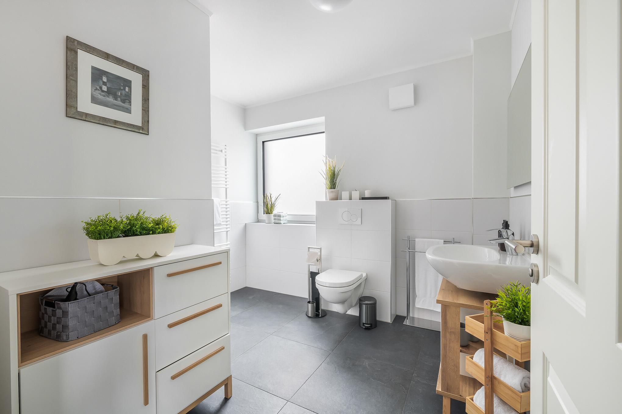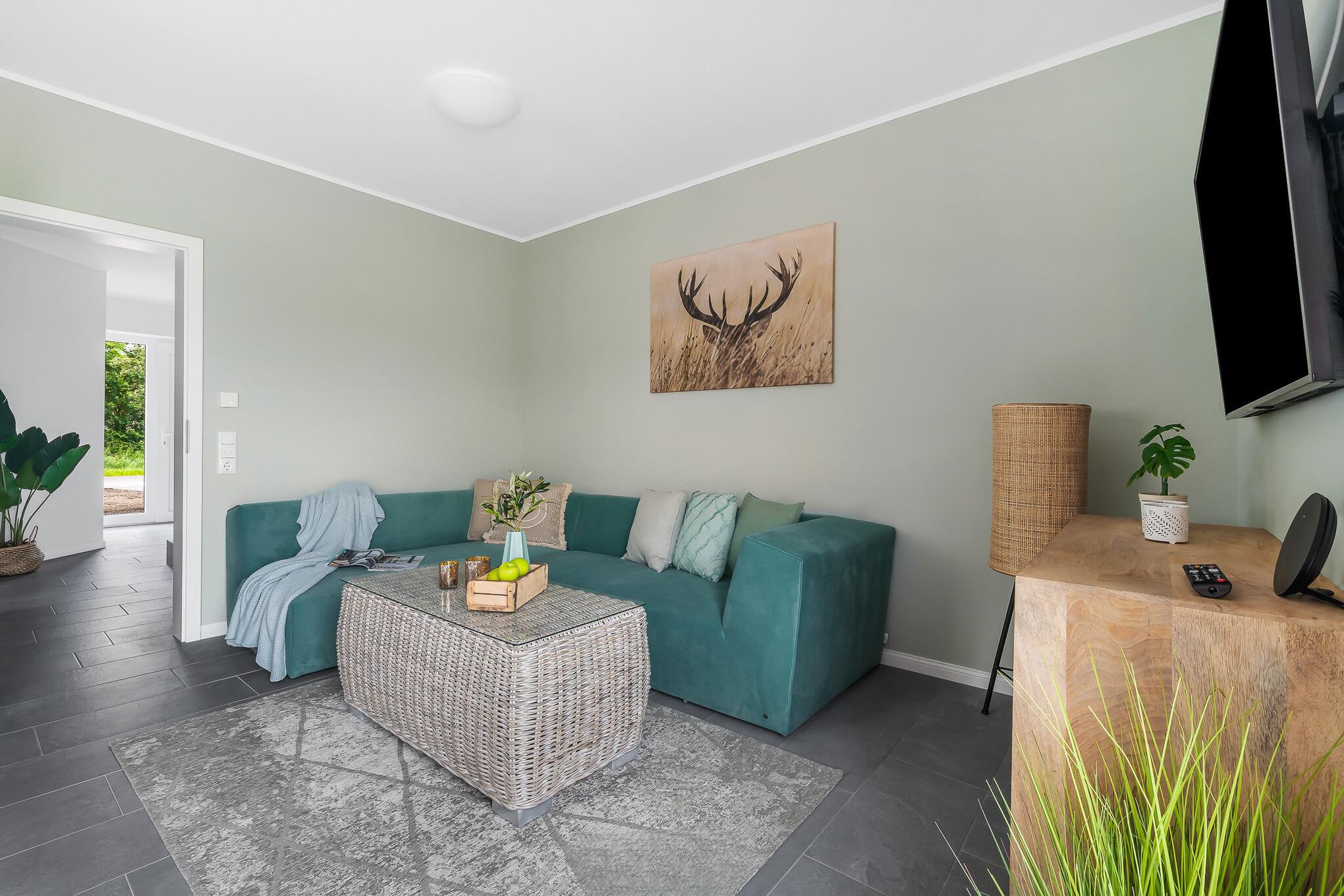 Die elegante Doppelhaushälfte "Wattenkieker" bietet ein hochwertiges und modernes Ambiente, das Ihren Aufenthalt an der Nordsee zu einem unvergesslichen Erlebnis machen wird! Besonders hervorzuheben ist die nachhaltige Bauweise des Hauses. Es entspricht nicht nur dem Standard von KfW 40 plus, sondern bezieht seinen Strom vollständig aus erneuerbaren Energiequellen. Zusätzlich wurde eine Erdwärmepumpe installiert. Der großzügige Wohnbereich ist stilvoll eingerichtet und mit einem Flatscreen-TV ausgestattet. Die separate, moderne Küche bietet alles, was Sie für einen gelungenen Kochabend benötigen. In den beiden Schlafzimmern befinden sich jeweils ein großes Doppelbett sowie ein Flatscreen-TV. Die beiden modernen Bäder verfügen jeweils über eine ebenerdige Dusche. Alle Fenster verfügen über elektrische Aussenrollläden. Zum Haus gehören zudem eine Terrasse, ein großer, komplett eingezäunter Garten und ein Gemeinschaftsgeräteschuppen. Vor dem Haus steht Ihnen ein großzügiger Parkplatz zur Verfügung. Es gibt zusätzlich einen Carport.
