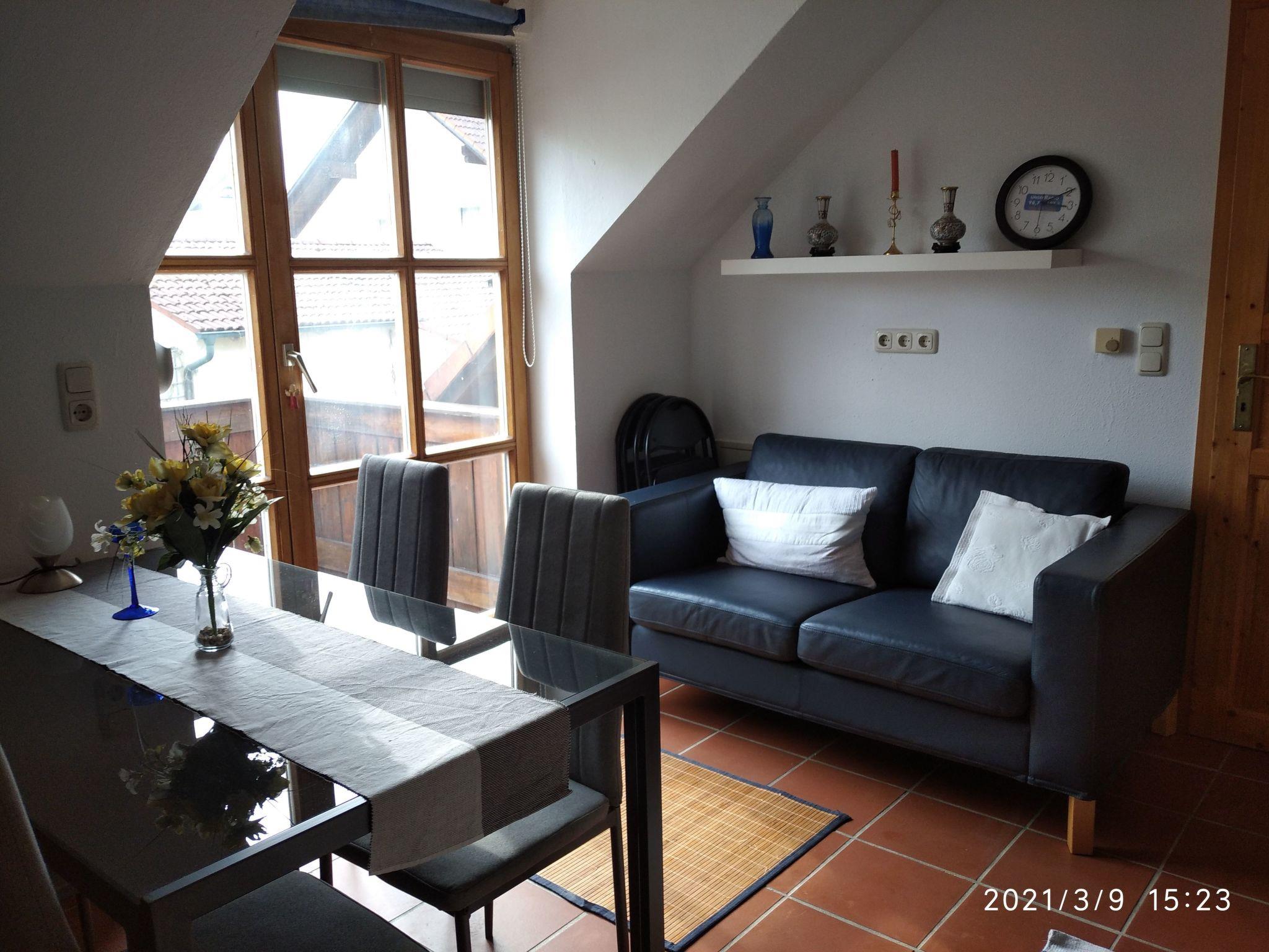Charming 2-room flat in a two-family house, 1st floor, suitable for up to 2 persons. It consists of 1 bedroom, 1 living room, 1 large balcony, 1 breakfast balcony, an eat-in kitchen with dining area and a large bathroom with shower and bathtub with underfloor heating. The house with Mediterranean flair is idyllically situated on a small pond, bright and friendly through large French windows and absolutely quiet. Nevertheless, it offers ideal infrastructure: railway station (10 min walk) with direct connection to Munich (Bayernticket!!!), Passau, Regensburg, etc. Good shopping facilities (Lidl, Aldi etc.), close to the Danube + Bavarian Forest. Ideal for cycling or hiking.