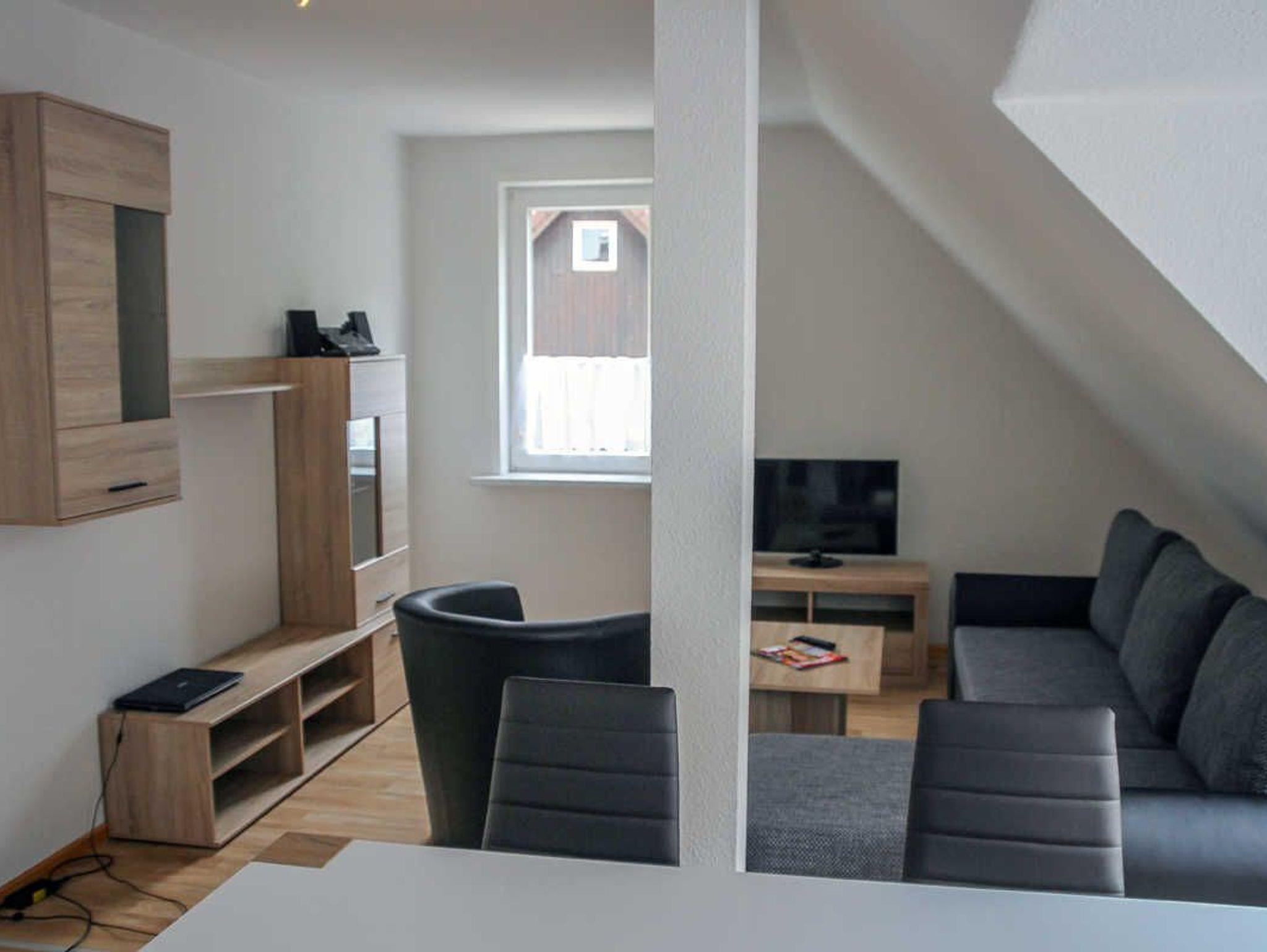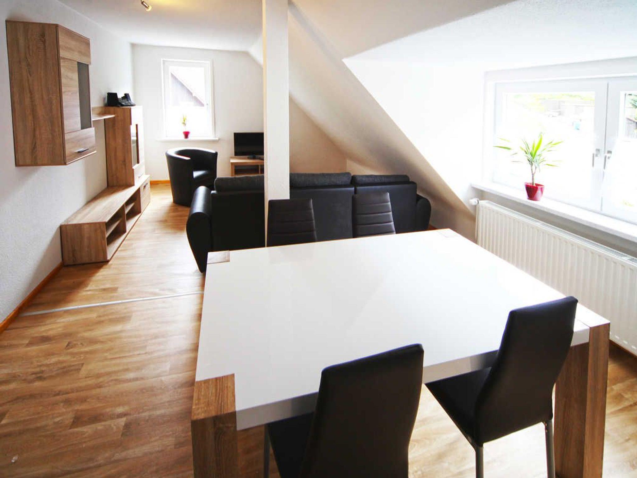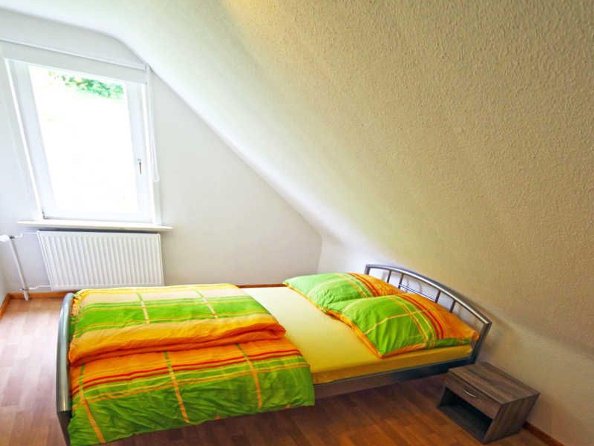Die Ferienwohnung befindet sich im Obergeschoss eines Mehrfamilienhauses mit lediglich einer handvoll, aber dafür großzügigen geräumigen Wohnungen und ist unterteilt in ein Wohnzimmer mit Sessel und Schlafcouch, Flachbildfernseher, Stereoanlage mit CD-Spieler, ein Schlafzimmer mit Ehebett (zwei Kaltschaum-Matratzen in Überläge 210 x 90cm), zwei Schlafzimmer mit Doppelbetten (140 x 200cm), einem Duschbad und eine moderne Küche.