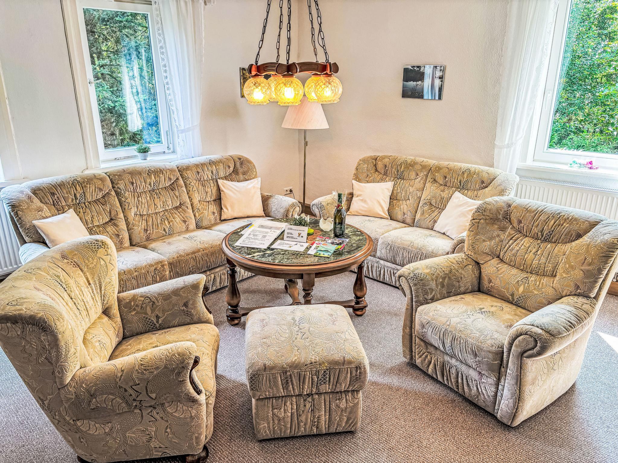 2-family house "Altes Forsthaus Sösetal". In the hamlet Riefensbeek 12 km from the centre of Osterode, 50 m from the river, in the countryside. For shared use: property 1'500 m2 with trees, meadow. Private: garden 200 m2 with lawn for sunbathing. In the house: storage room for bicycles. Parking on the premises. Grocery 12 km, supermarket 12 km, restaurant 100 m, bus stop 100 m, railway station "Osterode" 12 km, indoor swimming pool 12 km. Golf course (18 hole) 29 km, fishing possibilities 12 km. Please note: fishing [permit required]. The owner lives in the same residence. At the end of the garden runs the river Söse as a direct inflow to the Söse dam.