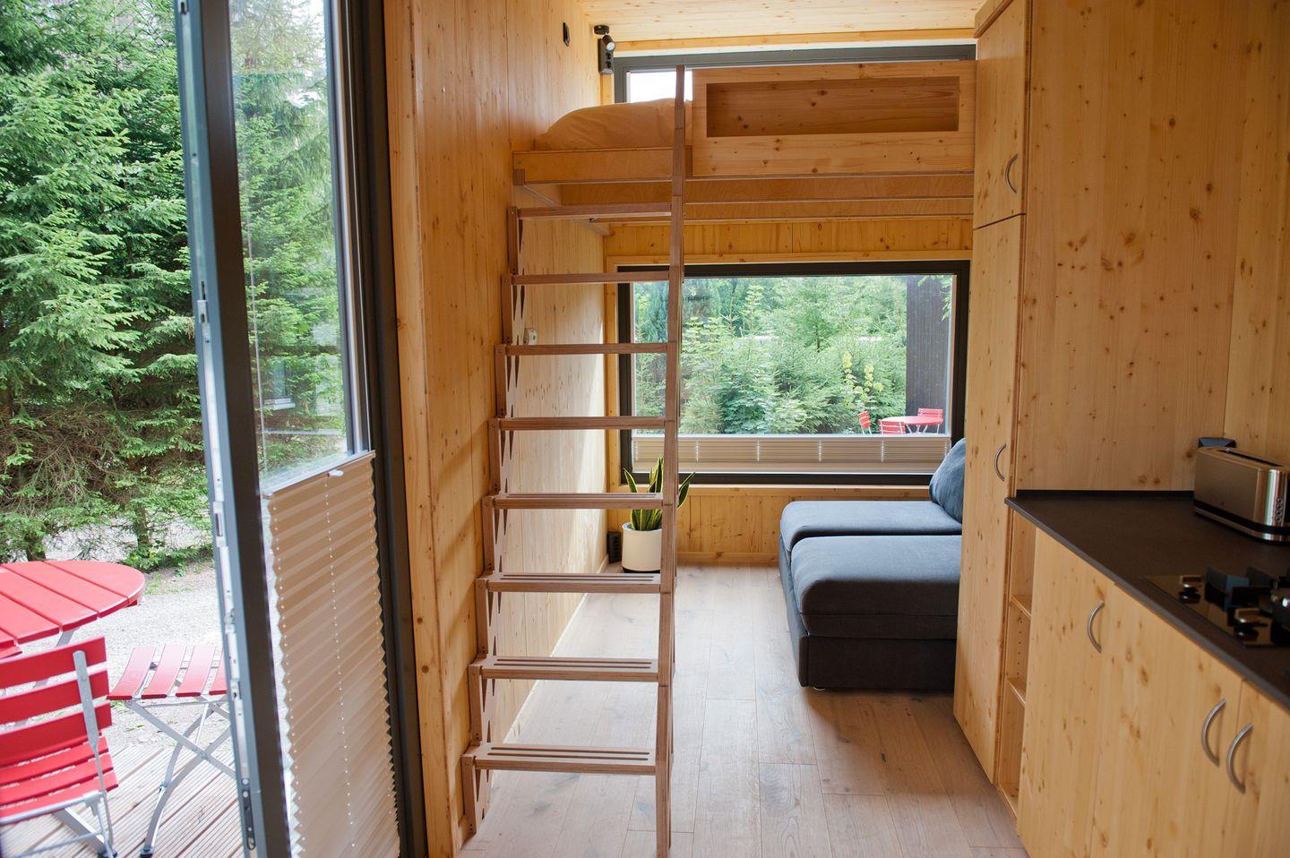Erlebe mit dem Green Tiny House Nature den Urlaub der Zukunft. Unser zweites Tiny House-Modell wurde im Jahr 2021 neu entwickelt und wird regional in Niedersachsen produziert. Es ist perfekt geeignet für Familien mit bis zu vier Personen. Freue dich auf ein loftiges Interieur auf zwei Ebenen, eine große Terrasse und ein modernes Badezimmer mit Astronautendusche. Dank des grünen Designs und dem minimalen Umwelteinfluss ist das Mini-Ferienhaus außerdem als nachhaltige Ferienimmobilie zertifiziert. Die ökologische und wohngesunde Bauweise schont wertvolle Ressourcen und fördert das Wohlergehen der Gäste. Außerdem bieten wir dir eine klimaneutrale Übernachtung dank Kompensation aller anfallenden CO2-Emissionen.