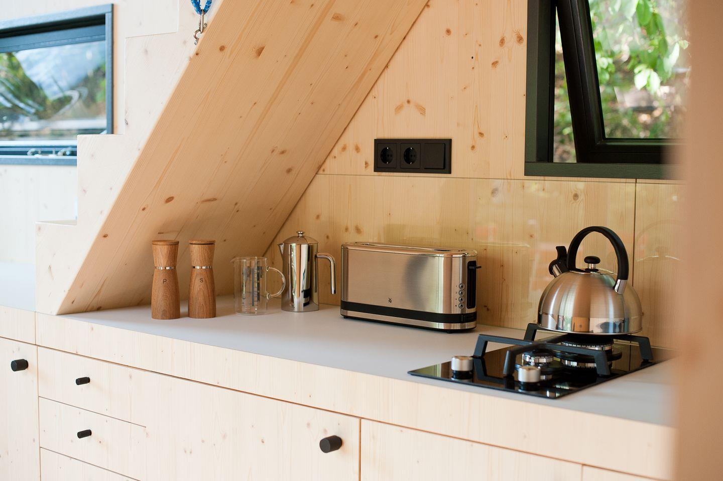 Übernachte in unserem Flagship-Modell für Designliebhaber - dem Green Tiny House Pioneer. Erlebe Nachhaltigkeit von morgen und ein Naturerlebnis der besonderen Art. Unser Vorzeigemodell wird in liebevoller Manufakturarbeit in Schleswig-Holstein hergestellt und bietet auf 22 Quadratmetern Platz für bis zu drei Erwachsene oder zwei Erwachsene und zwei Kinder. Wie jedes unserer kleinen Häuschen ist es als nachhaltige Ferienimmobilie zertifiziert und besteht komplett aus wohngesunden Materialien. Zu den Ausstattungshighlights gehören ein übergroßes Panoramafenster auf der Wohnebene und ein großes Dachfenster auf der Schlafebene, von dem aus man die Sterne beobachten kann. Außerdem eine voll ausgestattete Küche und ein modernes Badezimmer. Außerdem bieten wir dir eine klimaneutrale Übernachtung dank Kompensation aller anfallenden CO2-Emissionen.