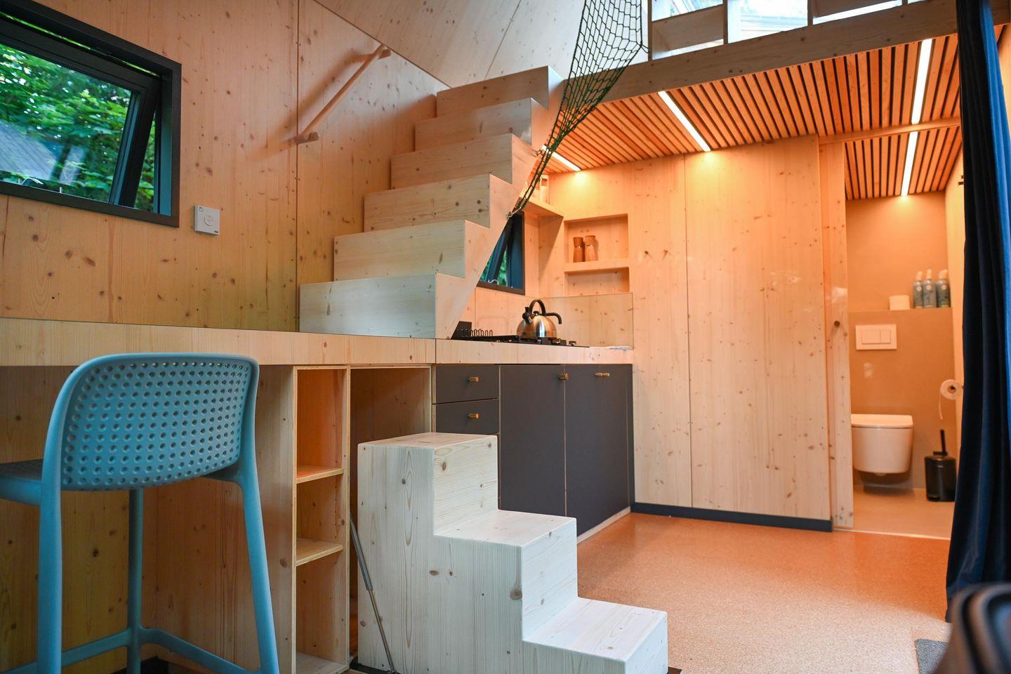 Übernachte in unserem Flagship-Modell für Designliebhaber - dem Green Tiny House Pioneer. Erlebe Nachhaltigkeit von morgen und ein Naturerlebnis der besonderen Art. Unser Vorzeigemodell wird in liebevoller Manufakturarbeit in Schleswig-Holstein hergestellt und bietet auf 22 Quadratmetern Platz für bis zu drei Erwachsene oder zwei Erwachsene und zwei Kinder. Wie jedes unserer kleinen Häuschen ist es als nachhaltige Ferienimmobilie zertifiziert und besteht komplett aus wohngesunden Materialien. Zu den Ausstattungshighlights gehören ein übergroßes Panoramafenster auf der Wohnebene und ein großes Dachfenster auf der Schlafebene, von dem aus man die Sterne beobachten kann. Außerdem eine voll ausgestattete Küche und ein modernes Badezimmer. Außerdem bieten wir dir eine klimaneutrale Übernachtung dank Kompensation aller anfallenden CO2-Emissionen.