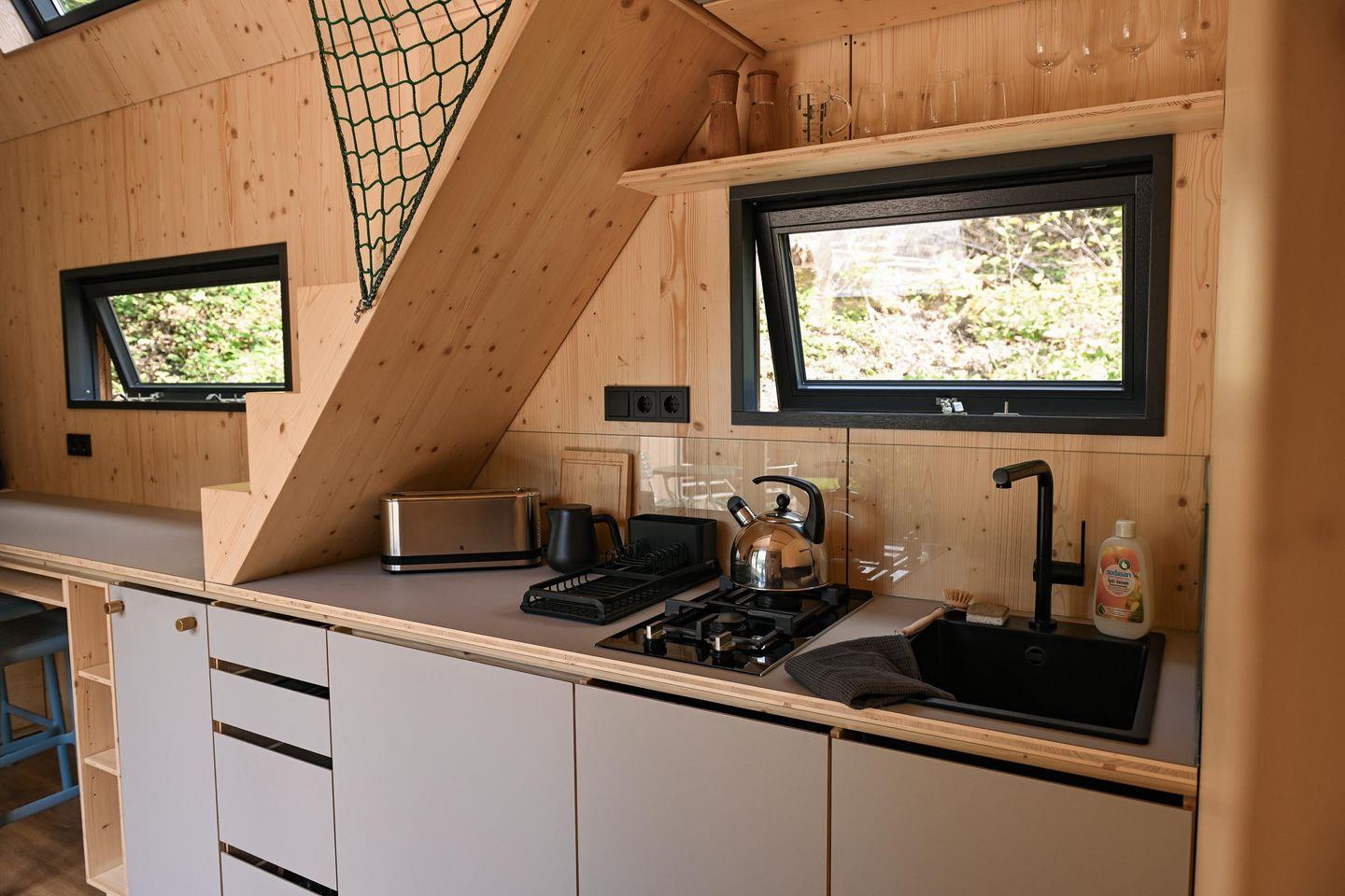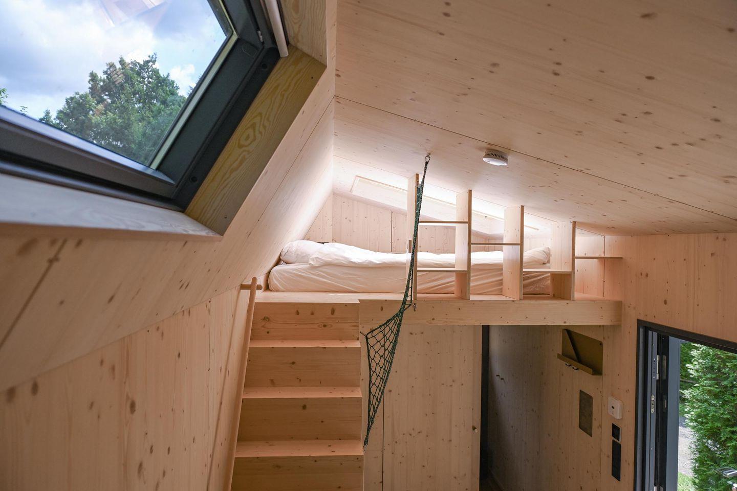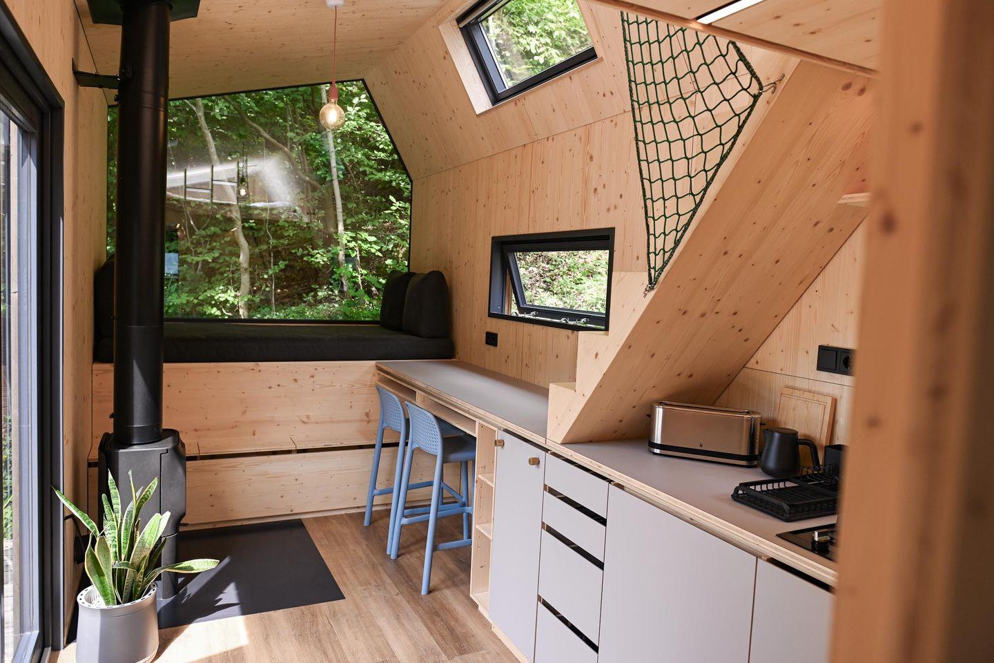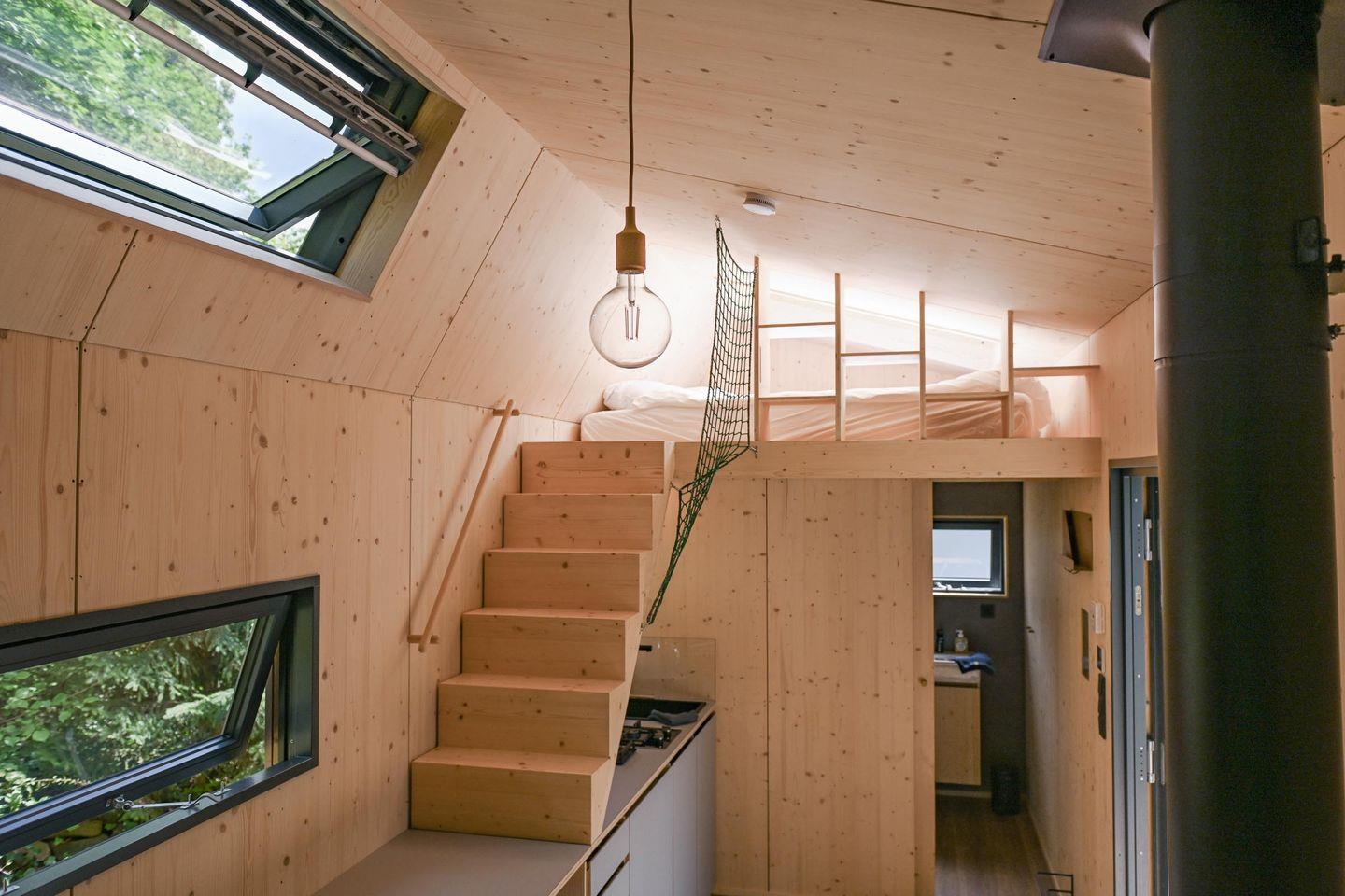 Übernachte in unserem Flagship-Modell für Designliebhaber - dem Green Tiny House Pioneer. Erlebe Nachhaltigkeit von morgen und ein Naturerlebnis der besonderen Art. Unser Vorzeigemodell wird in liebevoller Manufakturarbeit in Schleswig-Holstein hergestellt und bietet auf 22 Quadratmetern Platz für bis zu drei Erwachsene oder zwei Erwachsene und zwei Kinder. Wie jedes unserer kleinen Häuschen ist es als nachhaltige Ferienimmobilie zertifiziert und besteht komplett aus wohngesunden Materialien. Zu den Ausstattungshighlights gehören ein übergroßes Panoramafenster auf der Wohnebene und ein großes Dachfenster auf der Schlafebene, von dem aus man die Sterne beobachten kann. Außerdem eine voll ausgestattete Küche und ein modernes Badezimmer. Außerdem bieten wir dir eine klimaneutrale Übernachtung dank Kompensation aller anfallenden CO2-Emissionen.