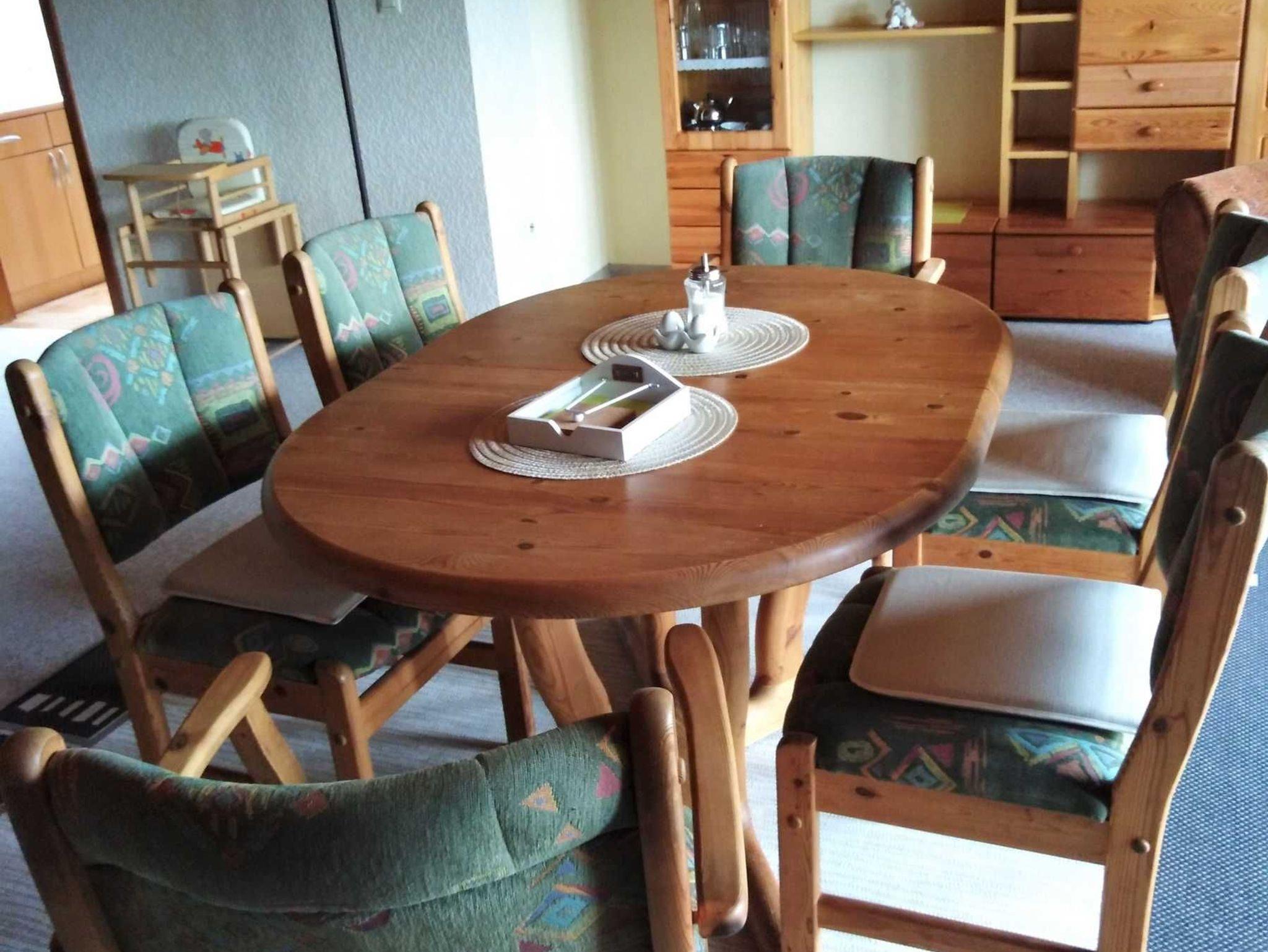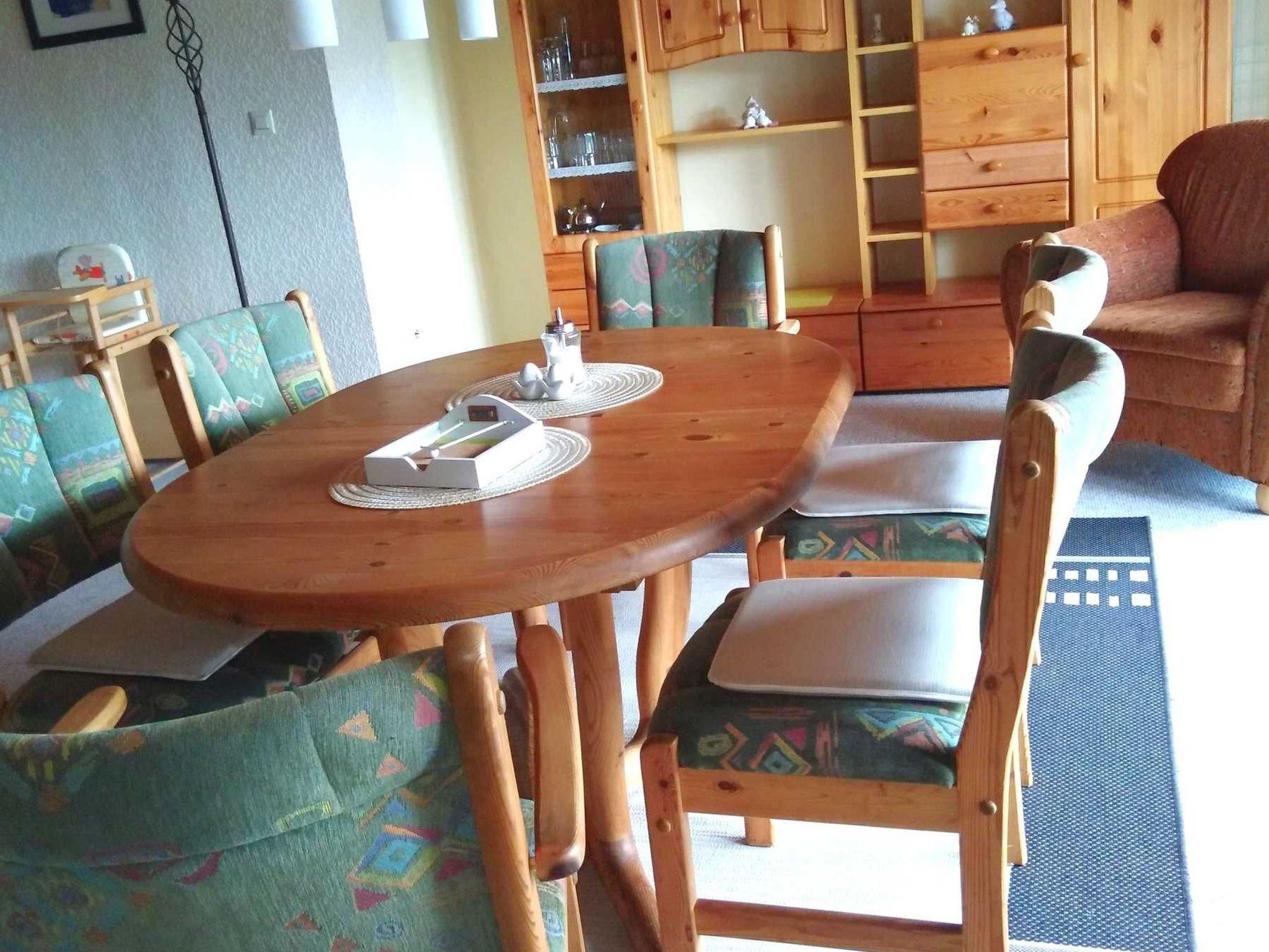 Esstisch, Stühle und 1 Kinderhochstuhl