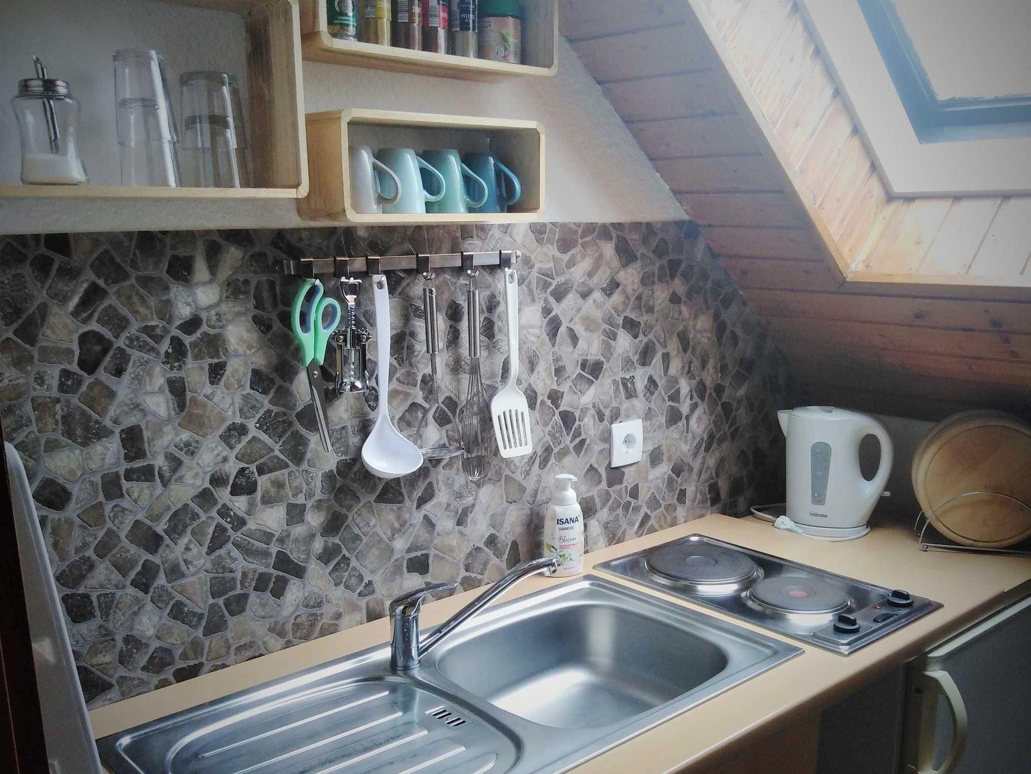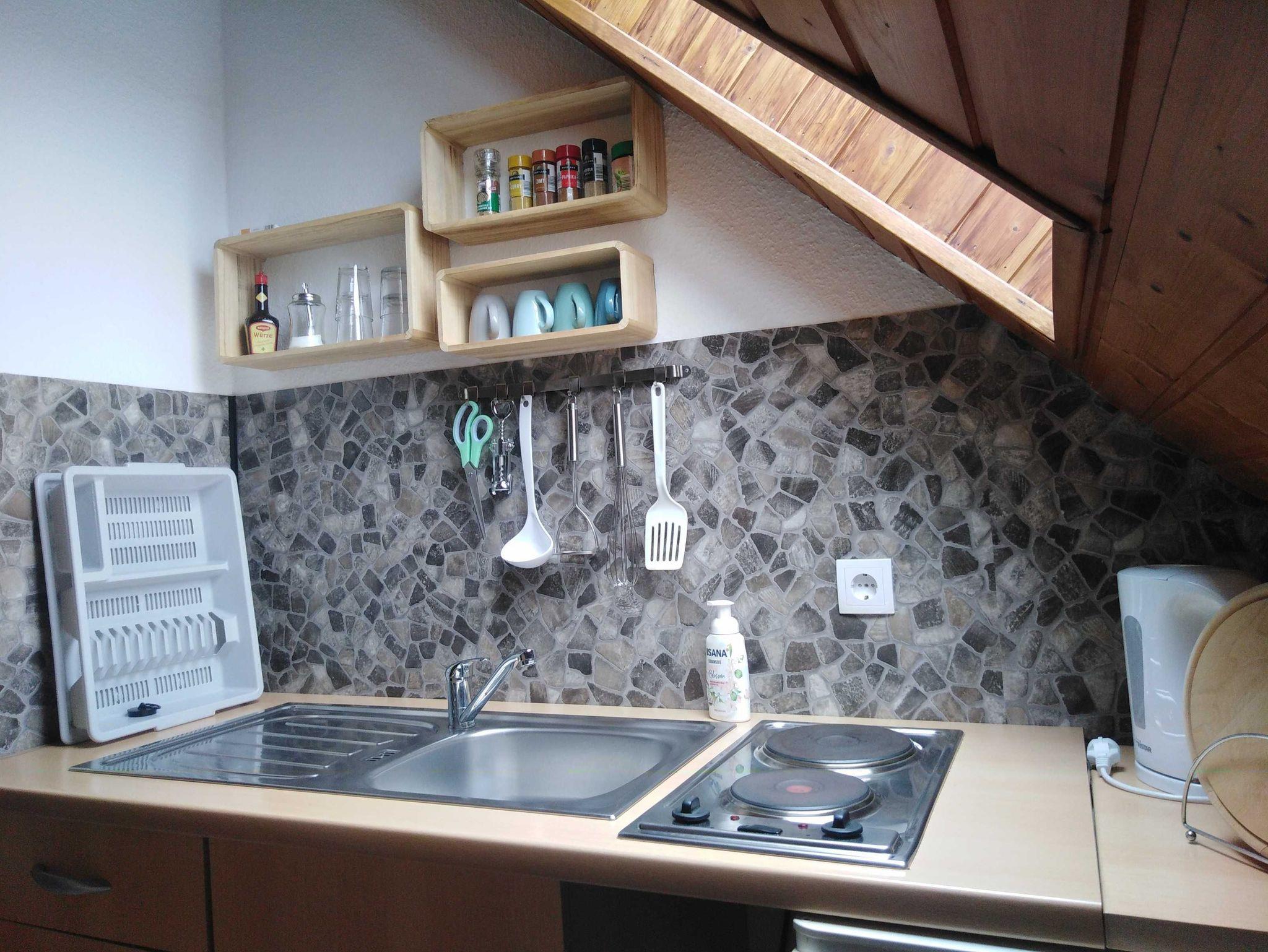kleine feine Mini-Küche mit 2-Platten-Kochfeld ohne Backofen