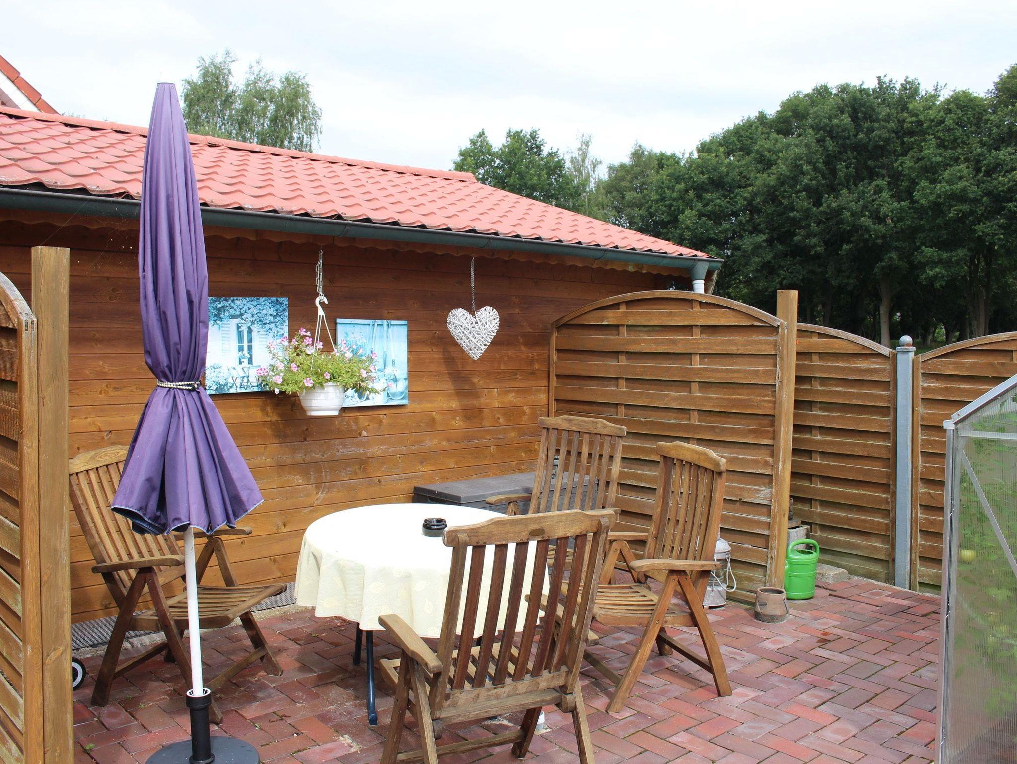 Ein Kinderbett ist vorhanden. Die Terrasse im Garten ist voll möbliert. Eine Unterstellmöglichkeit für Fahrräder ist vorhanden. Ein Parkplatz ist direkt am Haus.