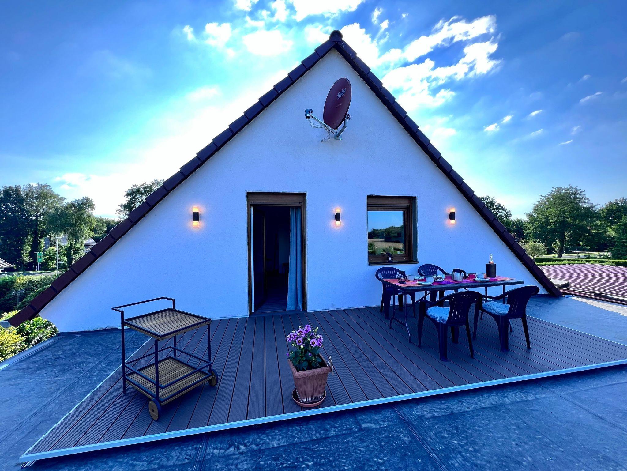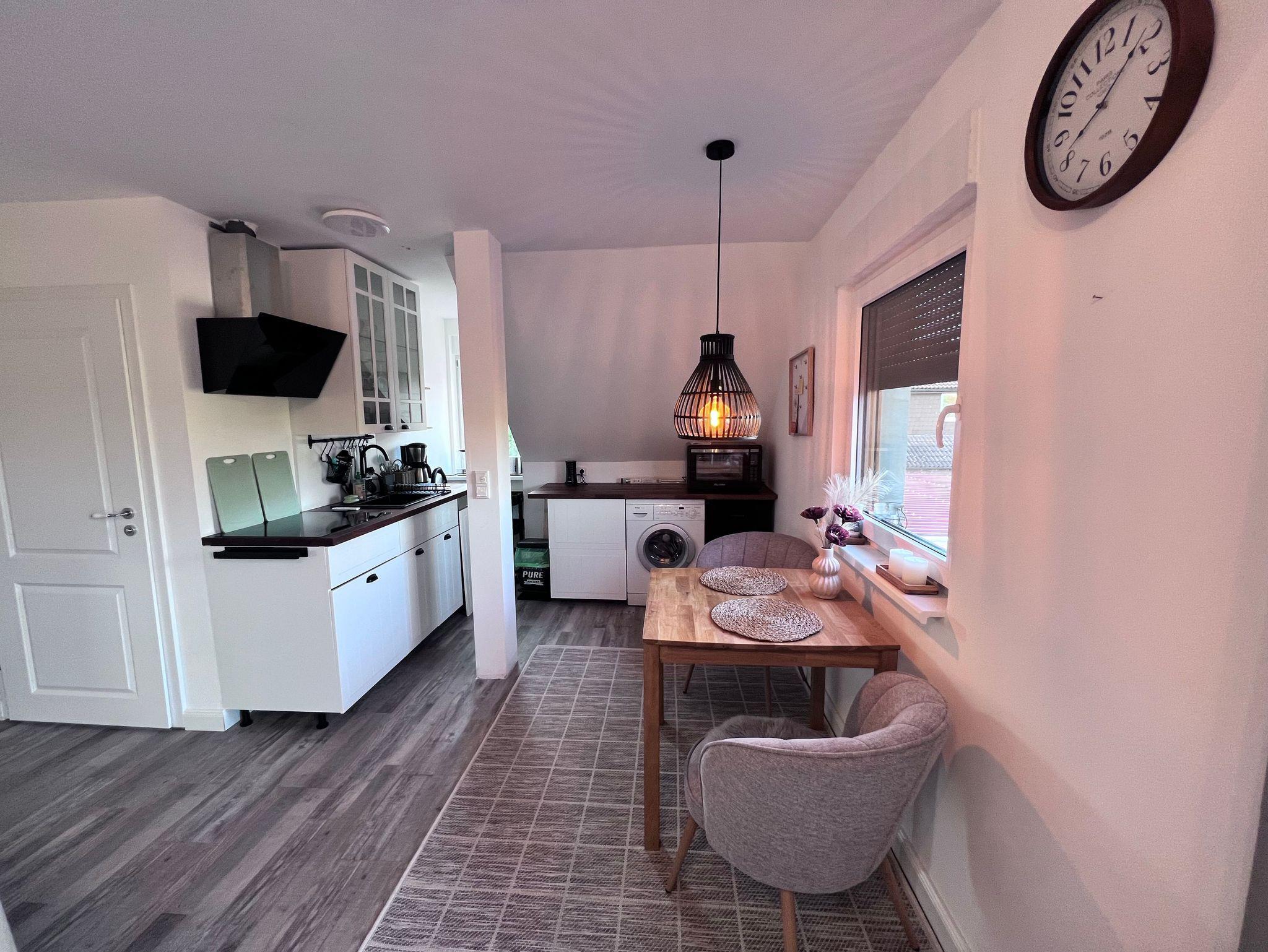 1 Raum Apartment befindet sich im 1. OG auf 46 m². Mit Wasch- und Spülmaschine, voll ausgestattete Küchenzeile, TV, große Dachterrasse, Doppelbett 180 breit, Schlafsofa, Nichtraucherwohnung, begb. Dusche mit viel Tageslicht.