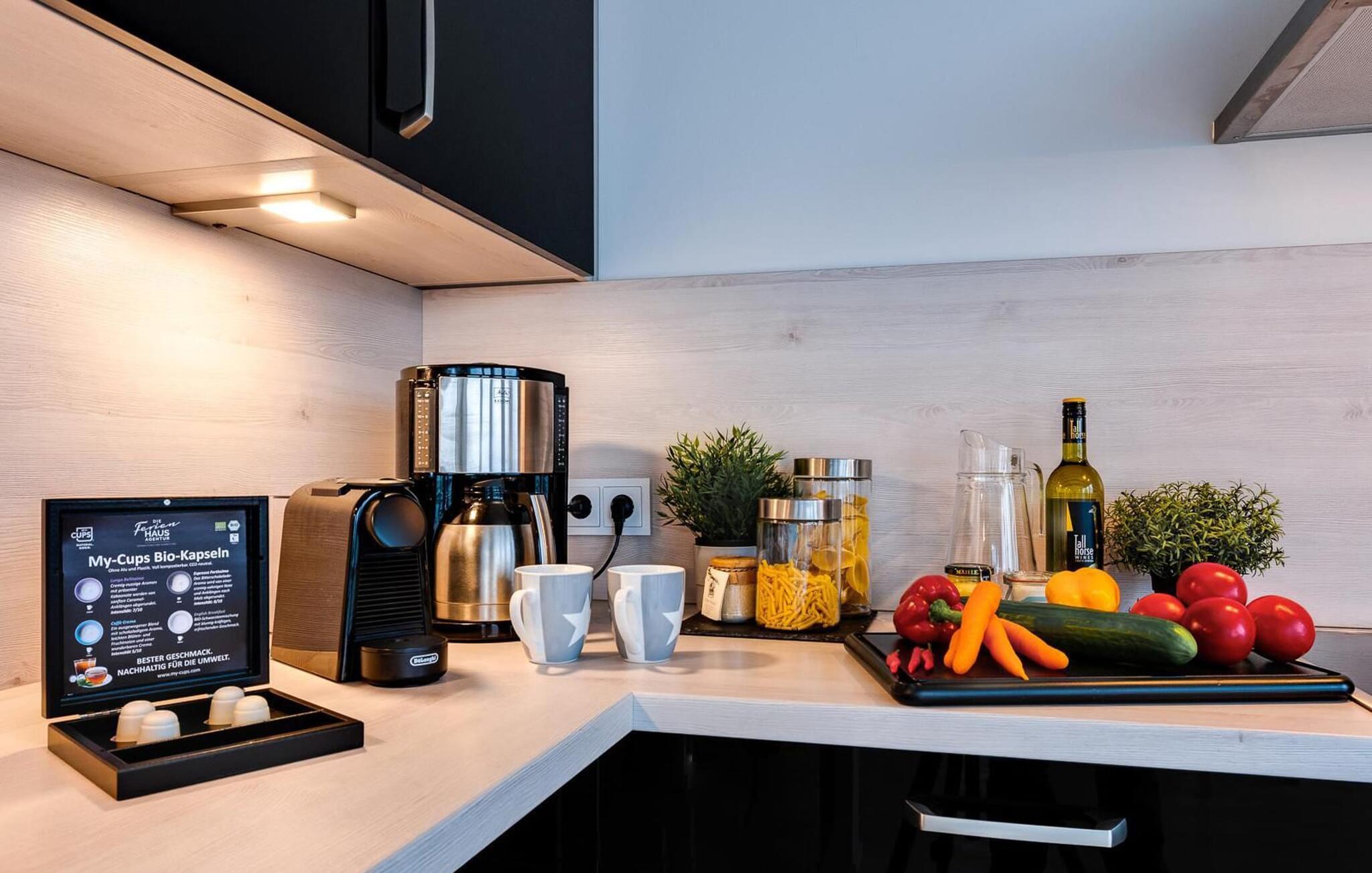På ferien er der tid til kreativ madlavning, det fuldt udstyrede køkken-alrum lader intet tilbage at ønske. De lækre feriemåltider kan herefter nydes på den sydvestvendte terrasse i tilknytning til opholdsområdet.