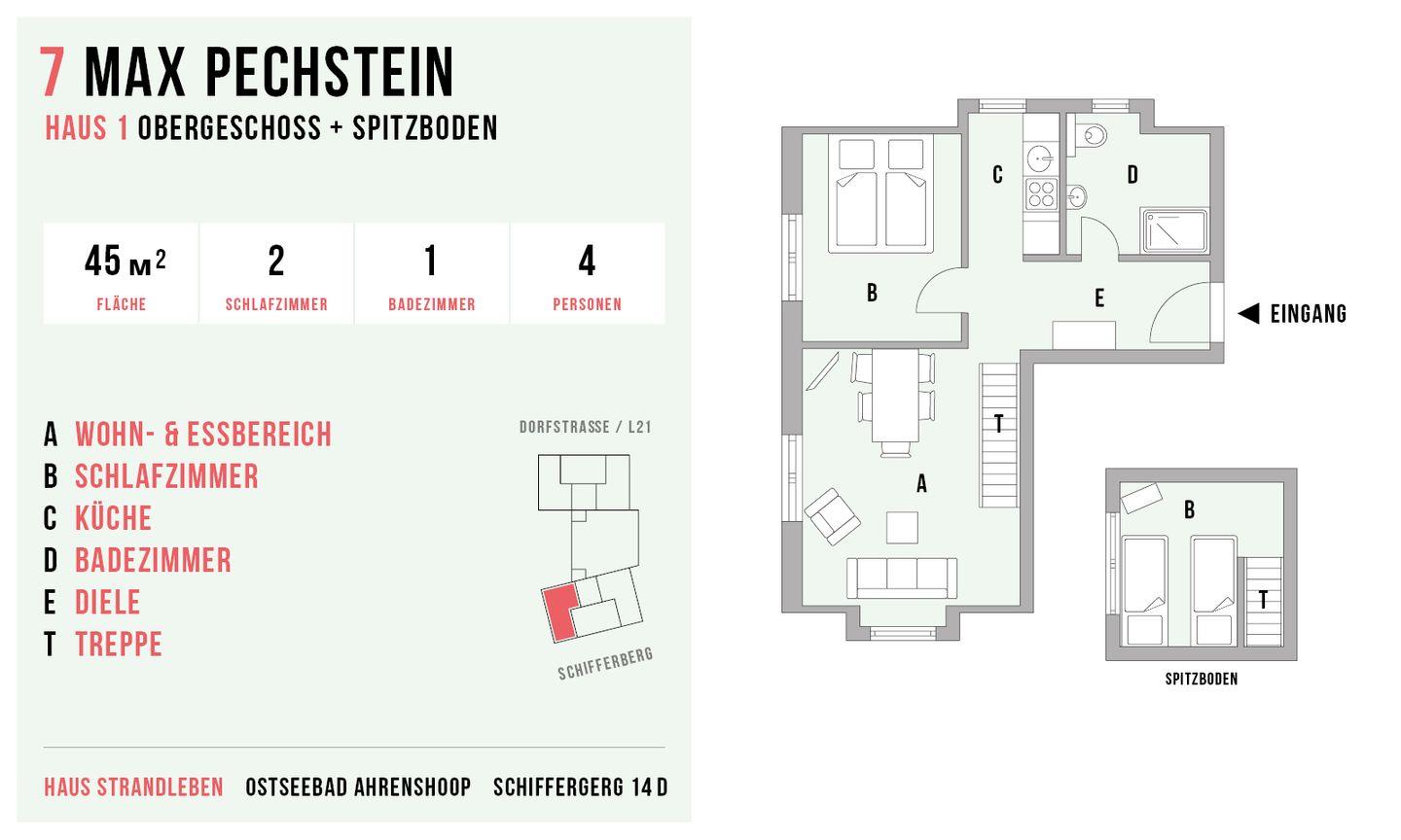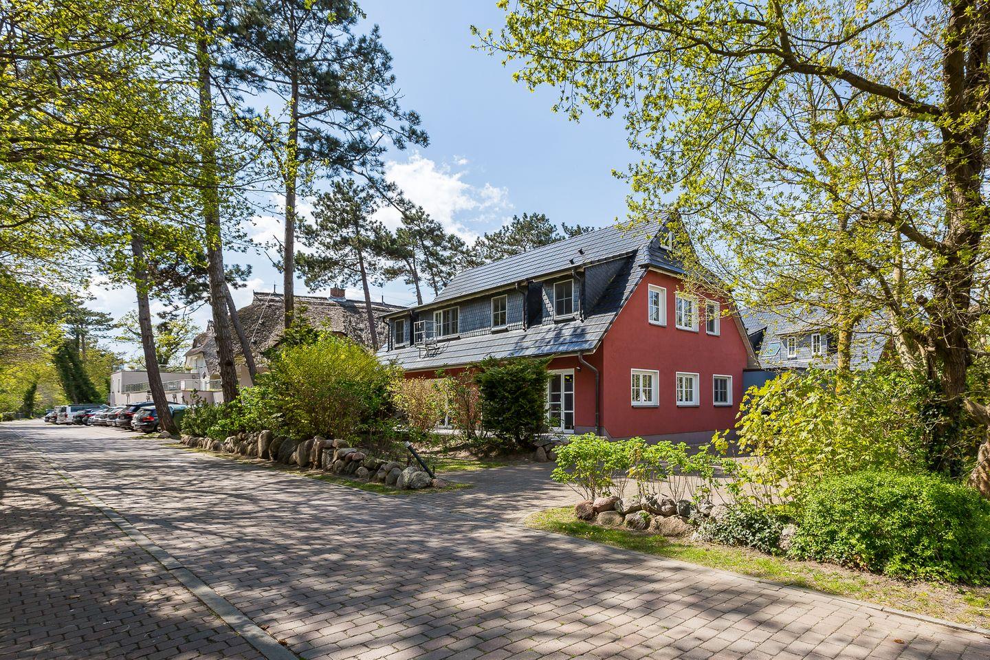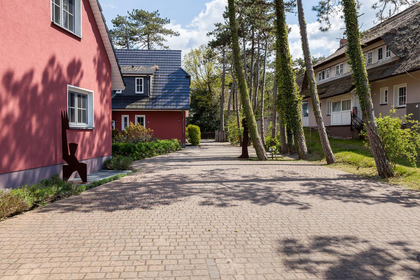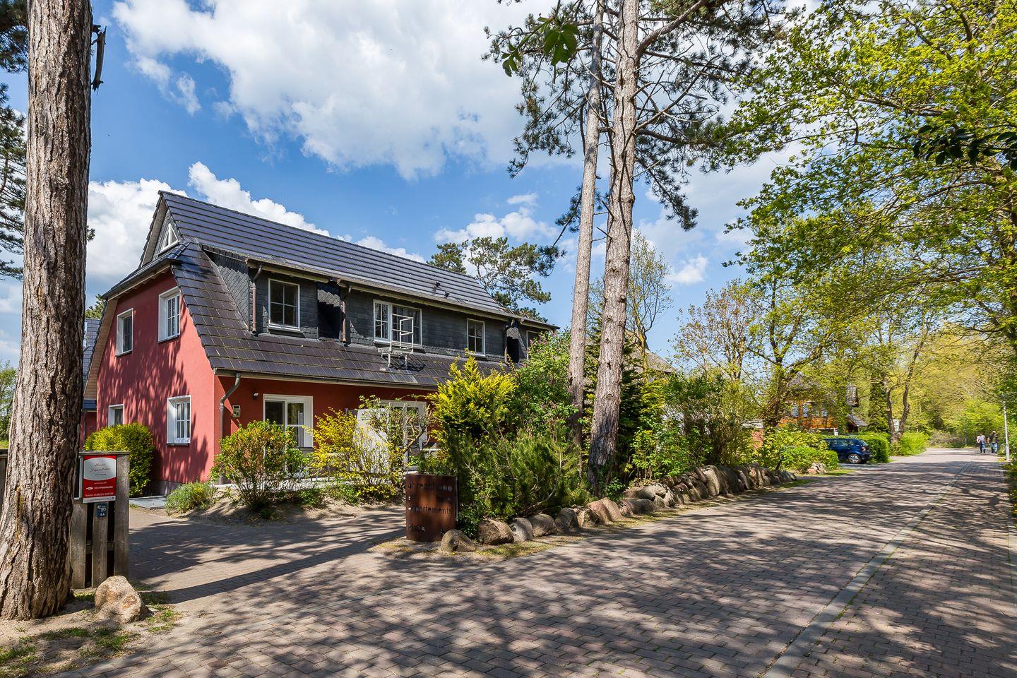 Die Hausanlage mit 13 Ferienwohnungen liegt nur 150 Meter vom weißen Ostseestrand entfernt und befindet sich direkt an der Bäderstraße L21. Neben der strandnahen Lage ist auch der Ortskern mit Bäckereien und einer Vielzahl von Restaurants, Cafés und Kunstgalerien nur ca. einen Kilometer entfernt. Der angrenzende Deich eignet sich perfekt für Wanderungen oder Radtouren in den Nationalpark, zum Weststrand und entlang der weiten Boddenlandschaft.