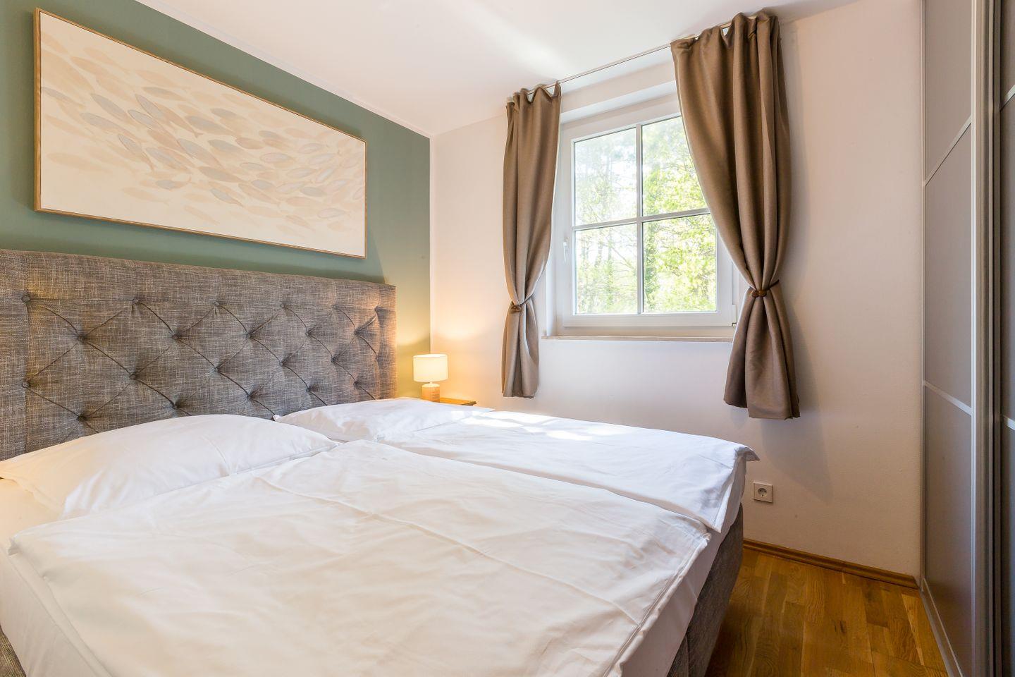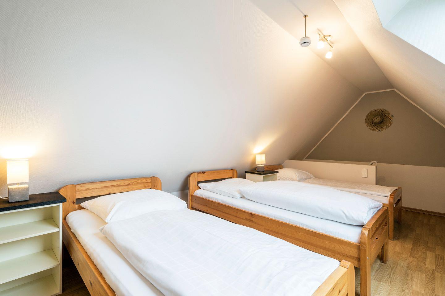 Im Obergeschoss befinden sich der Wohnbereich mit gemütlicher Sitz- und Essecke, eine separate Küchenzeile, ein Schlafzimmer mit Doppelbett (180x200 cm) und ein Bad mit Dusche/WC. Das Dachgeschoss verfügt über ein offenes zweites Schlafzimmer mit drei Einzelbetten. Vom Schlafzimmer hast du einen kleinen Ausblick auf die Ostsee. Im Preis inklusive ist die Nutzung des Wellnessbereiches im Untergeschoss. Hier befinden sich ein Schwimmbad, eine Saunalandschaft, ein Ruheraum sowie Kneippfußbäder und Massageduschen.