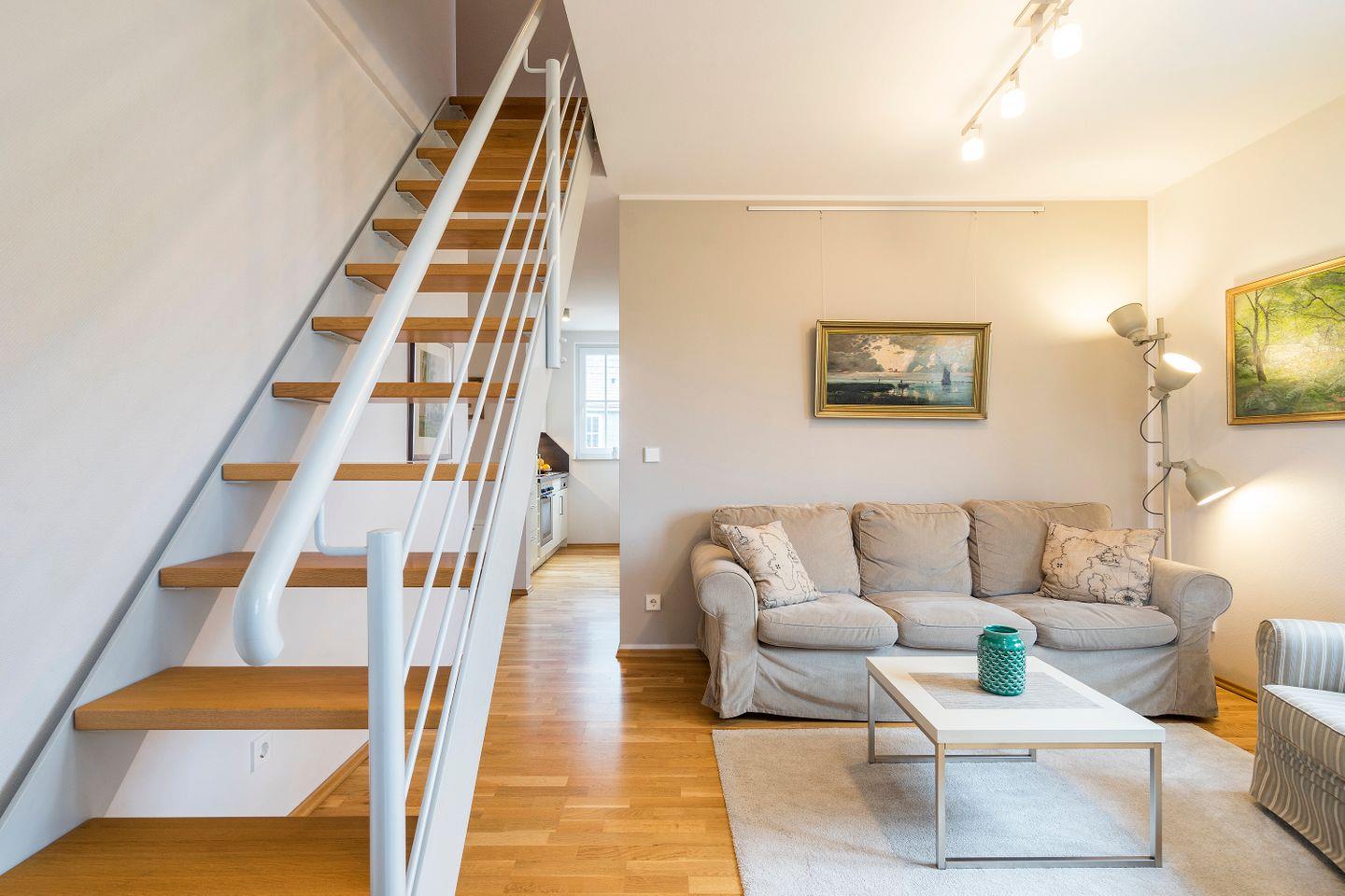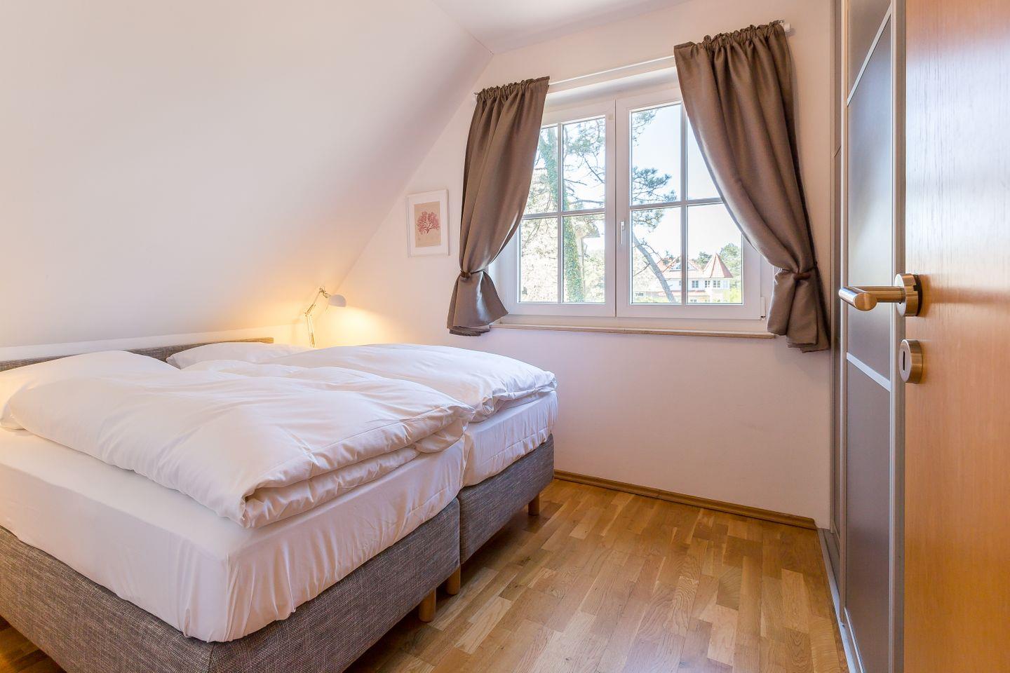Im Obergeschoss befinden sich der Wohnbereich mit gemütlicher Sitz- und Essecke, eine offene Küchenzeile, ein Schlafzimmer mit Doppelbett (180x200 cm) und ein Bad mit Dusche/WC. Das Dachgeschoss verfügt über ein offenes zweites Schlafzimmer mit drei Einzelbetten. Von hier hast du einen kleinen Ausblick auf die Ostsee. Im Preis inklusive ist die Nutzung des Wellnessbereiches im Untergeschoss. Hier befinden sich ein Schwimmbad, eine Saunalandschaft, ein Ruheraum sowie Kneippfußbäder und Massageduschen.