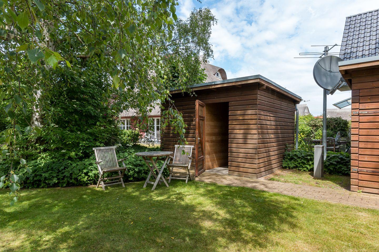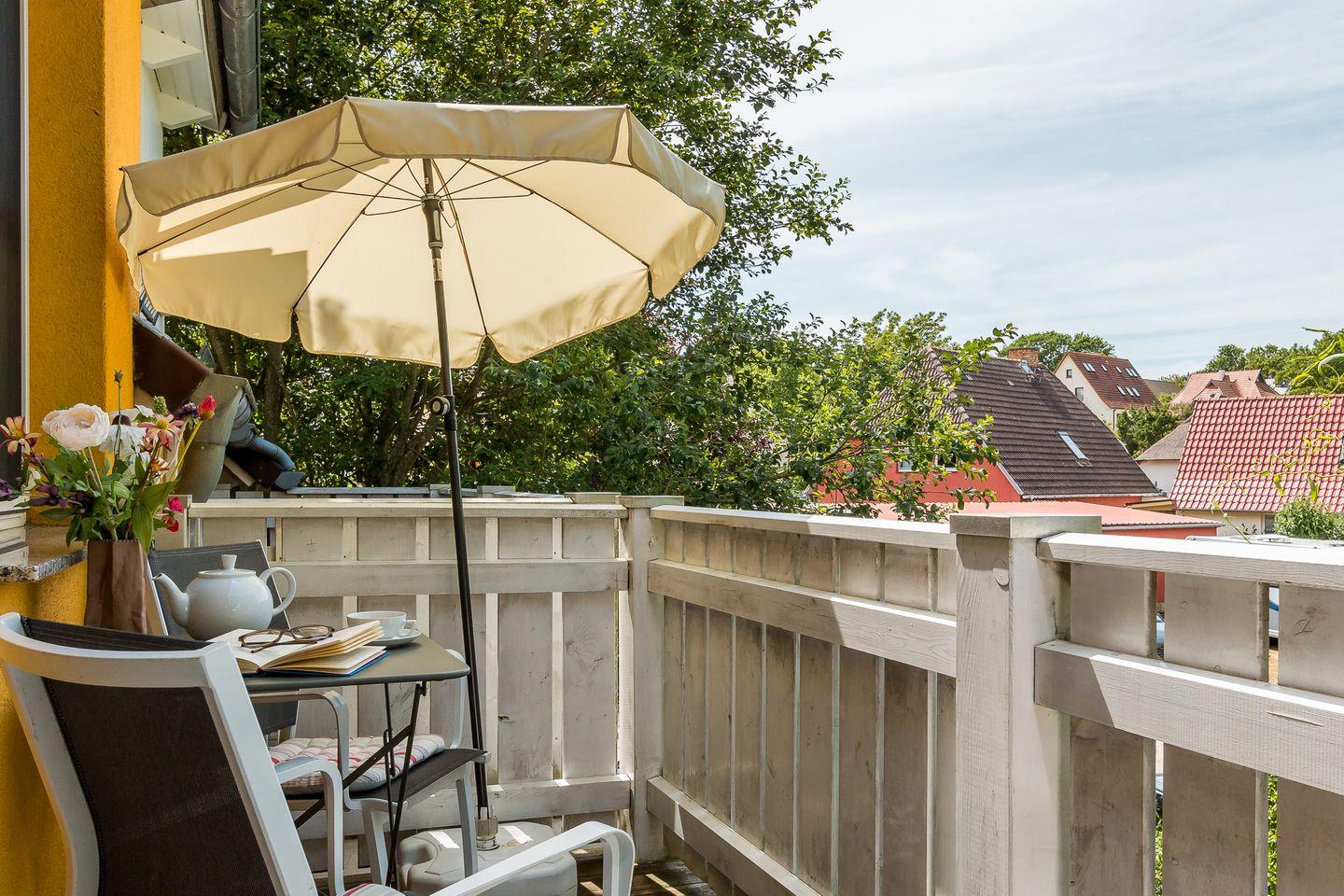 Zur Ferienwohnung gehört ein Balkon, von dem du den ganzen Nachmittag aus die Sonne genießen kannst. Hier lässt es sich herrlich entspannen, wenn du mal nicht am Strand spazieren oder liegen möchtest. Dir steht ein PKW-Stellplatz zur Verfügung. Ein abschließbarer Fahrradschuppen mit Lademöglichkeit für E-Bikes macht den Urlaub perfekt.
