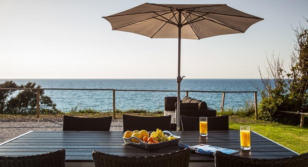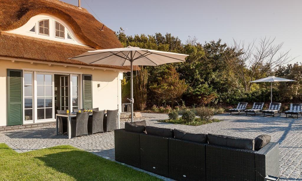 Der Außenbereich begeistert mit einem spektakulären Blick von der Steilküste auf die Ostsee. Dank der Terrasse mit hochwertiger Bestuhlung, Sonnenschirm und Sonnenliegen kannst du bei Wellenrauschen deinen Urlaub mit allen Sinnen genießen. Hier steht einem Frühstück am Meer, entspannten Stunden und einem traumhaften Abendausklang mit den für die Halbinsel so berühmten Sonnenuntergängen nichts mehr im Wege. Dir stehen zwei PKW-Stelllätze zur Verfügung.