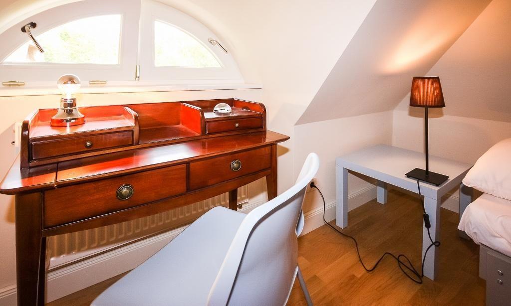 Im Erdgeschoss wirst du direkt in der lichtdurchfluteten Wohnküche empfangen. Der großzügige Essbereich am gemütlichen Kaminofen schließt sich unmittelbar an. Von hier aus gelangst du in den offenen und individuell gestalteten Wohnraum mit komfortabler Sitzecke. Weiterhin befindet sich in der unteren Etage ein Schlafzimmer mit einem Doppelbett und das angrenzende Bad mit Wanne/WC sowie ein Austritt in den Garten. Ein zweites Bad mit Dusche/WC und ein Hauswirtschaftsraum sorgen für weiteren Wohnkomfort. Vom Wohnbereich und von der Küche gelangst du auf die Terrasse und in den Garten. Das Obergeschoss beherbergt drei weitere Schlafzimmer - ein Schlafzimmer mit einem Doppelbett (180 cm) und zwei Schlafzimmer, die jeweils mit einem Einzelbett ausgestattet sind.