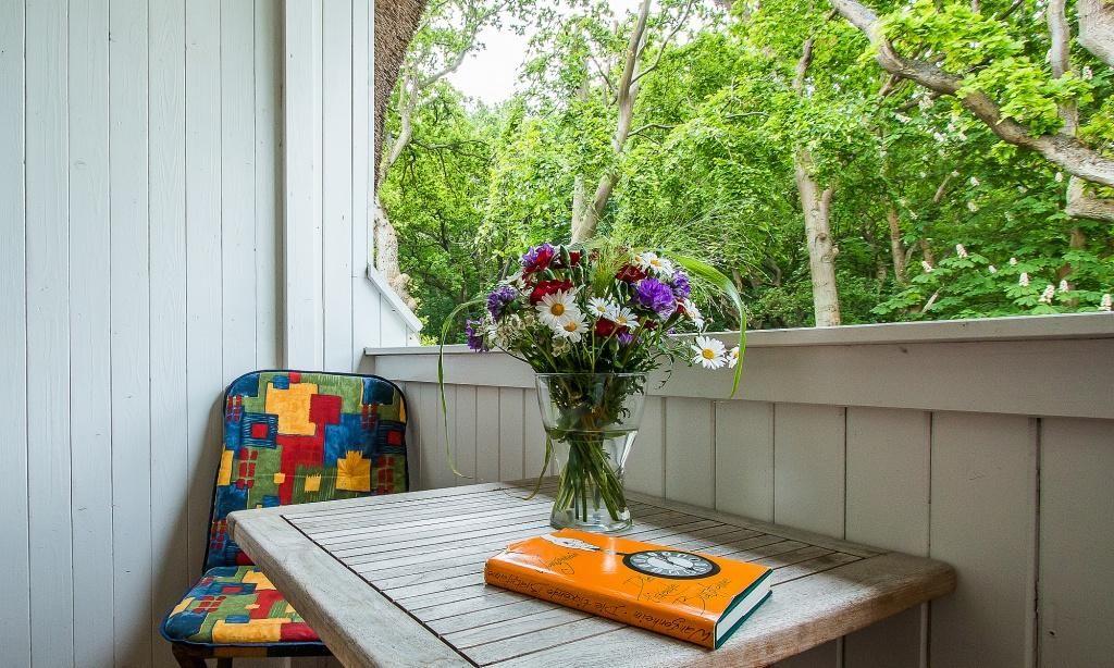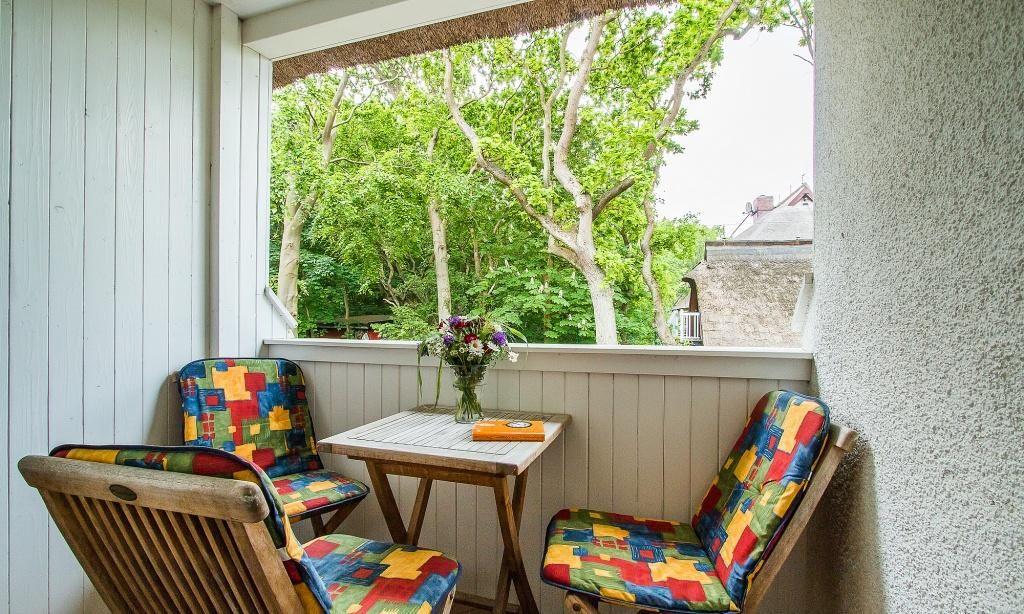 Zur Ferienwohnung gehört ein kleiner Balkon und der PKW-Stellplatz Nr. 4.
