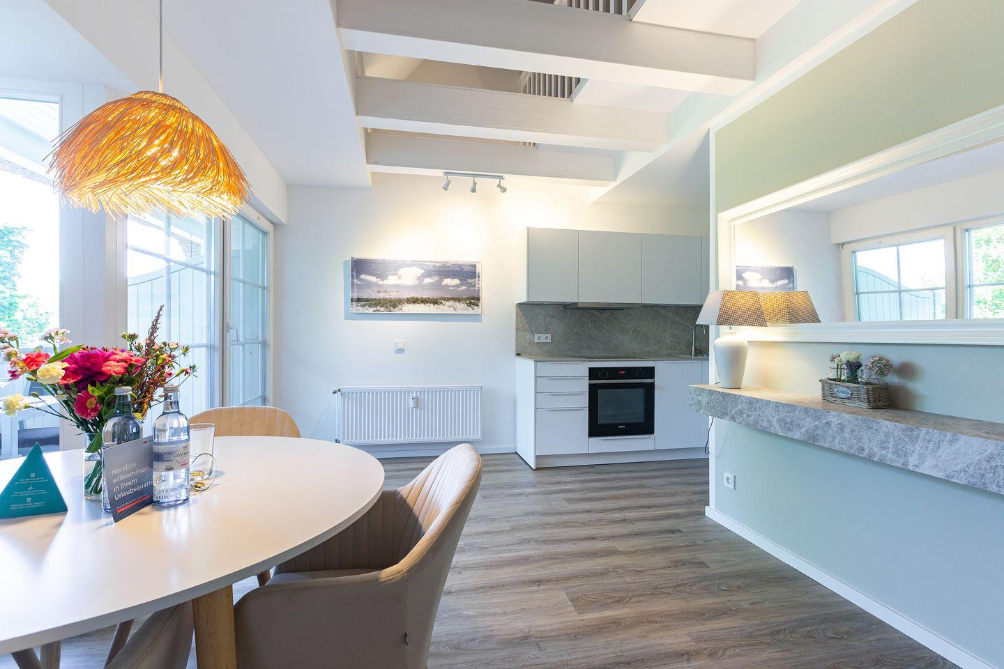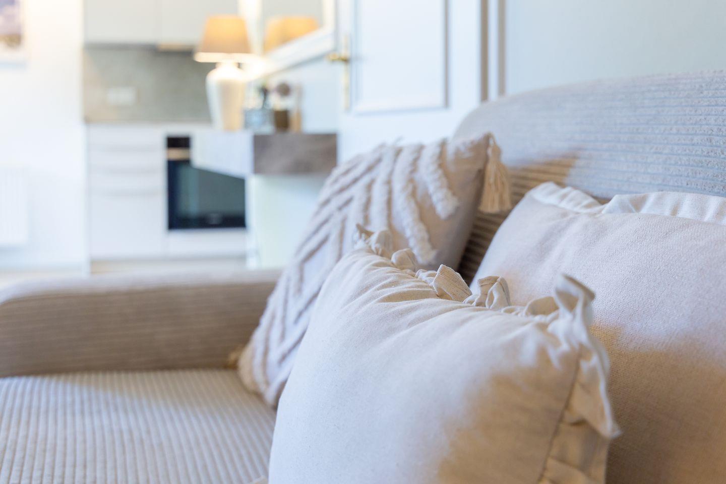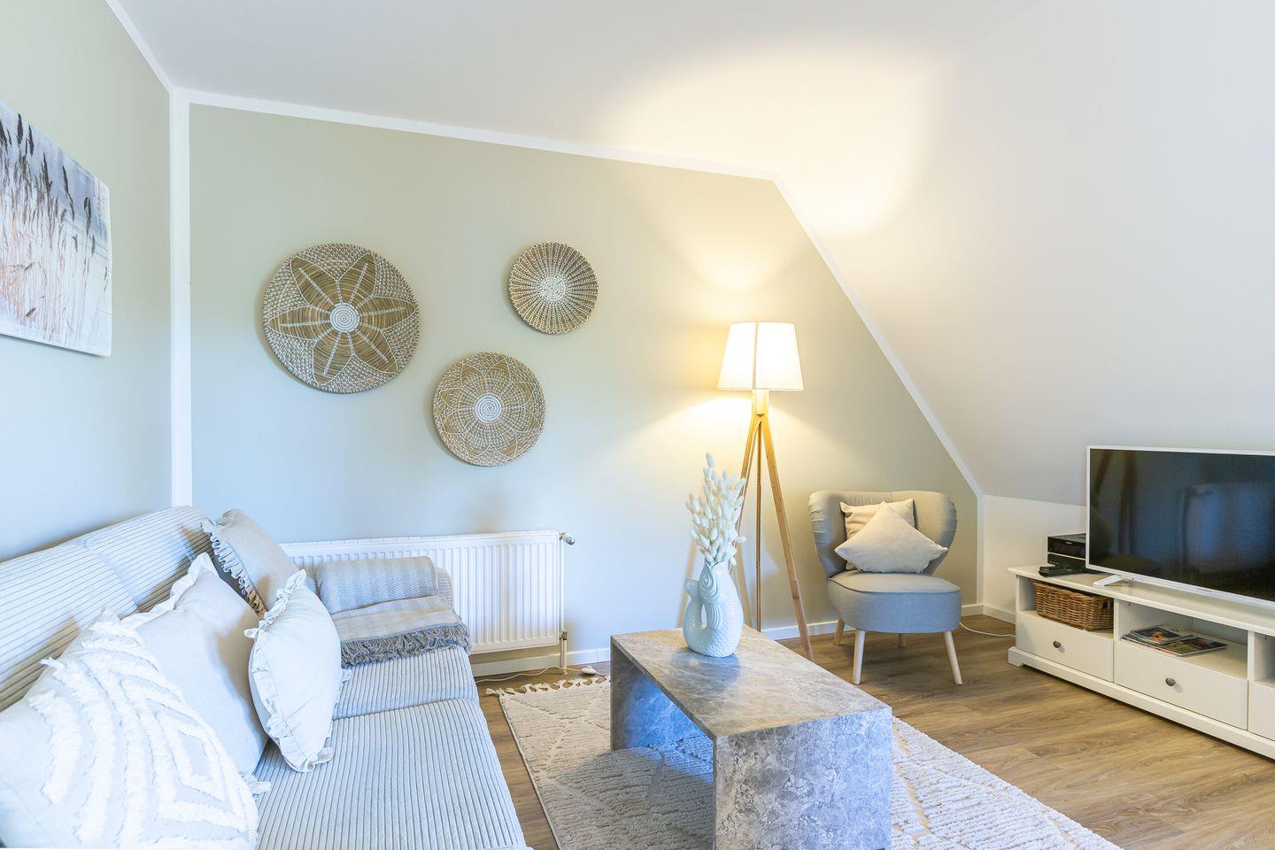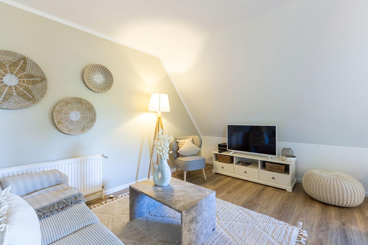 Frisch renoviert und einfach zum Verlieben. In 2025 wurde die Ferienwohnung mit viel Liebe zum Detail neu gestaltet und das sieht man in jedem Winkel. Helle Sand- und Beigetöne treffen auf strahlendes Weiß und holen das Gefühl von Strand, Sonne und Leichtigkeit direkt in dein Urlaubsdomizil. Moderne Möbel aus dem Trendmaterial Stein setzen stilvolle Akzente, ohne dabei an Gemütlichkeit zu verlieren. Die neue Küche lässt keine Wünsche offen, das Bad begeistert mit besonderem Design, und im neuen Boxspringbett schläft es sich wie auf Wolken.