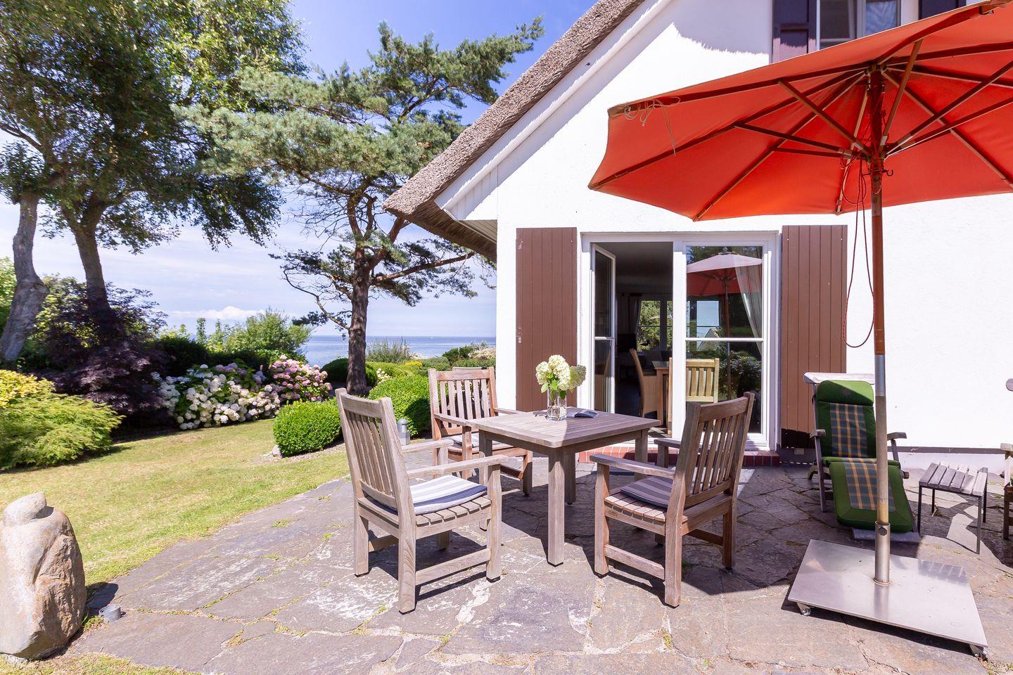 Das traumhafte Grundstück verfügt über zwei Terrassen mit Nord-West-Ausrichtung und mit Süd-West-Ausrichtung. Hier kannst du dich treiben lassen, entspannen und den Abend mit einem einzigartigen Blick auf die Ostsee ausklingen lassen. Dir steht 1 PKW-Stellplatz zur Verfügung.