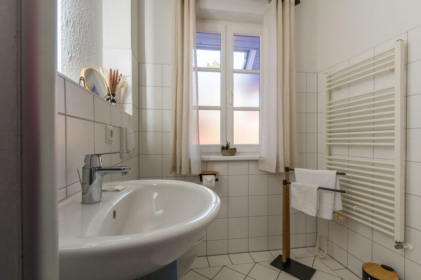 Die Wohnung befindet sich im Erdgeschoss, es sind allerdings drei Stufen nötig, um in die Wohnung zu gelangen.