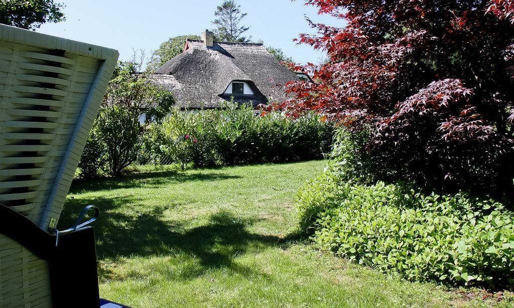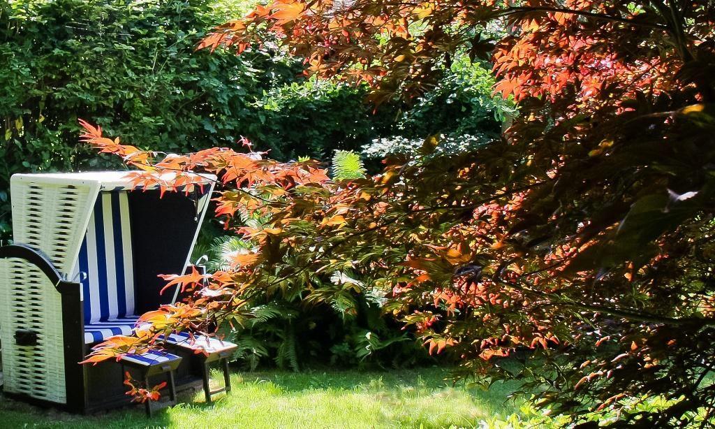 Im Garten erwartet dich eine großzügige, umlaufende Steinterrasse. Zum Relaxen laden auch der hauseigene Strandkorb oder die Sonnenliegen ein. Auf einem großzügigen und liebevoll angelegten Naturgrundstück ist dir ein erholsamer Aufenthalt garantiert. Dir steht ein PKW-Stellplatz zur Verfügung.
