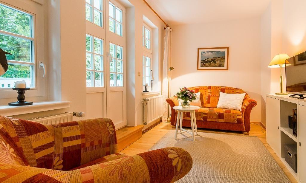 Die Villa Sonnenfrieden liegt am Ortsrand von Ahrenshoop und beindruckt seine Gäste mit seinem parkähnlichen Garten, der unmittelbar an das Naturschutzgebiet Ahrenshooper Holz grenzt. Dieses Domizil eignet sich hervorragend für ausgedehnte Spaziergänge oder eine Fahrradtour. Die Entfernung zum weitläufigen Ostseestrand beträgt nur etwa fünfzig Meter.