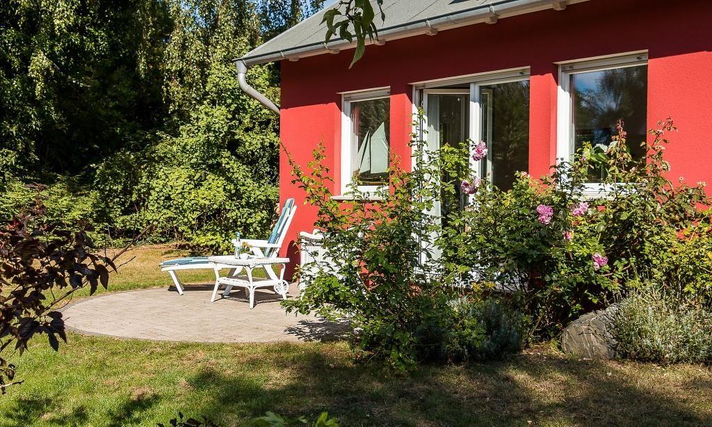 Auf der Terrasse in Südlage stehen Terrassenmöbel und ein Strandkorb bereit, damit du nach einem erlebnisreichen Tag entspannt den Tag Revue passieren lassen kannst. 1 PKW Stellplatz befindet sich direkt vor dem Häuschen.
