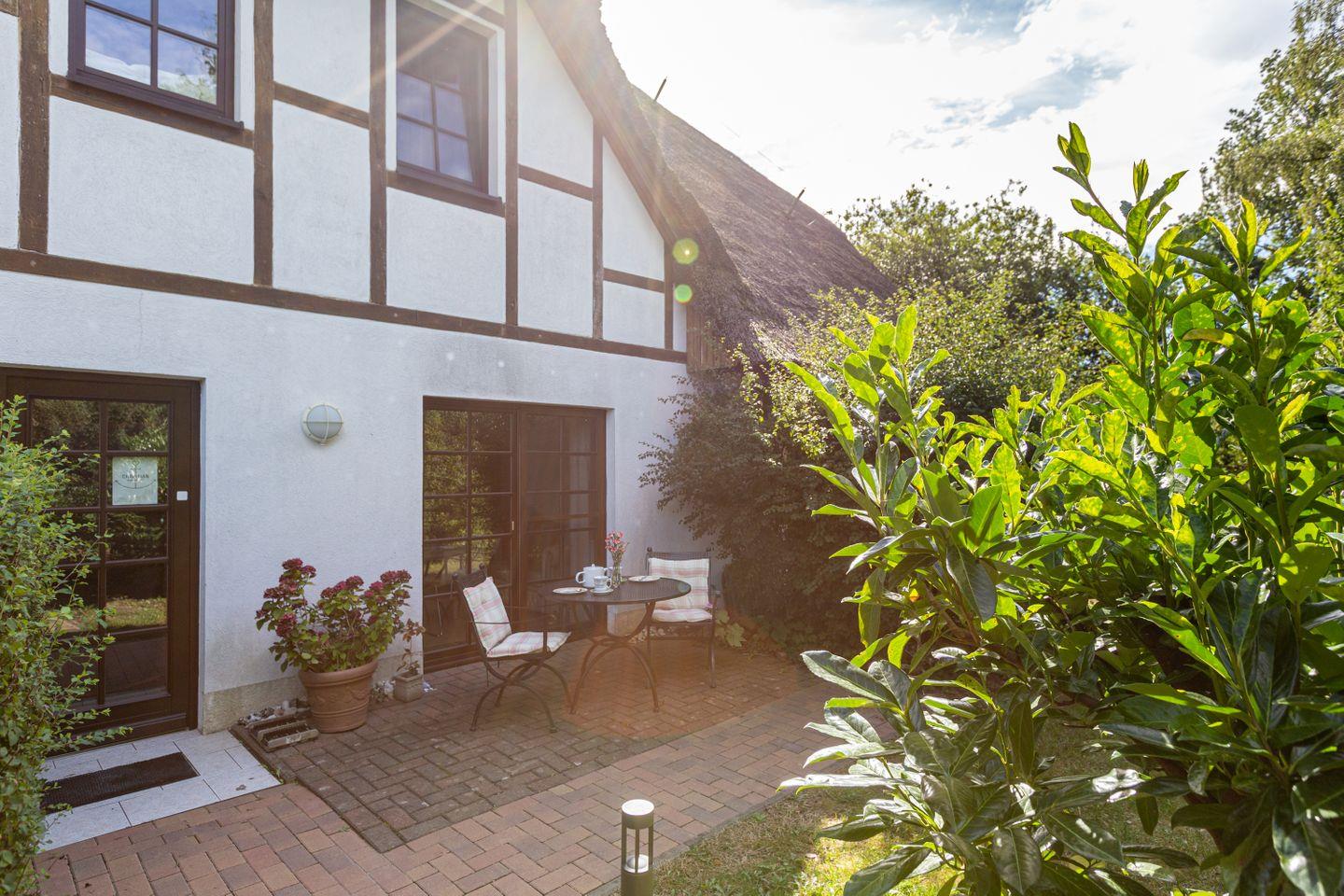 Zur Ferienwohnung gehört eine kleine Terrasse, auf der du bei einem guten Glas Wein den Tag ausklingen lassen kannst. Ein PKW-Stellplatz (gekennzeichnet mit "R") steht dir auf dem Grundstück zur Verfügung.