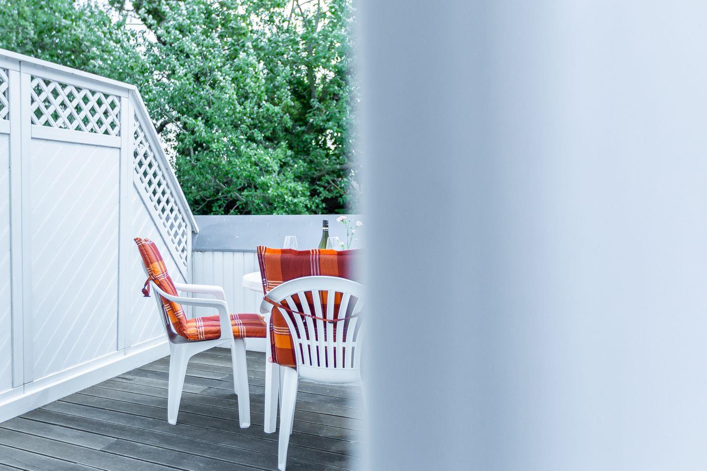 Ein schöner Balkon mit Ost-Ausrichtung gehört ebenfalls zur Ausstattung und begeistert mit einem tollen Blick ins Grüne. Hier kannst du bei Meeresrauschen und traumhaften Sonnenuntergängen deinen Urlaub genießen. Ein PKW-Stellplatz gehört zur Ferienwohnung dazu.