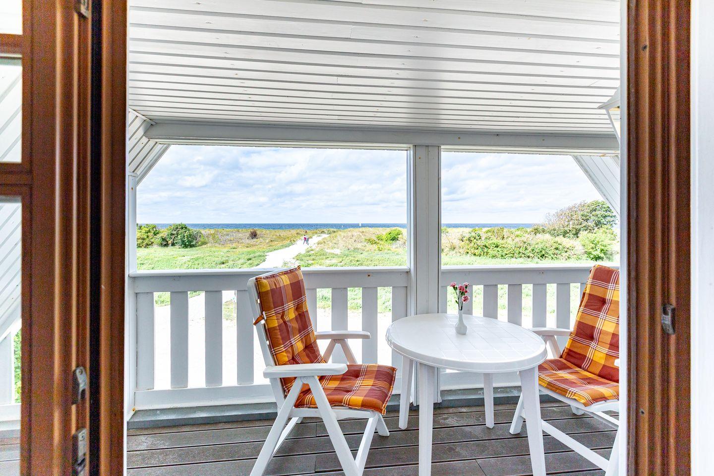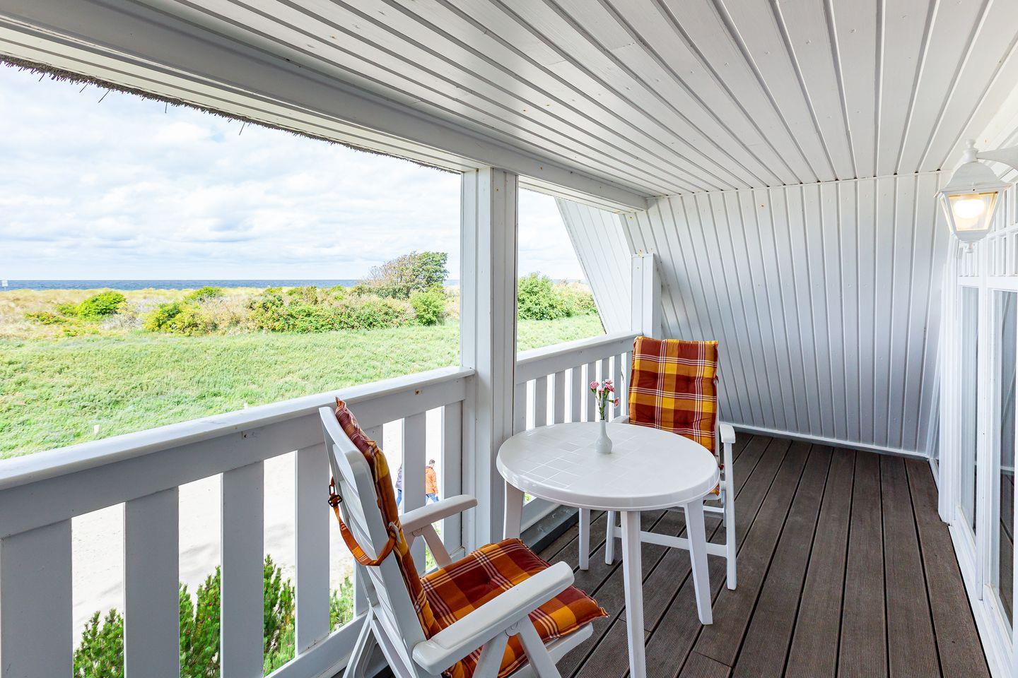 Ein großzügiger Balkon mit West-Ausrichtung gehört ebenfalls zur Ausstattung und begeistert mit einem wunderschönen Meerblick. Hier kannst du bei Meeresrauschen und traumhaften Sonnenuntergängen deinen Urlaub genießen. Ein PKW-Stellplatz gehört zur Ferienwohnung dazu.