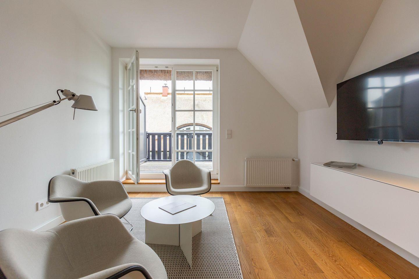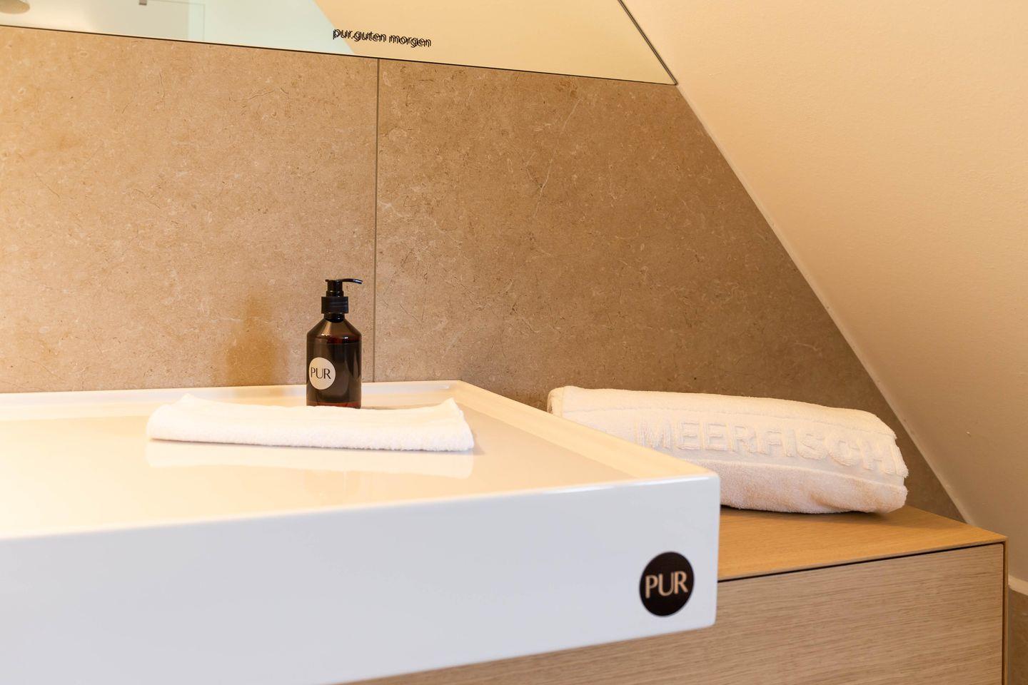 Die traumhafte Doppelhaushälfte unter Reet wurde in 2021 aufwendig saniert. Während die Außenansicht für das Fischland charakteristisch maritim gehalten ist - folgt PUR A5 im Innenbereich dem modernen PUR-Stilkonzept mit klarem, puristischem und zeitlosem Design. Der offene und mit großen Fensterfronten ausgestattete Wohnraum ist Treffpunkt des Hauses. Ob Küche, Esstisch oder Sofalounge – jeder Bereich wurde so gestaltet, dass das gemeinsame Erleben und Genießen im Mittelpunkt steht. Für die nächtliche Erholung sorgen gleich vier Schlafzimmer im Haus. Mit komfortablen Betten und ausgesuchten Designklassikern wurden hier im wahrsten Sinne traumhafte Rückzugsorte geschaffen. Wohlfühlmomente bieten auch die zwei stylischen Badezimmer mit Rainshower-Dusche und Designer-Badelementen. Es ist eben das PUR-Gefühl, dass du in jeden Raum dieses besonderen Ferienhauses spürst und dass dir einen ästhetischen und anspruchsvollen Urlaub garantiert.