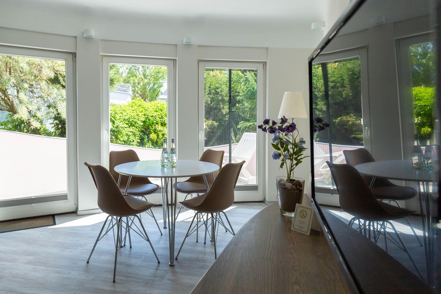 In den Häusern Muschel und Strandläufer gibt es noch 7 weitere Ferienwohnungen, die gern für Familien und Gruppen zusammen gebucht werden können. Des Weiteren befindet sich im Haupthaus ein Restaurant.