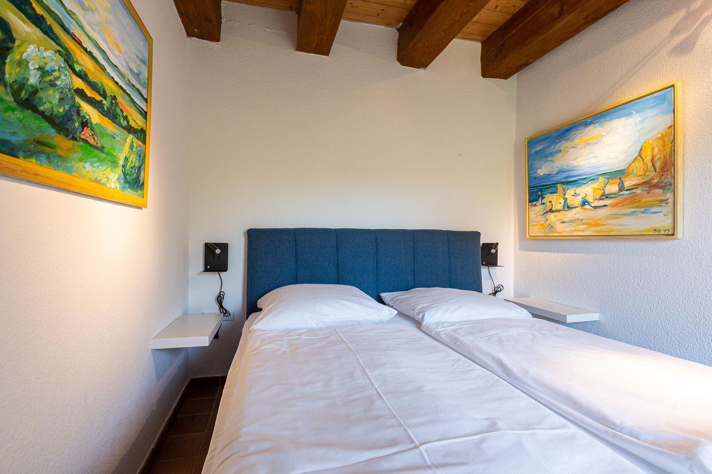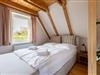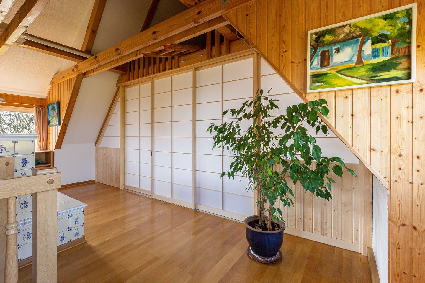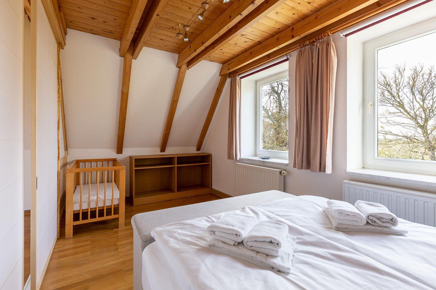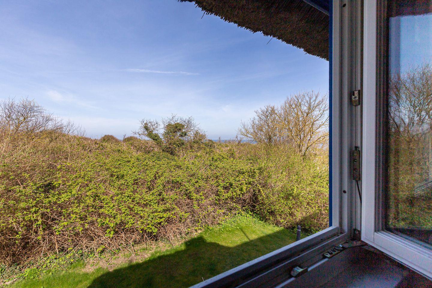 Durch die Darßer Tür und den kleinen Flur betritts du den großzügigen Küchenbereich. Es sind Besonderheiten wie die massiven Deckenbalken, der dekorative gekachelte Kamin und die sonnige Essecke, die den Raum so gemütlich machen. Dank der gut ausgestatteten Küche lässt es sich hier nach Herzenslust Kochen und Klönen. Von der Küche betritt man das Hauptschlafzimmer mit Doppelbett und großem Kleiderschrank. Der Blick aus dem Fenster zeigt die wundervolle Natur, hinter der sich die Ostsee versteckt. Hier kannst du garantiert gut schlafen, nicht zuletzt, weil das Rauschen des Meeres für die richtige Entspannung und innere Ruhe sorgt. Abgerundet wird das Erdgeschoss durch das Badezimmer, dass mit einer Dusche ausgestattet ist. Über eine Holztreppe gelangst du in den Wohnbereich des Hauses, der mit seinen Fachwerkbalken und dem maritimen Interieur viel Wärme und Gemütlichkeit ausstrahlt. Vom Sofa aus genießt du einen traumhaften Blick aufs Meer und die Reetdächer der alten Fischlandkaten. Ein Klavier zum Spielen steht ebenfalls bereit und bietet die passende Untermalung für spektakuläre Sonnenuntergänge, die du vom Wohnzimmer aus genießen kannst. Vom Wohnbereich durch eine japanische Shoji-Tür getrennt, befindet sich das zweite Schlafzimmer, ebenfalls mit einem Doppelbett und herrlichem Blick auf die weiten Wiesen.