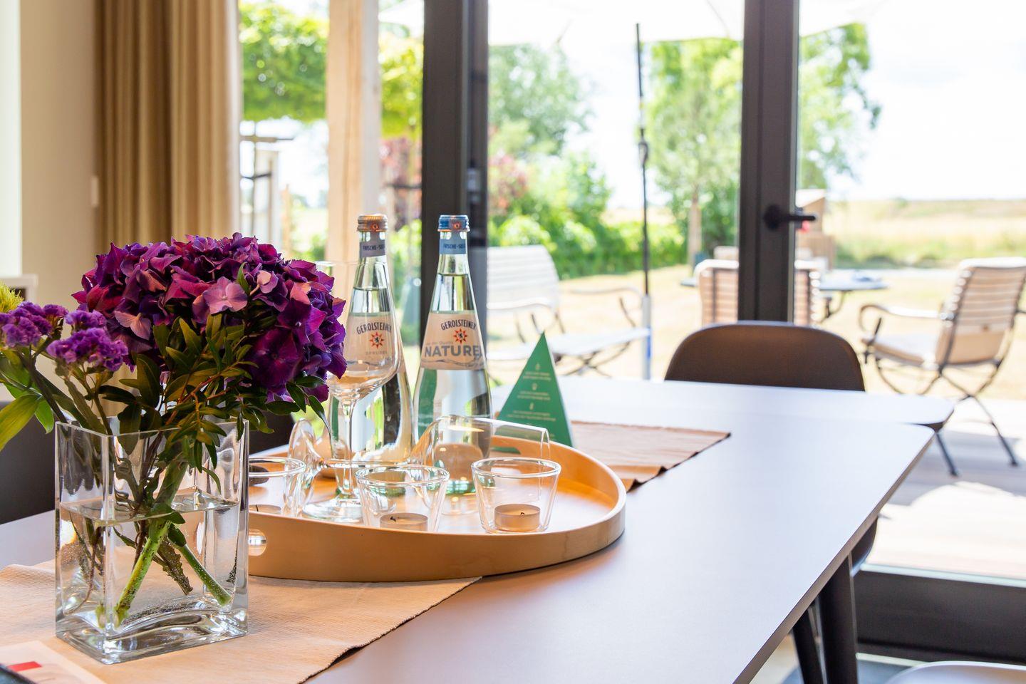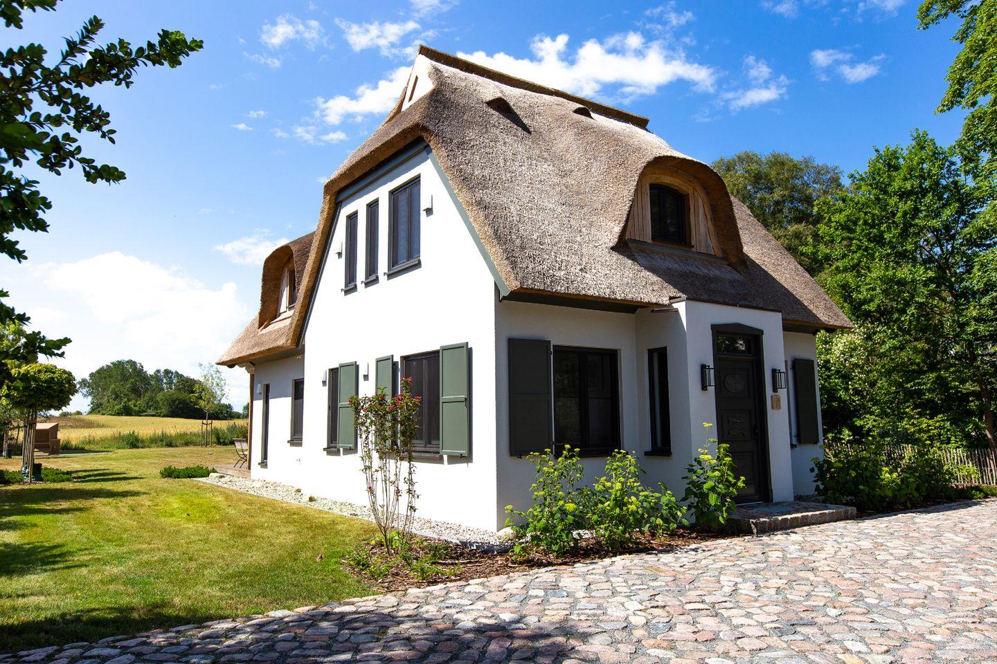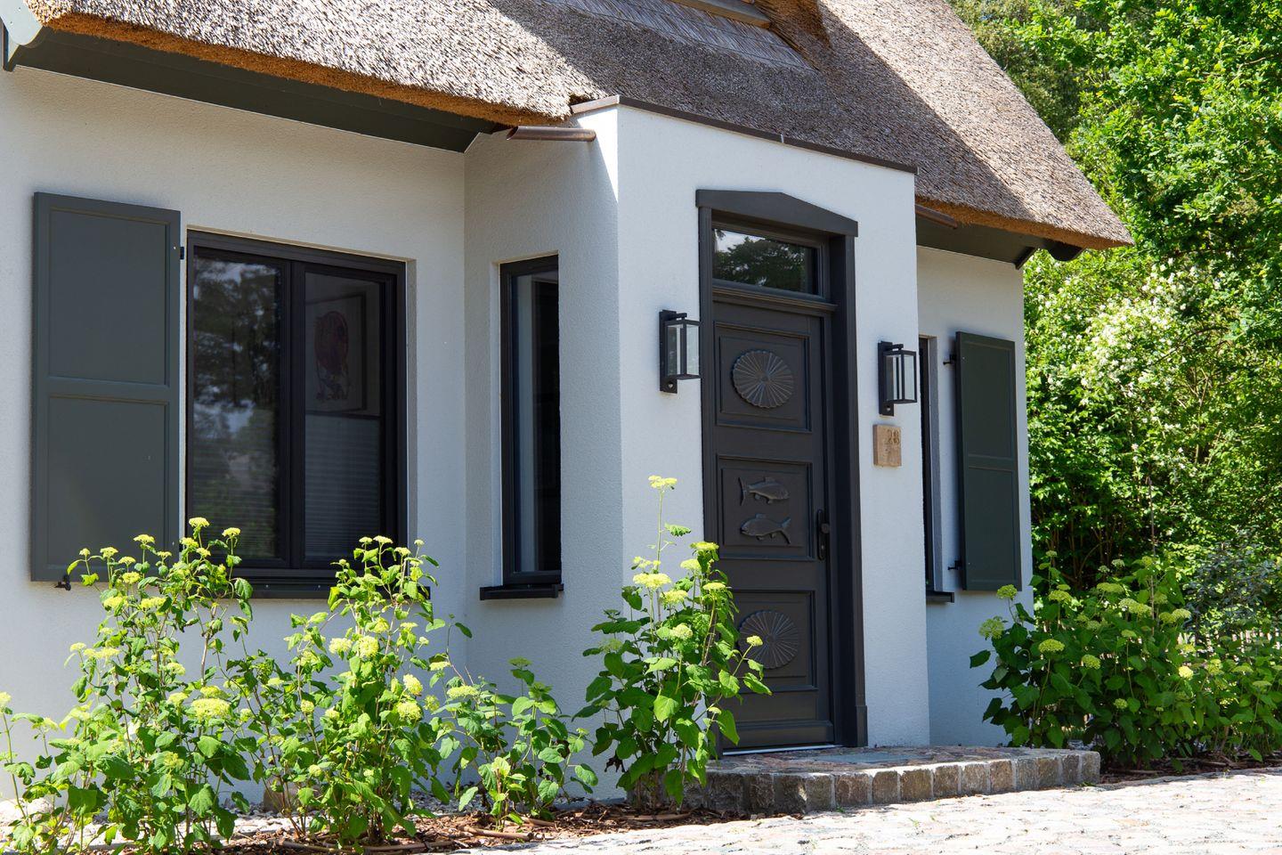 Mit der maritimen Haustür, dem heimeligen Gaubenfenster und dem fischlandtypischen Reetdach geht der Baustil von Seewärts eine harmonische Verbindung zur Nachbarschaft ein - auf den ersten Blick. Erst die Rückseite des Hauses verrät, dass es sich hier um ein außergewöhnliches Designhaus handelt, das einen gelungenen Kontrast zwischen moderner und halbinseltypischer Architektur geschaffen hat.