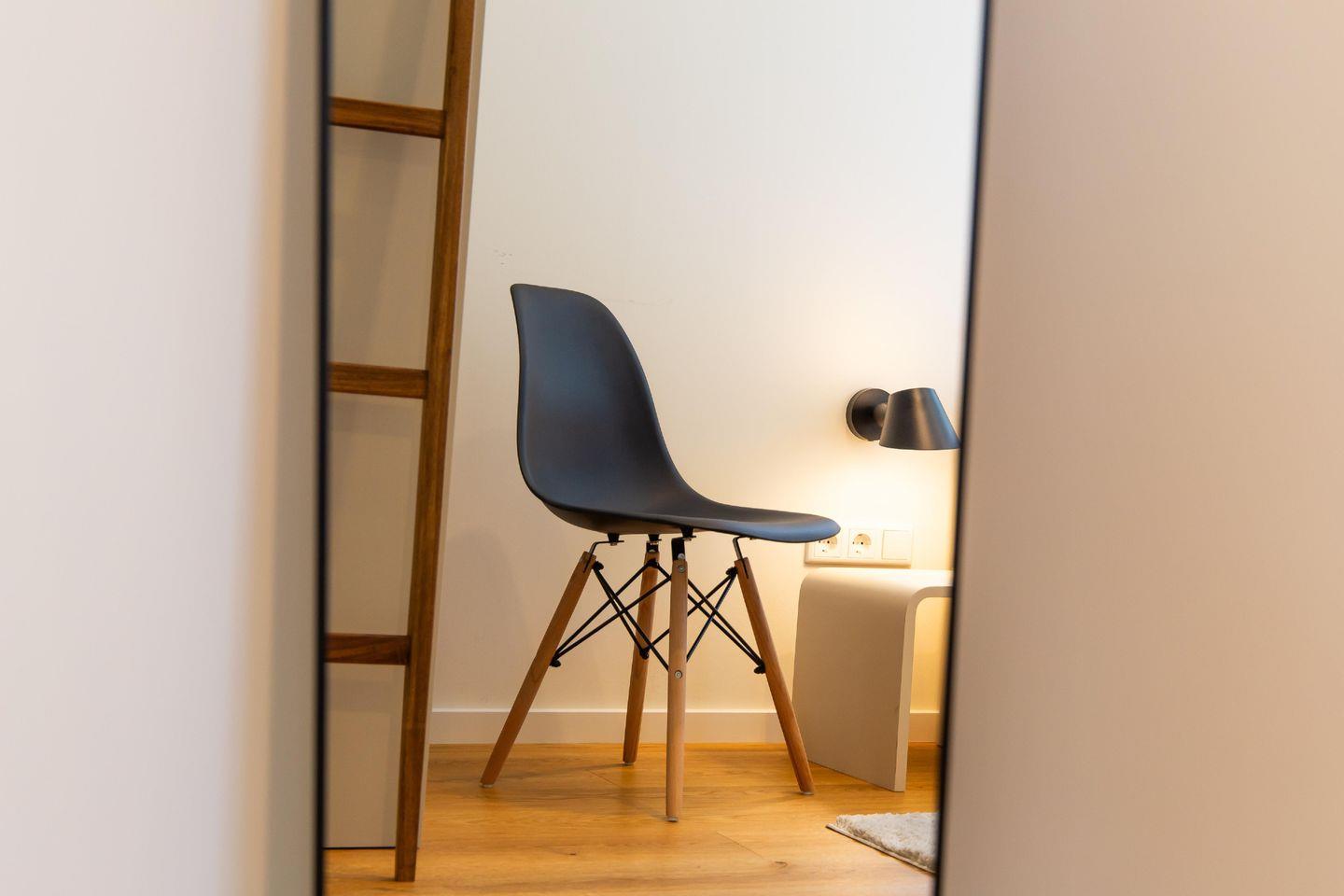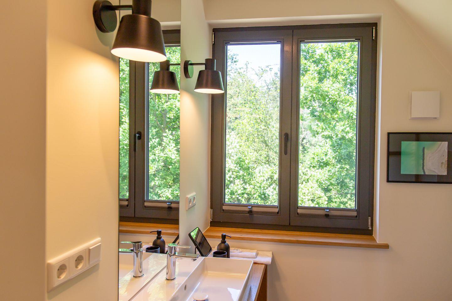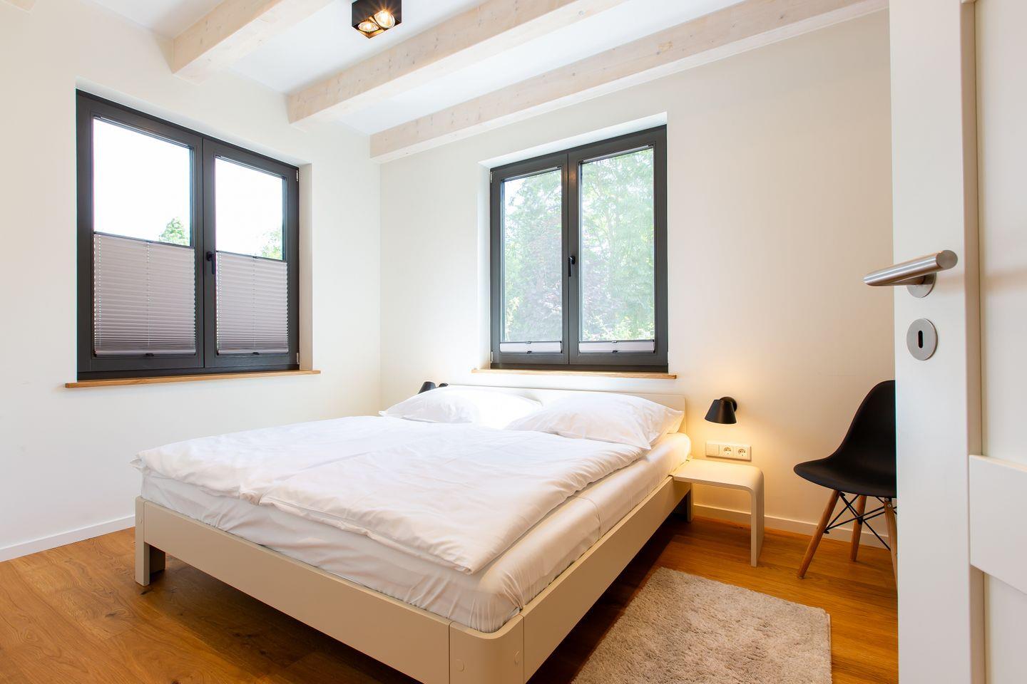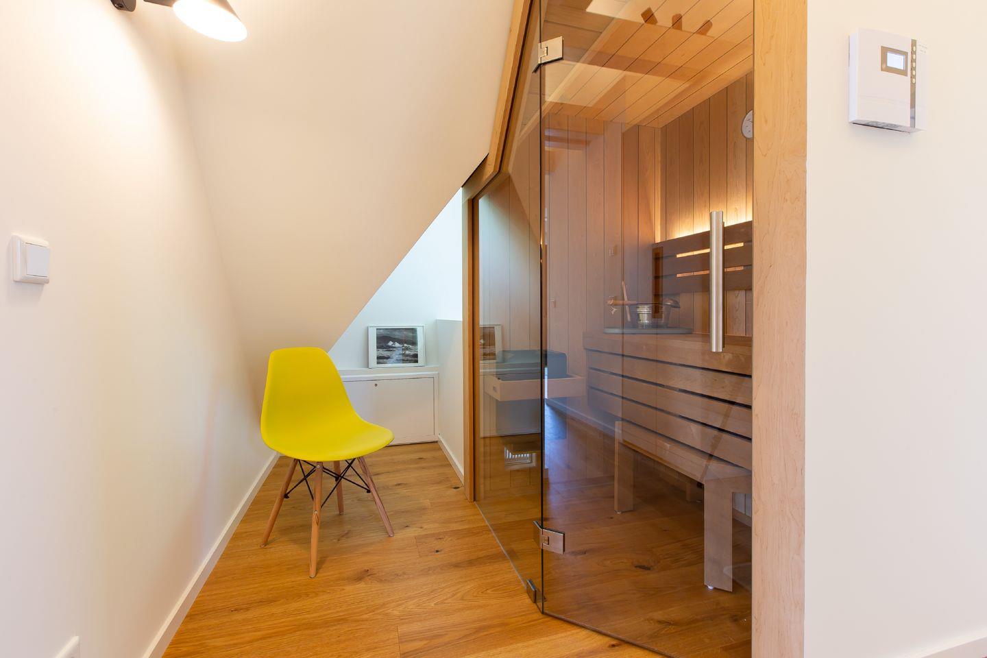 Über die Treppe gelangt man in die zweite Wohnebene des Hauses. Hier befindet sich ebenfalls ein Wohnraum mit Sofalandschaft und TV. Zwei weitere Schlafzimmer – eins mit Bad en Suite - sorgen für ausreichend Privatsphäre und wundervoll eingerichtete Rückzugsorte. Ein besonderes Highlight ist die Sauna, in der man nach einem langen Winterspaziergang entspannen und die Seele baumeln lassen kann. Abgerundet wird der Wohnkomfort mit einem dritten Badezimmer und einem Balkon, der einen herrlichen Blick über die Reetdächer der Nachbarhäuser und Felder bietet.