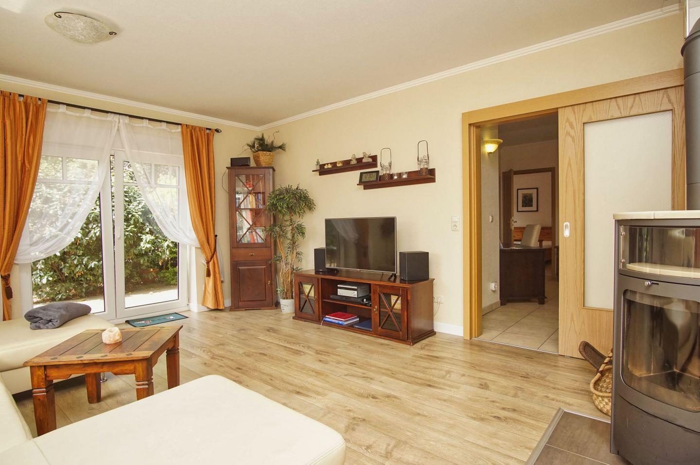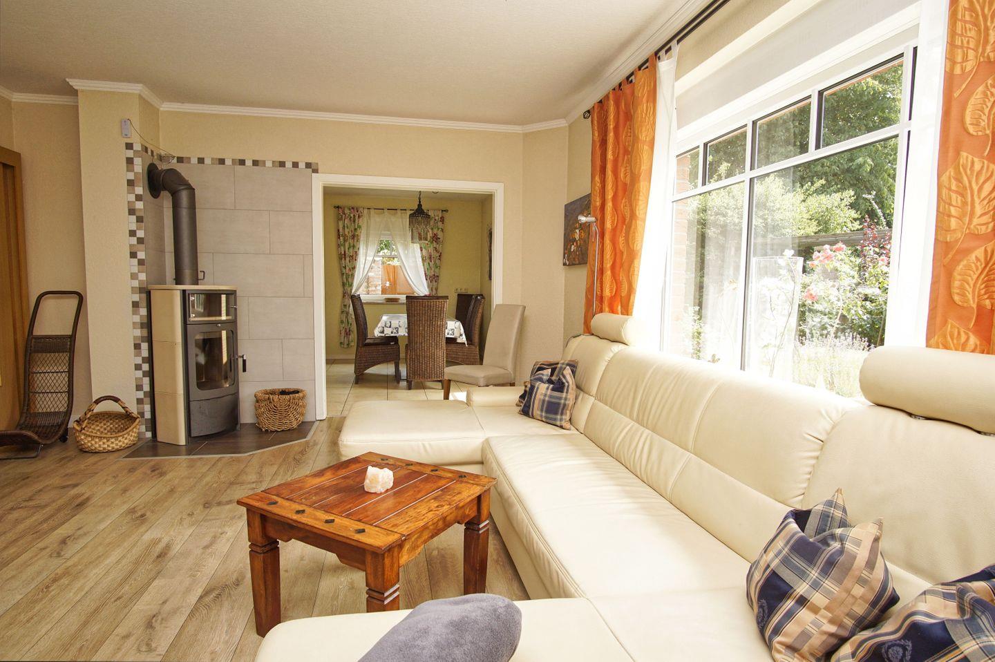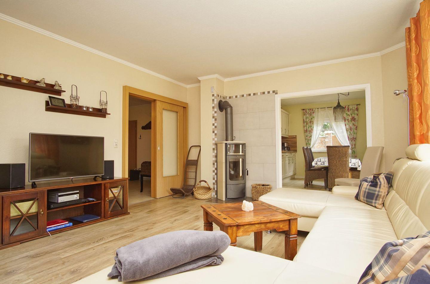 WOHNEN // Wohnraum mit Essbereich, Sitzgarnitur mit bequemer Couch, Flachbild-TV (Smart-TV), Internet (W-LAN), Kaminofen ++