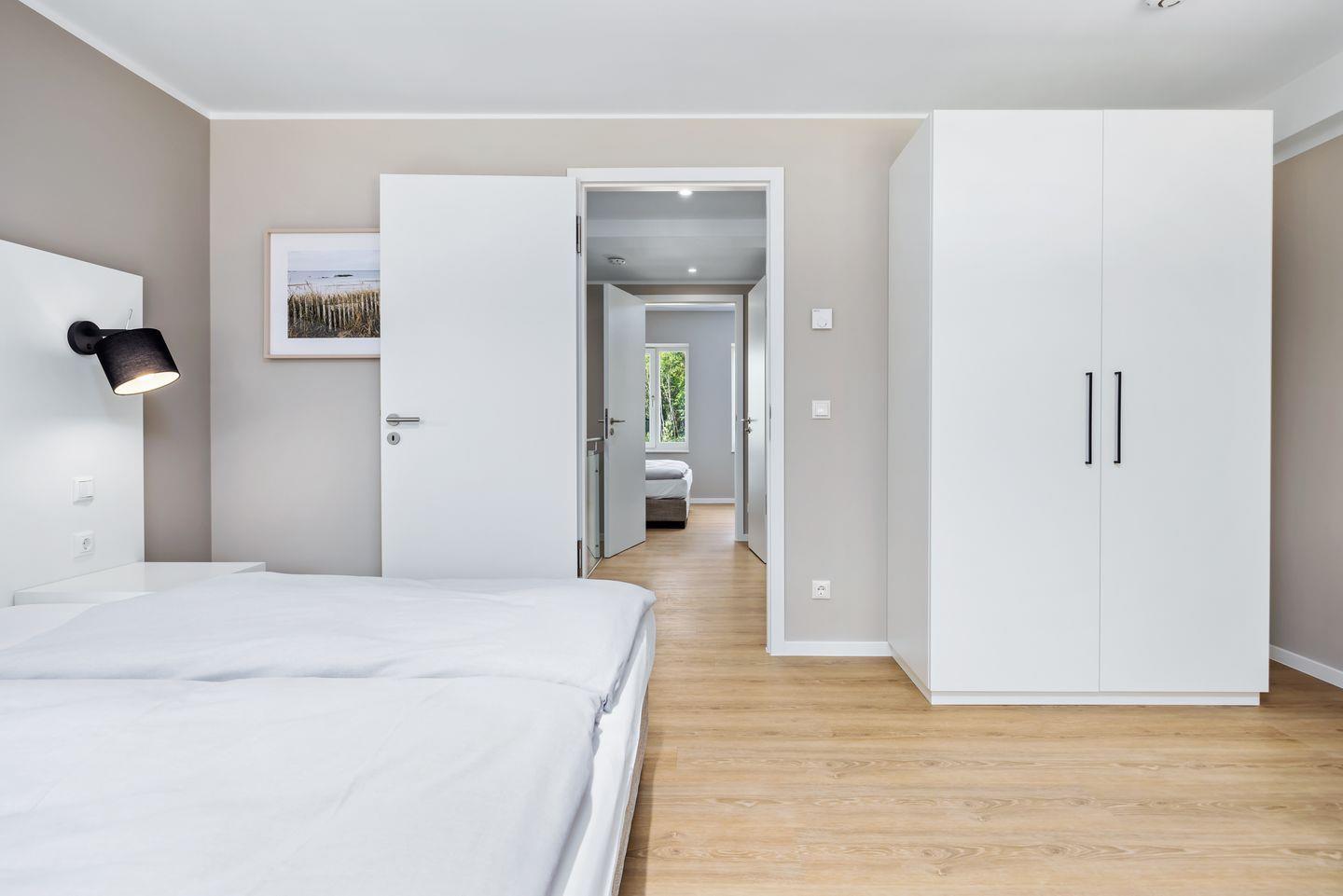 Beide Schlafzimmer beinhalten jeweils ein modernes Boxspring-Doppelbett (1,80 x 2,00 m bzw. 1,60 x 2,00 m) und Kleiderschrank. Das größere der beiden Schlafzimmer besitzt überdies einen eigenen SMART-TV (43 Zoll).