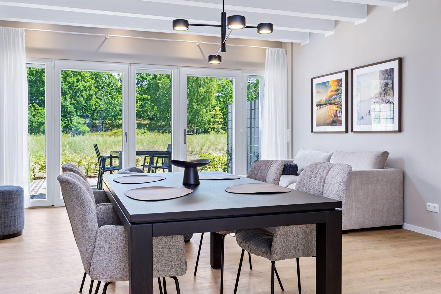 Das lichtdurchflutete Apartment befindet sich in nordöstlicher Lage und verläuft über zwei Wohnebenen, die im Erdgeschoss und im ersten Obergeschoss des Hauses Dänholm liegen. Die Ostsee liegt vor der Haustür - in nur 130 Metern erreicht ihr den feinsandigen, kilometerlangen Südstrand. In der Umgebung warten zahlreiche Ausflugsmöglichkeiten auf euren Besuch: Das Dokumentationszentrum Prora, das Prora-Zentrum, das Oldtimer-Museum Rügen, das NVA-Museum Rügen, die Galileo Wissenswelt Rügen, der Kletterwald Binz-Prora und das Naturerbe Zentrum Rügen mit dem Baumwipfel-Pfad sowie das beliebte Karls Erlebnis-Dorf in Zirkow. Fußläufig befinden sich zwei Bäckereien, einige Bistros sowie ein Restaurant, kleine Mode- und Souvenirgeschäfte als auch ein Fahrradverleih. Eine Segelschule befindet sich in ca. 3 km Entfernung. Im nahe gelegenen Dormero Strandhotel (ca. 800 m) könnt ihr Tagestickets erwerben und den Pool, die Sauna und den Fitnessbereich nach Herzenslust genießen.
