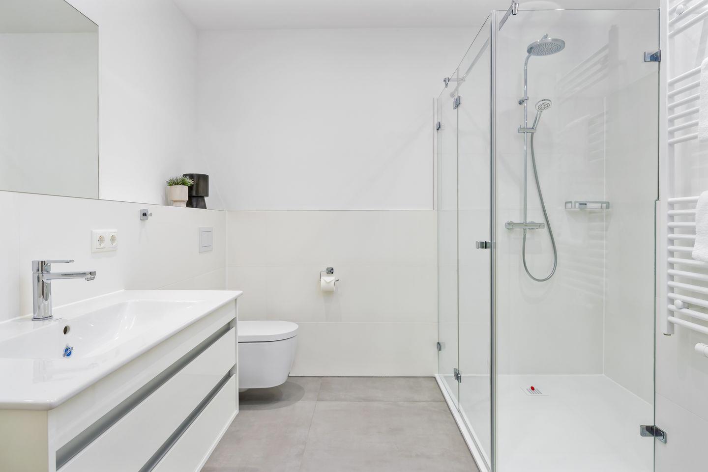 Das größte Schlafzimmer beinhaltet ein modernes Boxspring-Doppelbett (1,80 x 2,00 m), einen eigenen SMART-TV (43 Zoll), einen Kleiderschrank und bietet den Luxus eines ganz privaten, angeschlossen Badezimmers! Die zwei weiteren Schlafzimmer verfügen über Boxspringbetten (Doppelbett mit den Maßen 1,60 x 2,00 m bzw. ein Einzelbett mit den Maßen 0,90 x 2,00 m). In den stilvollen Badezimmern befinden sich Fußbodenheizung, Handtuchwärmer, eine ebenerdige Regendusche, WC, Waschtisch und Föhn.
