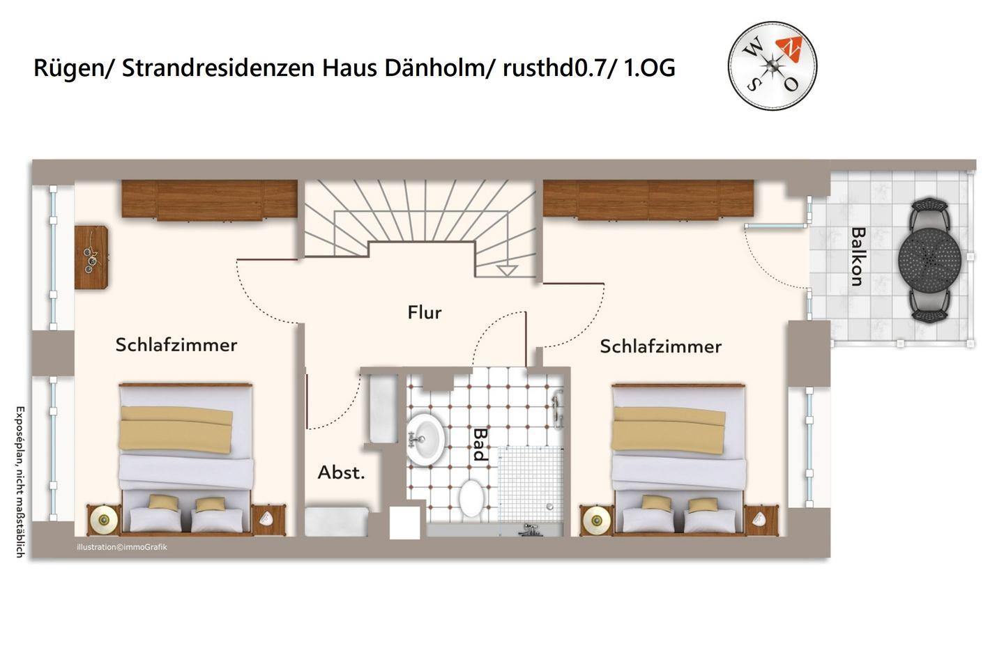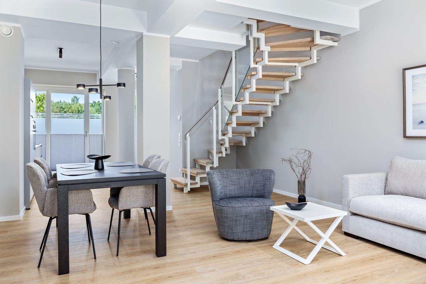Das lichtdurchflutete Apartment befindet sich in nordöstlicher Lage und verläuft über zwei Wohnebenen, die im Erdgeschoss und im ersten Obergeschoss des Hauses Dänholm liegen. Die Ostsee liegt vor der Haustür - in nur 130 Metern erreicht ihr den feinsandigen, kilometerlangen Südstrand. In der Umgebung warten zahlreiche Ausflugsmöglichkeiten auf euren Besuch: Das Dokumentationszentrum Prora, das Prora-Zentrum, das Oldtimer-Museum Rügen, das NVA-Museum Rügen, die Galileo Wissenswelt Rügen, der Kletterwald Binz-Prora und das Naturerbe Zentrum Rügen mit dem Baumwipfel-Pfad sowie das beliebte Karls Erlebnis-Dorf in Zirkow. Fußläufig befinden sich zwei Bäckereien, einige Bistros sowie ein Restaurant, kleine Mode- und Souvenirgeschäfte als auch ein Fahrradverleih. Eine Segelschule befindet sich in ca. 3 km Entfernung. Im nahe gelegenen Dormero Strandhotel (ca. 800 m) könnt ihr Tagestickets erwerben und den Pool, die Sauna und den Fitnessbereich nach Herzenslust genießen.