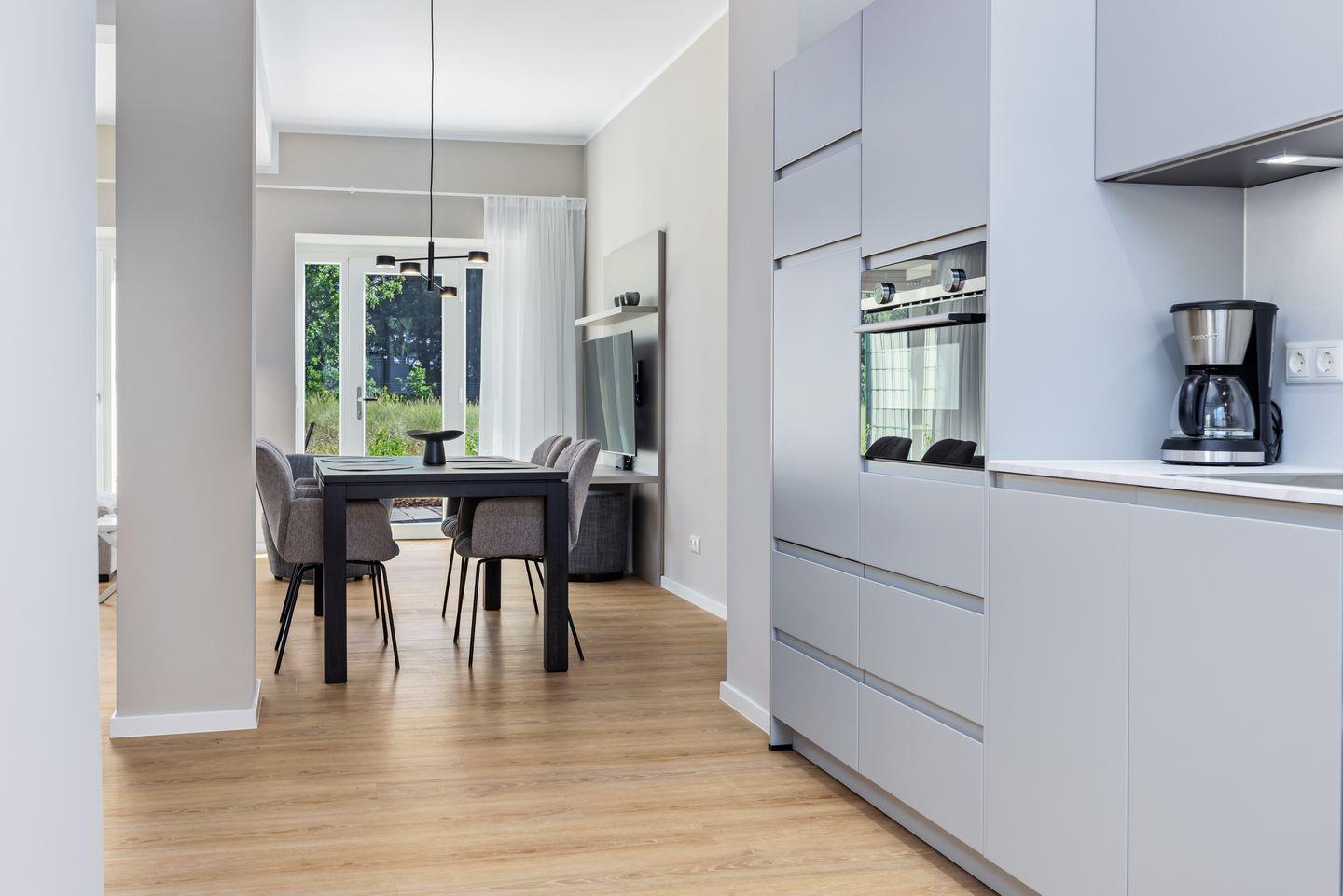 Das geschmackvoll eingerichtete Nichtraucher-Apartment verfügt über Fußbodenheizung, z.T. bodentiefe Fenster, kostenfreies WLAN und eine voll ausgestattete offene Küche mit Geschirrspüler, Kühlschrank mit Gefrierfach, Filterkaffeemaschine, Mixer, Toaster, Wasserkocher, Mikrowelle mit Backofenfunktion und 4-Felder Induktionsherd von BORA sowie über einen behaglichen und großzügigen Wohn-Essbereich. Im Wohnbereich befindet sich ein großer SMART-TV (55 Zoll).