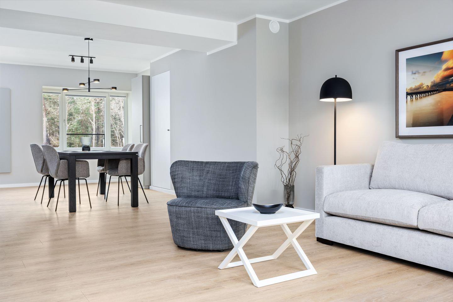 Das lichtdurchflutete Apartment befindet sich in nordöstlicher Lage und befindet sich im ersten Obergeschoss des Hauses Dänholm. Die Ostsee liegt vor der Haustür - in nur 130 Metern erreicht ihr den feinsandigen, kilometerlangen Südstrand. In der Umgebung warten zahlreiche Ausflugsmöglichkeiten auf euren Besuch: Das Dokumentationszentrum Prora, das Prora-Zentrum, das Oldtimer-Museum Rügen, das NVA-Museum Rügen, die Galileo Wissenswelt Rügen, der Kletterwald Binz-Prora und das Naturerbe Zentrum Rügen mit dem Baumwipfel-Pfad sowie das beliebte Karls Erlebnis-Dorf in Zirkow. Fußläufig befinden sich zwei Bäckereien, einige Bistros sowie ein Restaurant, kleine Mode- und Souvenirgeschäfte als auch ein Fahrradverleih. Eine Segelschule befindet sich in ca. 3 km Entfernung. Im nahe gelegenen Dormero Strandhotel (ca. 800 m) könnt ihr Tagestickets erwerben und den Pool, die Sauna und den Fitnessbereich nach Herzenslust genießen.