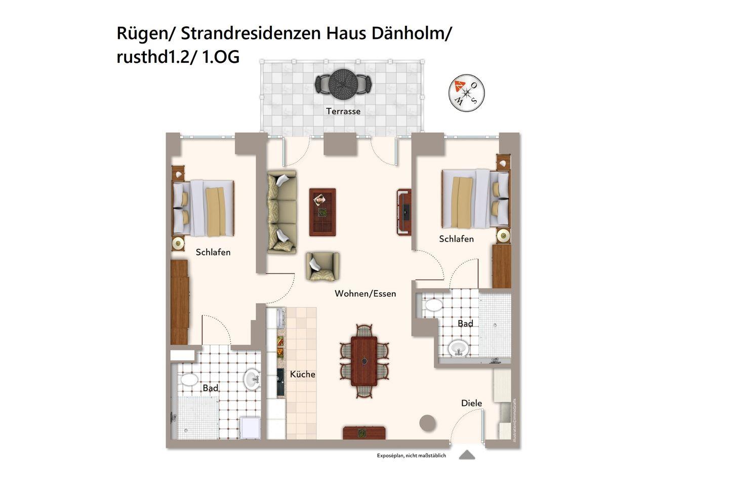Das 72 m² große 3-Zimmer-Apartment mit Balkon zur Meerseite ist für bis zu 4 Personen geeignet und liegt in erster Reihe zum Strand. Euer Urlaubsdomizil verfügt über zwei Badezimmer und zwei separate Schlafzimmer. Nur wenige Schritte und ihr befindet euch am kilometerlangen Sandstrand der Insel.