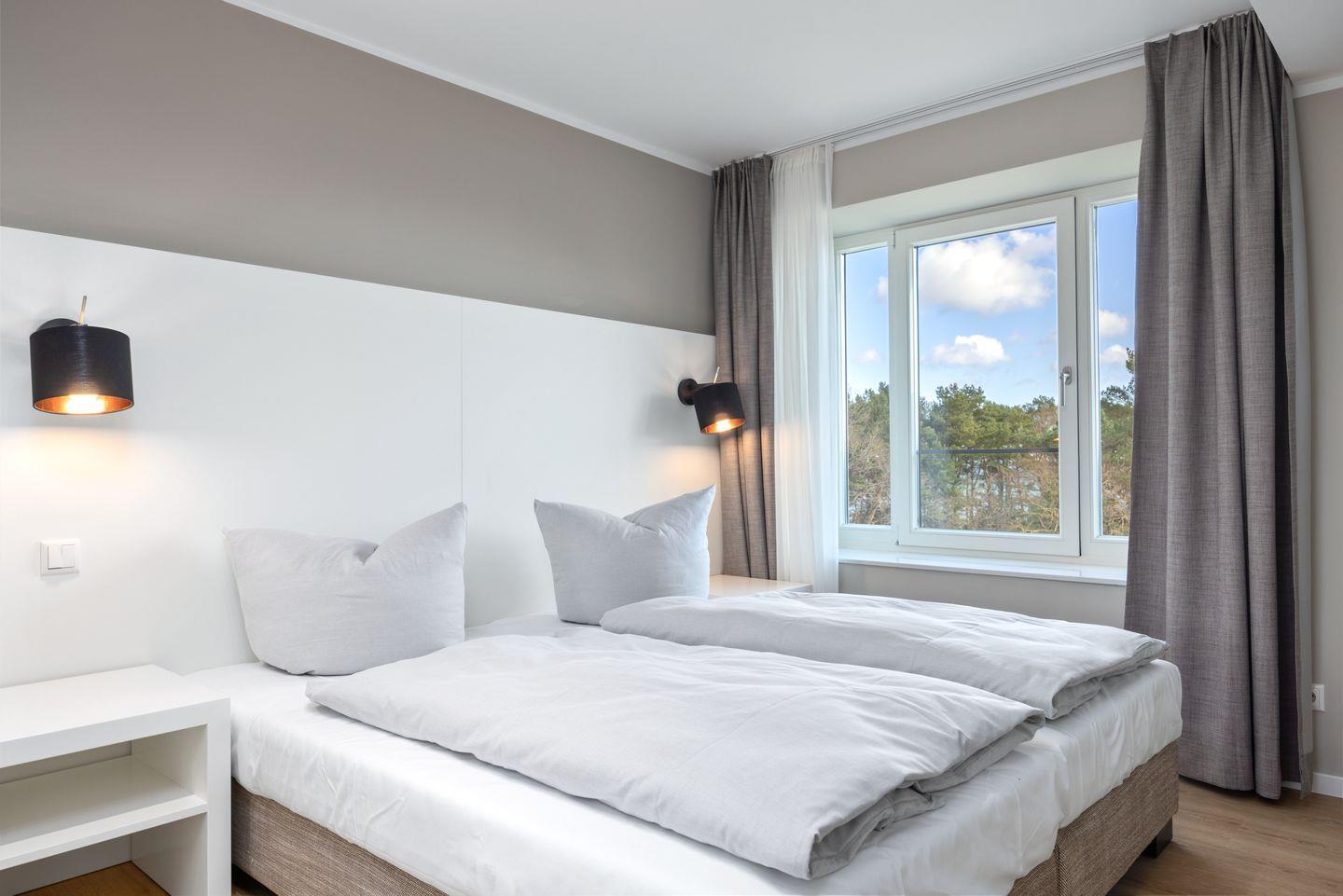 Das lichtdurchflutete Apartment befindet sich in nordöstlicher Lage und befindet sich im vierten Obergeschoss des Hauses Dänholm. Die Ostsee liegt vor der Haustür - in nur 130 Metern erreicht ihr den feinsandigen, kilometerlangen Südstrand. In der Umgebung warten zahlreiche Ausflugsmöglichkeiten auf euren Besuch: Das Dokumentationszentrum Prora, das Prora-Zentrum, das Oldtimer-Museum Rügen, das NVA-Museum Rügen, die Galileo Wissenswelt Rügen, der Kletterwald Binz-Prora und das Naturerbe Zentrum Rügen mit dem Baumwipfel-Pfad sowie das beliebte Karls Erlebnis-Dorf in Zirkow. Fußläufig befinden sich zwei Bäckereien, einige Bistros sowie ein Restaurant, kleine Mode- und Souvenirgeschäfte als auch ein Fahrradverleih. Eine Segelschule befindet sich in ca. 3 km Entfernung. Im nahe gelegenen Dormero Strandhotel (ca. 800 m) könnt ihr Tagestickets erwerben und den Pool, die Sauna und den Fitnessbereich nach Herzenslust genießen.