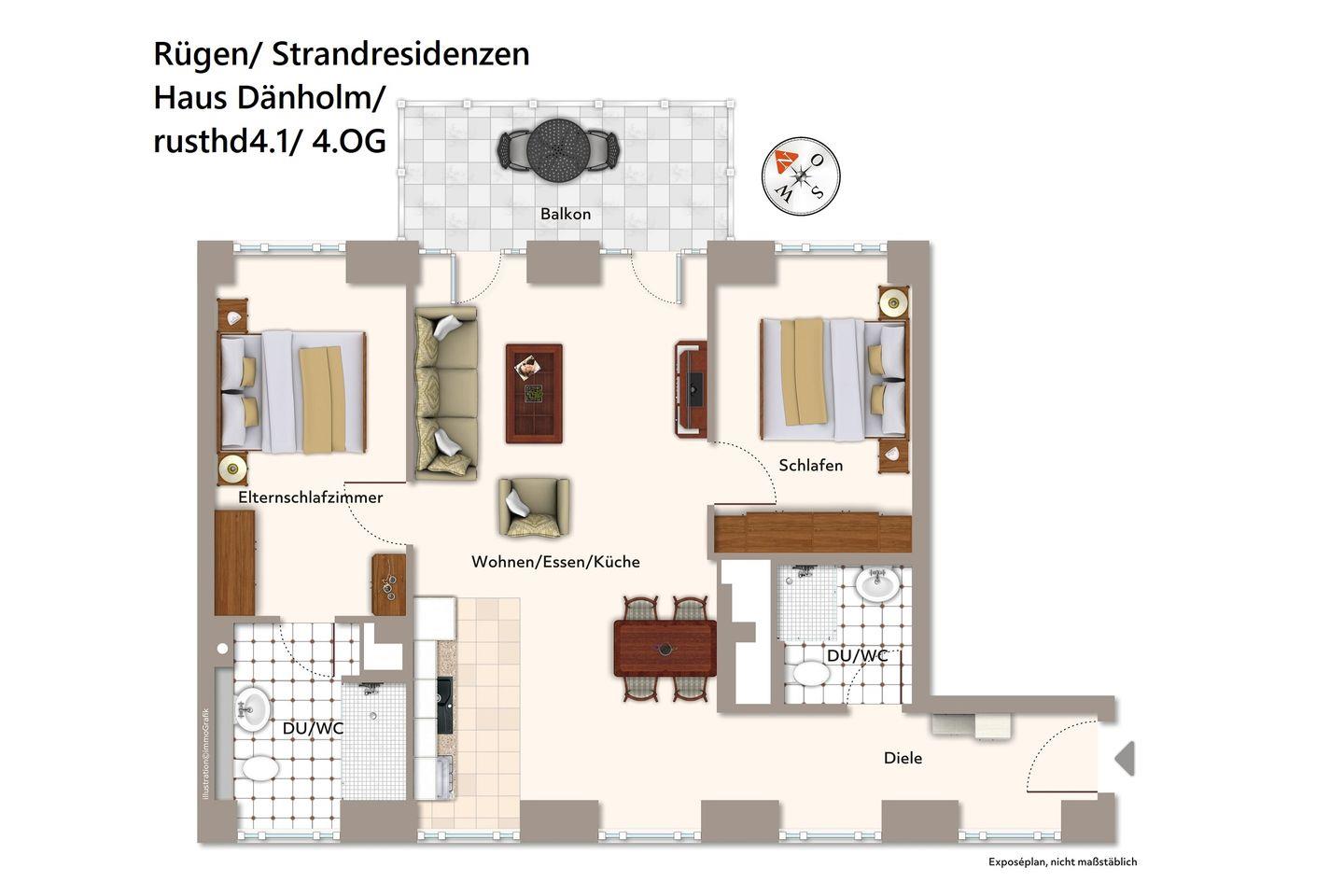 Das behagliche Apartment bietet euch einen Balkon zur Meerseite mit Blick zu den Dünen und dem Dünenwald bis zur Ostsee; hier lässt sich wunderbar entspannen und das maritime, wohltuende Klima der See genießen.