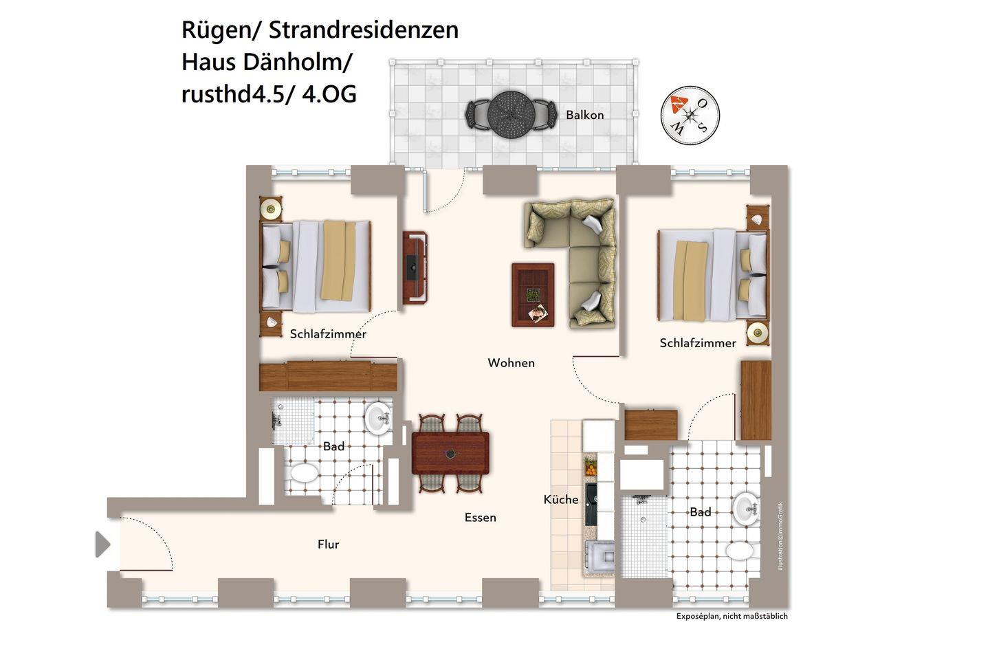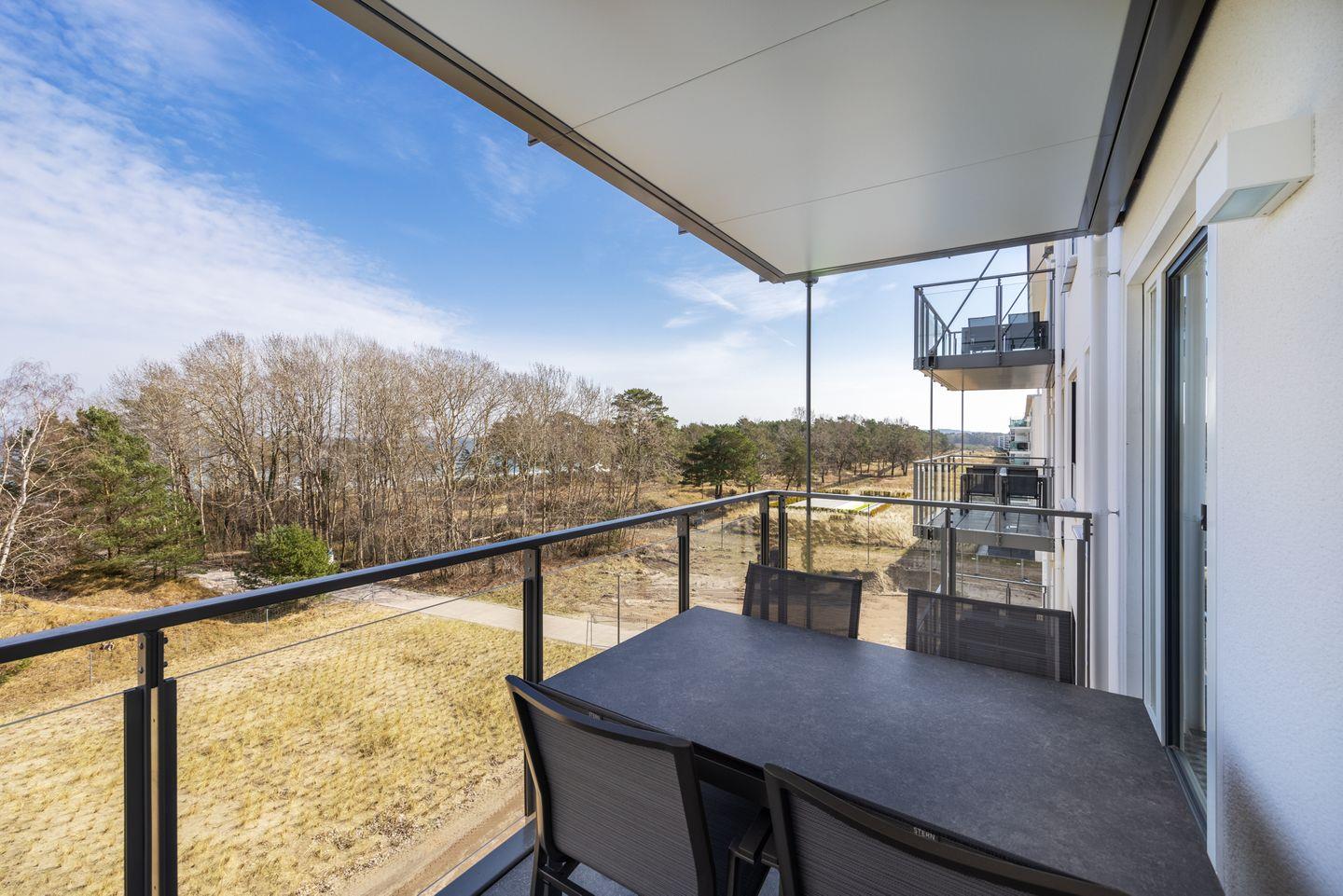 Das behagliche Apartment bietet euch einen Balkon zur Meerseite gelegen mit schönem Blick zu den Dünen und dem Dünenwald bis zur Ostsee; hier lässt sich wunderbar entspannen und das Inselfeeling Rügens genießen.