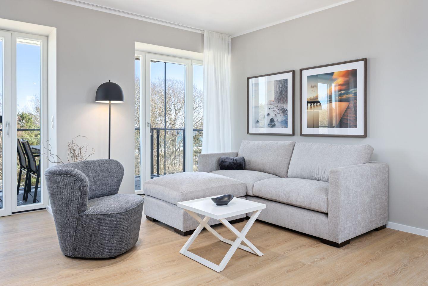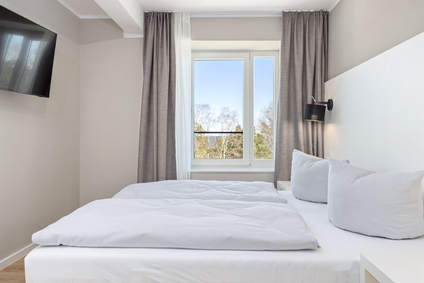 Das lichtdurchflutete Apartment befindet sich in nordöstlicher Lage und befindet sich im vierten Obergeschoss des Hauses Dänholm. Die Ostsee liegt vor der Haustür - in nur 130 Metern erreicht ihr den feinsandigen, kilometerlangen Südstrand. In der Umgebung warten zahlreiche Ausflugsmöglichkeiten auf euren Besuch: Das Dokumentationszentrum Prora, das Prora-Zentrum, das Oldtimer-Museum Rügen, das NVA-Museum Rügen, die Galileo Wissenswelt Rügen, der Kletterwald Binz-Prora und das Naturerbe Zentrum Rügen mit dem Baumwipfel-Pfad sowie das beliebte Karls Erlebnis-Dorf in Zirkow. Fußläufig befinden sich zwei Bäckereien, einige Bistros sowie ein Restaurant, kleine Mode- und Souvenirgeschäfte als auch ein Fahrradverleih. Eine Segelschule befindet sich in ca. 3 km Entfernung. Im nahe gelegenen Dormero Strandhotel (ca. 800 m) könnt ihr Tagestickets erwerben und den Pool, die Sauna und den Fitnessbereich nach Herzenslust genießen.