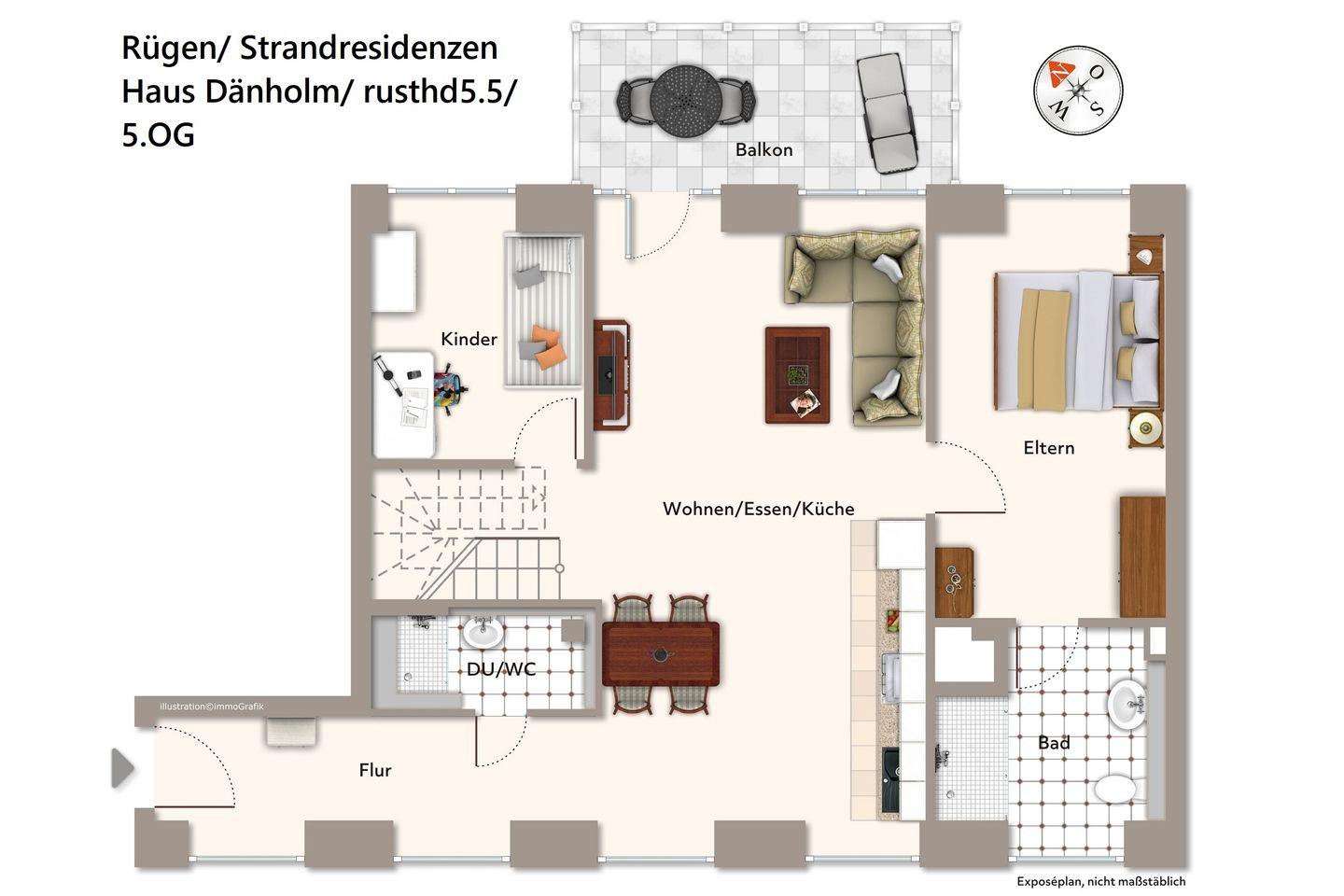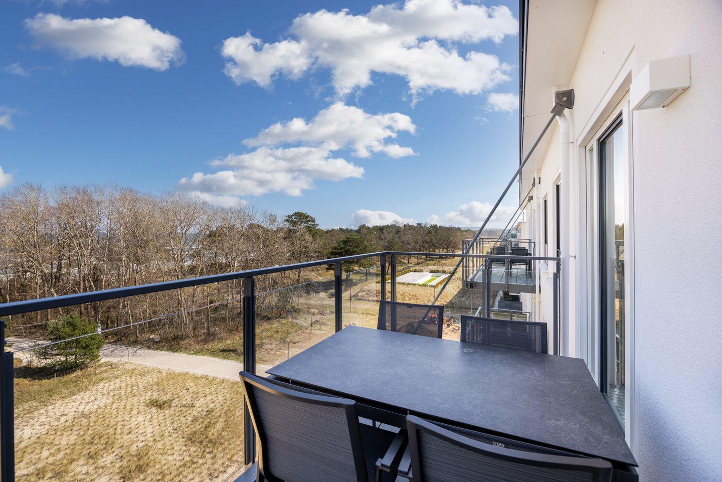 Das lichtdurchflutete Apartment befindet sich in nordöstlicher Lage in der fünften Etage und somit dem obersten Geschoss des Hauses Dänholm. Die Ostsee liegt euch hier zu Füßen - in nur 130 Metern erreicht ihr den feinsandigen, kilometerlangen Südstrand. In der Umgebung warten zahlreiche Ausflugsmöglichkeiten auf euren Besuch: Das Dokumentationszentrum Prora, das Prora-Zentrum, das Oldtimer-Museum Rügen, das NVA-Museum Rügen, die Galileo Wissenswelt Rügen, der Kletterwald Binz-Prora und das Naturerbe Zentrum Rügen mit dem Baumwipfel-Pfad sowie das beliebte Karls Erlebnis-Dorf in Zirkow. Fußläufig befinden sich zwei Bäckereien, einige Bistros sowie ein Restaurant, kleine Mode- und Souvenirgeschäfte als auch ein Fahrradverleih. Eine Segelschule befindet sich in ca. 3 km Entfernung. Im nahe gelegenen Dormero Strandhotel (ca. 800 m) könnt ihr Tagestickets erwerben und den Pool, die Sauna und den Fitnessbereich nach Herzenslust genießen.